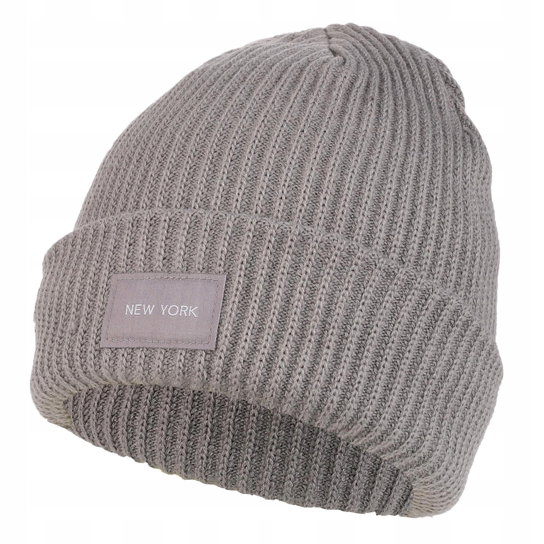 Czapka Damska Zimowa Beanie klasyczna z naszywką Modna Ciepła Prążek MORAJ