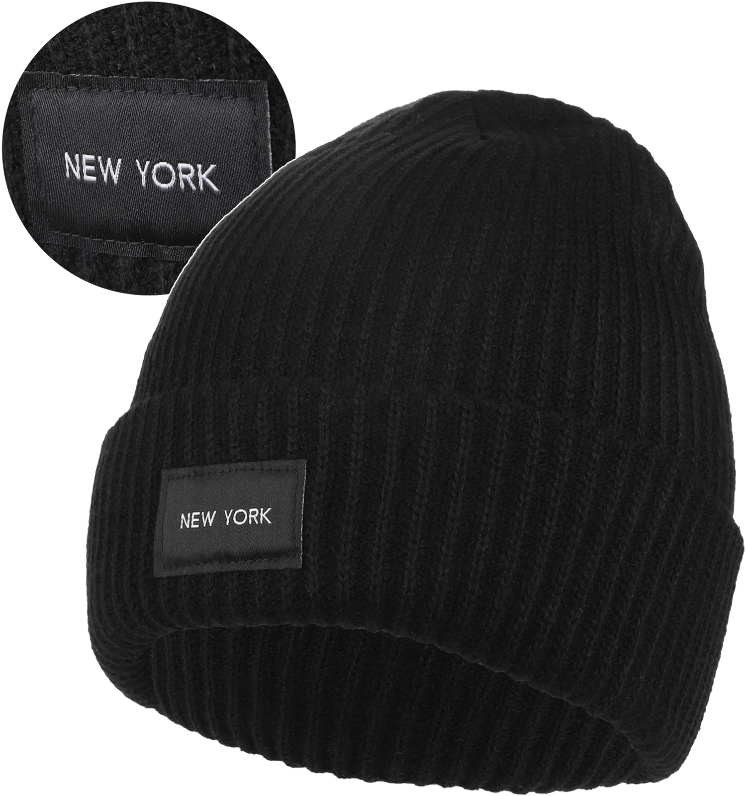 Czapka damska w stylu beanie wykonana z ciepłej, przyjemnej w dotyku dzianiny. Czapka uszyta jest na wzór efektownego splotu dziewiarskiego. Z przodu posiada naszywkę z napisem ,,New York''. Jest elastyczna i świetnie dopasowuje się do kształtu głowy, skutecznie chroniąc przed chłodem.