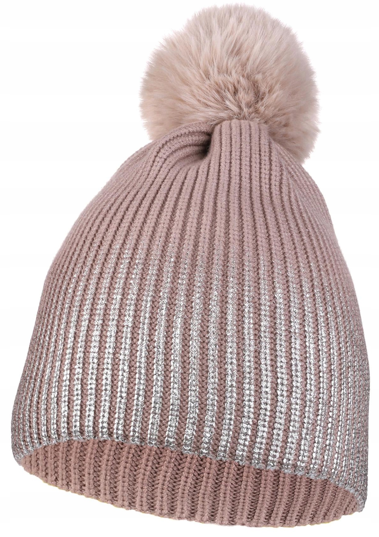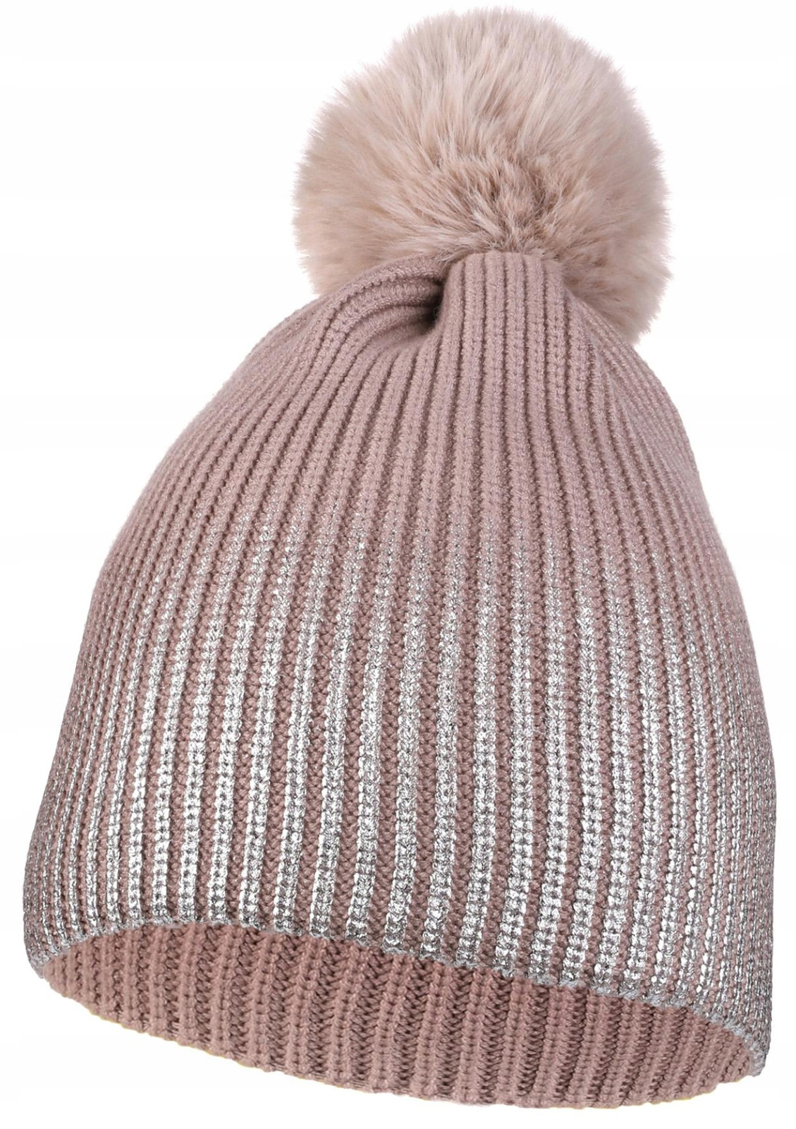 Czapka Damska Zimowa z Pomponem Ciepła Srebrno Różowa Na Chłodne Dni MORAJ