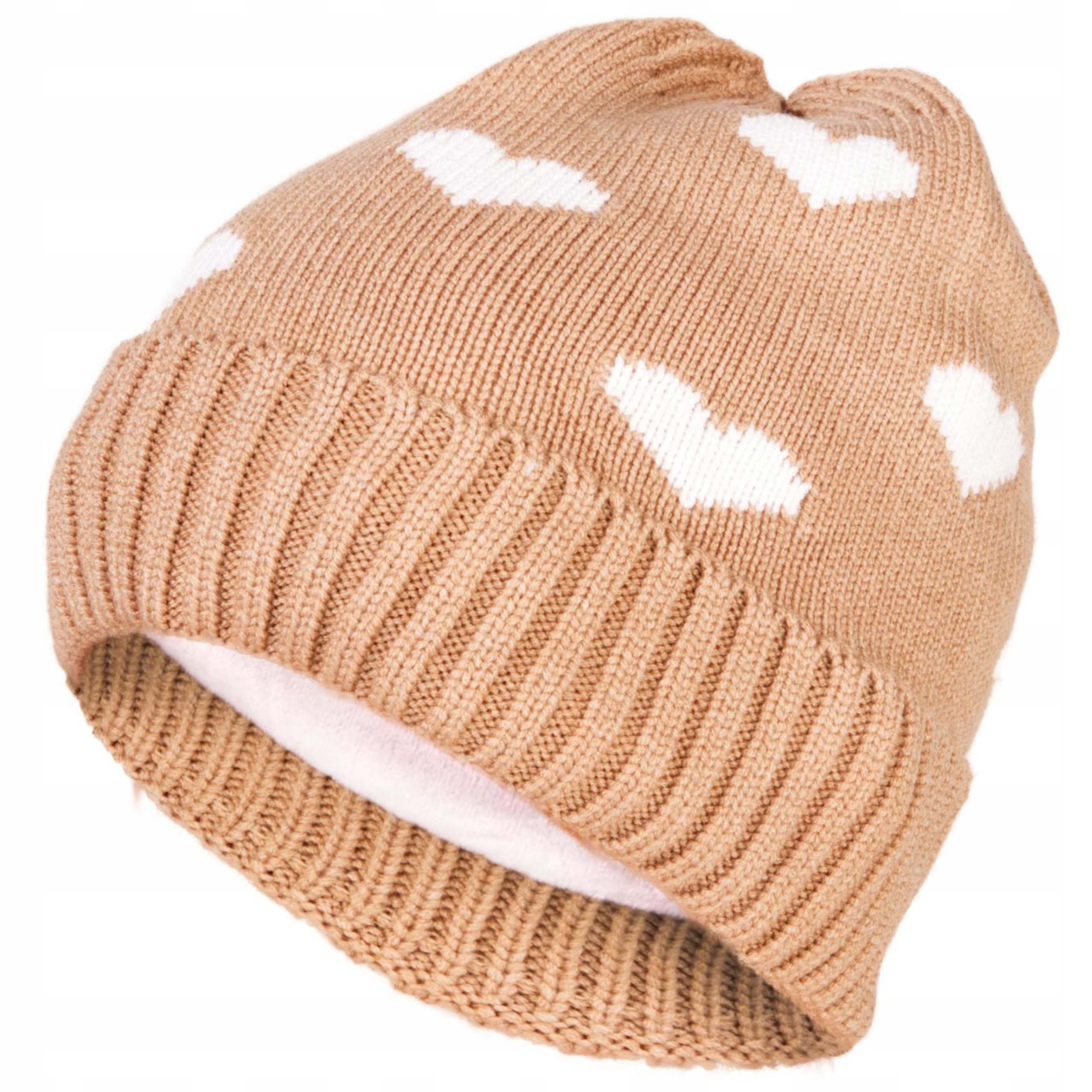 Czapka Dziecięca w Serduszka Ocieplana Wywijana Sweterkowa Urocza MORAJ
