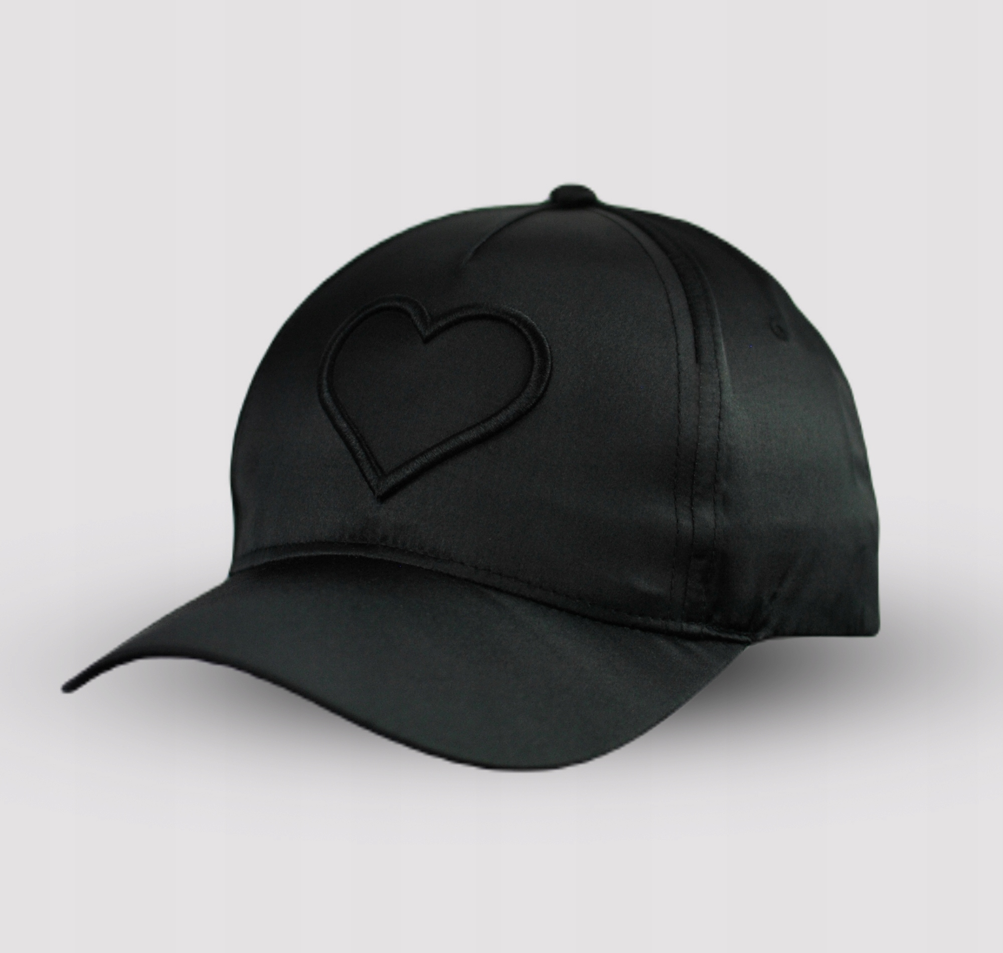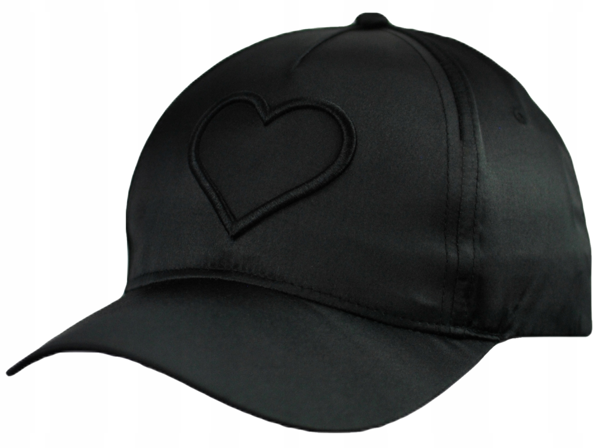 CZAPKA Z DASZKIEM Czarna Satynowa Haft Serce
