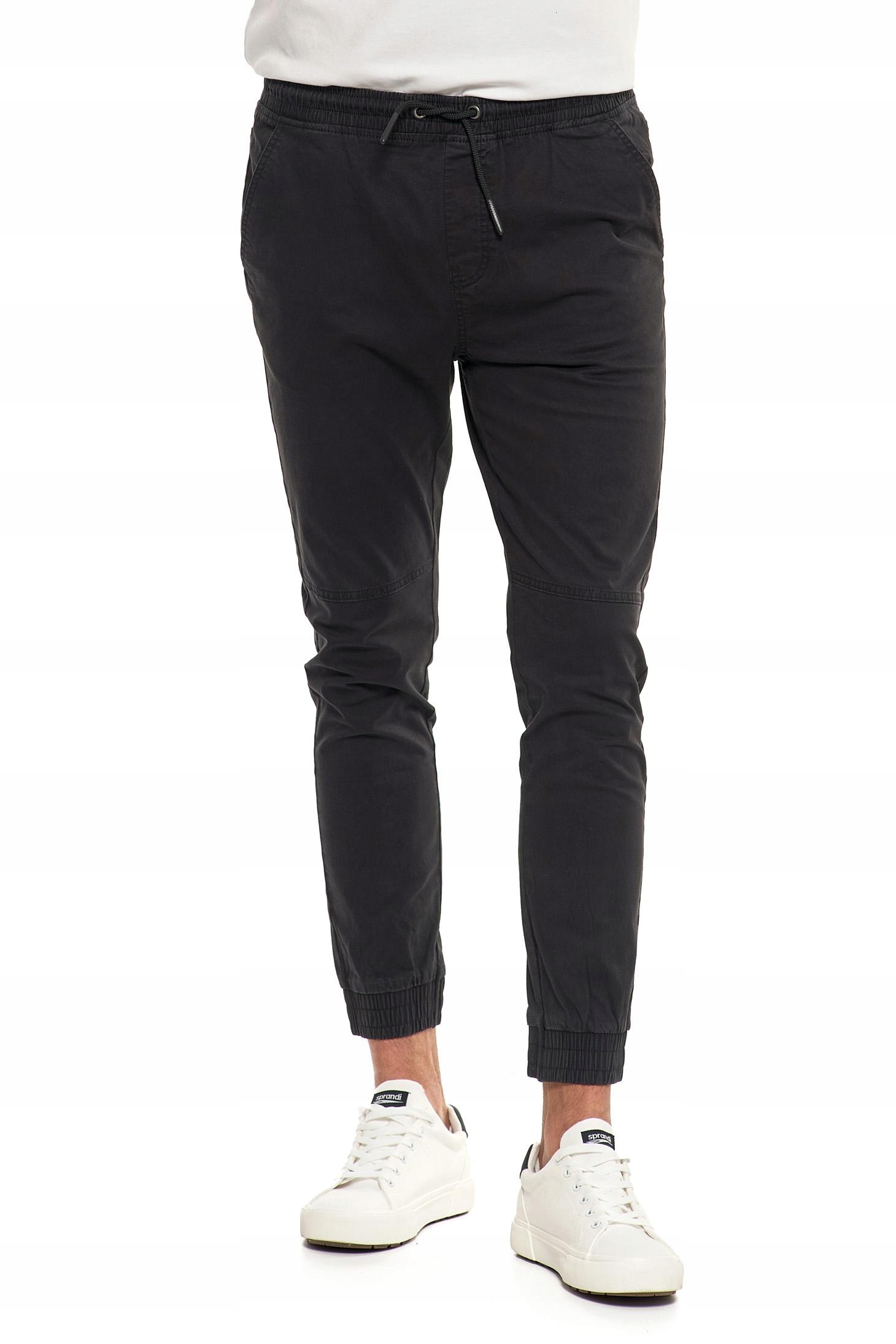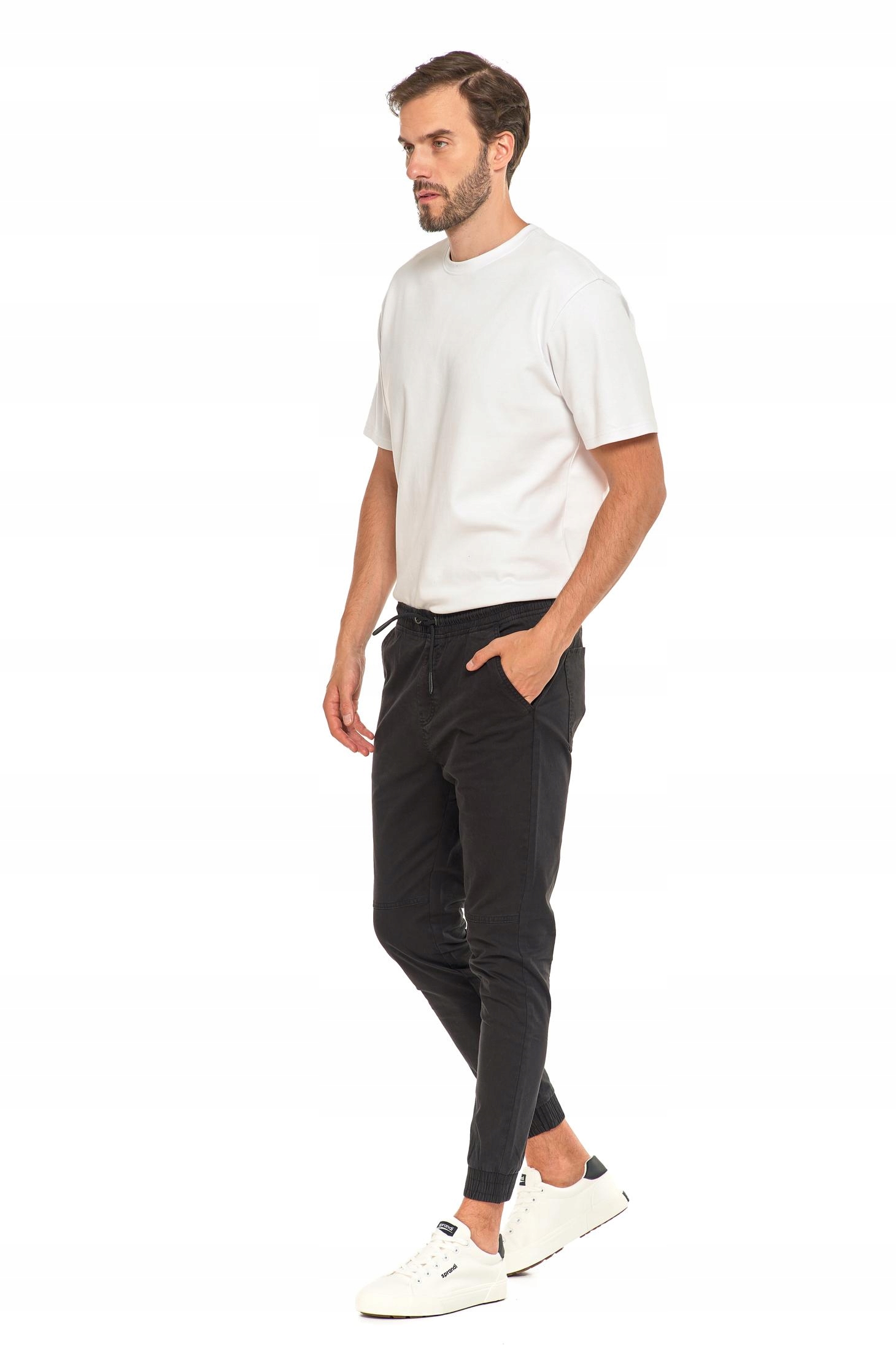 Czarne Joggery Męskie Wiązane SPODNIE Wygodne ze ściągaczami MORAJ