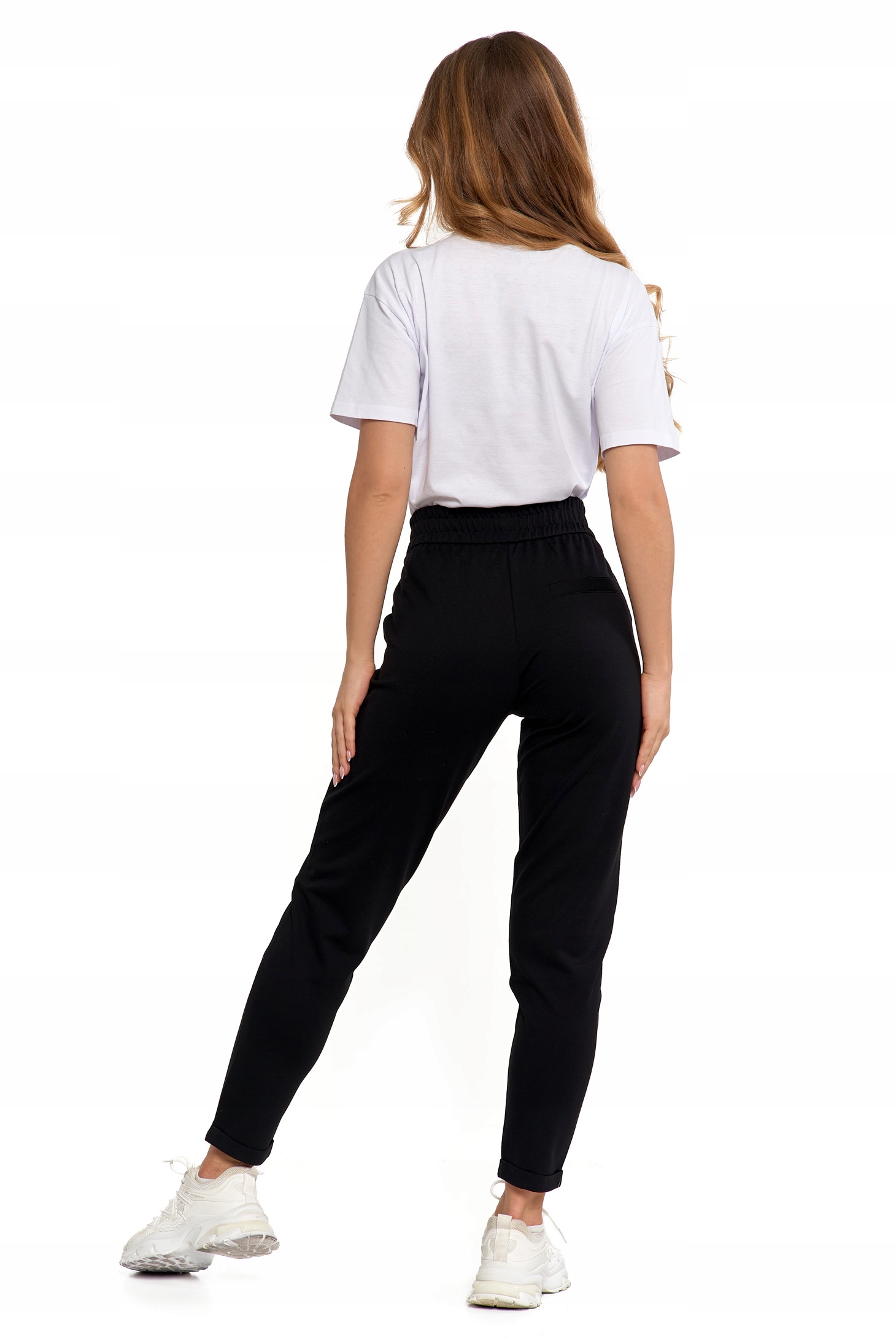 - W pasie szeroka, elastyczna gumka – nic nie uciska, a spodnie trzymają się idealnie przez cały dzień.
