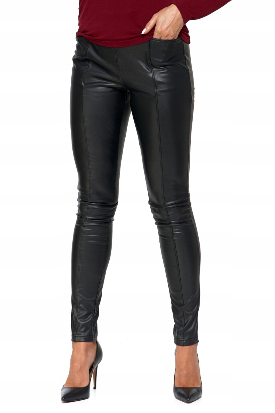 Spodnie są wykonane z imitacji skóry, która jest niezwykle wygodna i elegancka. Spodnie mają przylegający fason, który pasuje zarówno do formalnych, jak i nieco bardziej swobodnych okazji. Idealne na spotkania biznesowe, wieczorne kolacje czy specjalne wydarzenia. Dzięki starannej konstrukcji spodnie doskonale dopasowują się do sylwetki, zapewniając wygodę przez cały dzień. Spodnie posiadają elastyczną gumę w pasie oraz wysoki stan.