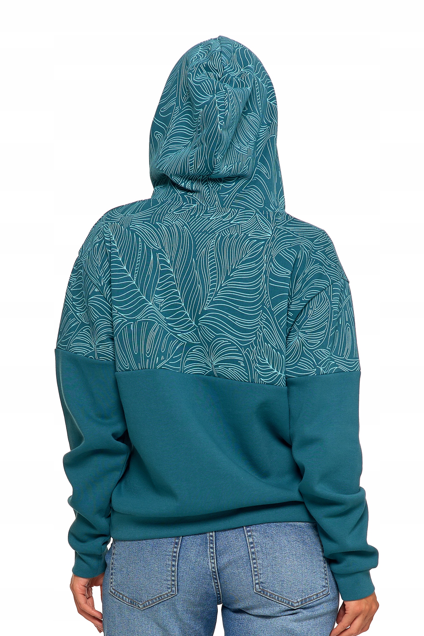 Wnętrze bluzy ocieplone delikatnym meszkiem zapewnia komfort termiczny i przytulność, idealną na jesień, zimę czy wczesną wiosnę. Wyrazisty motyw graficzny dodaje stylu i wyróżnia ją na tle klasycznych modeli, a kaptur z regulacją na sznurek zapewnia dodatkową ochronę przed chłodem. Luźny, swobodny krój oraz elastyczne ściągacze przy rękawach i na dole sprawiają, że bluza doskonale dopasowuje się do sylwetki, gwarantując pełną swobodę ruchów.