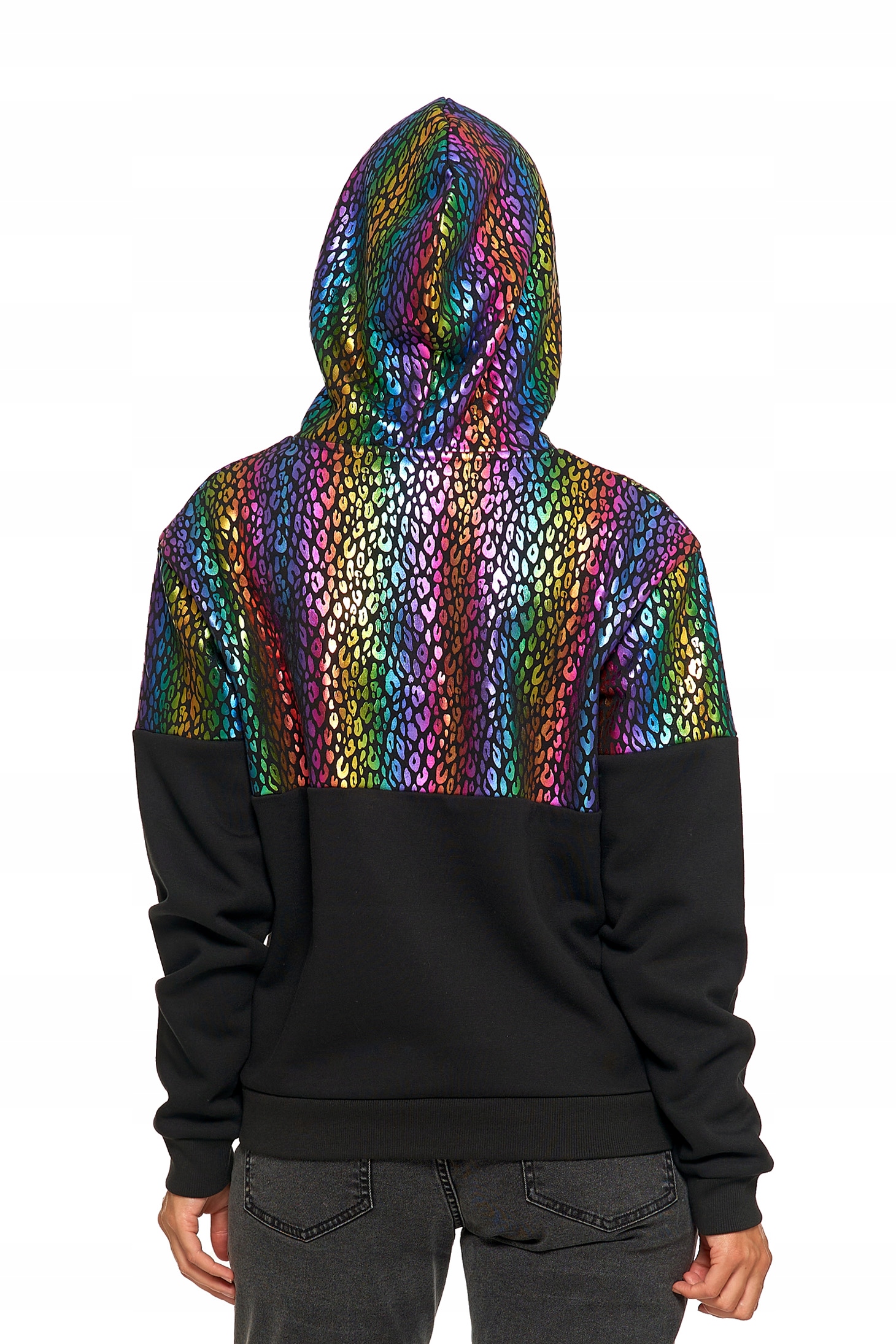 Wnętrze bluzy ocieplone delikatnym meszkiem zapewnia komfort termiczny i przytulność, idealną na jesień, zimę czy wczesną wiosnę. Wyrazisty motyw graficzny dodaje stylu i wyróżnia ją na tle klasycznych modeli, a kaptur z regulacją na sznurek zapewnia dodatkową ochronę przed chłodem. Luźny, swobodny krój oraz elastyczne ściągacze przy rękawach i na dole sprawiają, że bluza doskonale dopasowuje się do sylwetki, gwarantując pełną swobodę ruchów.