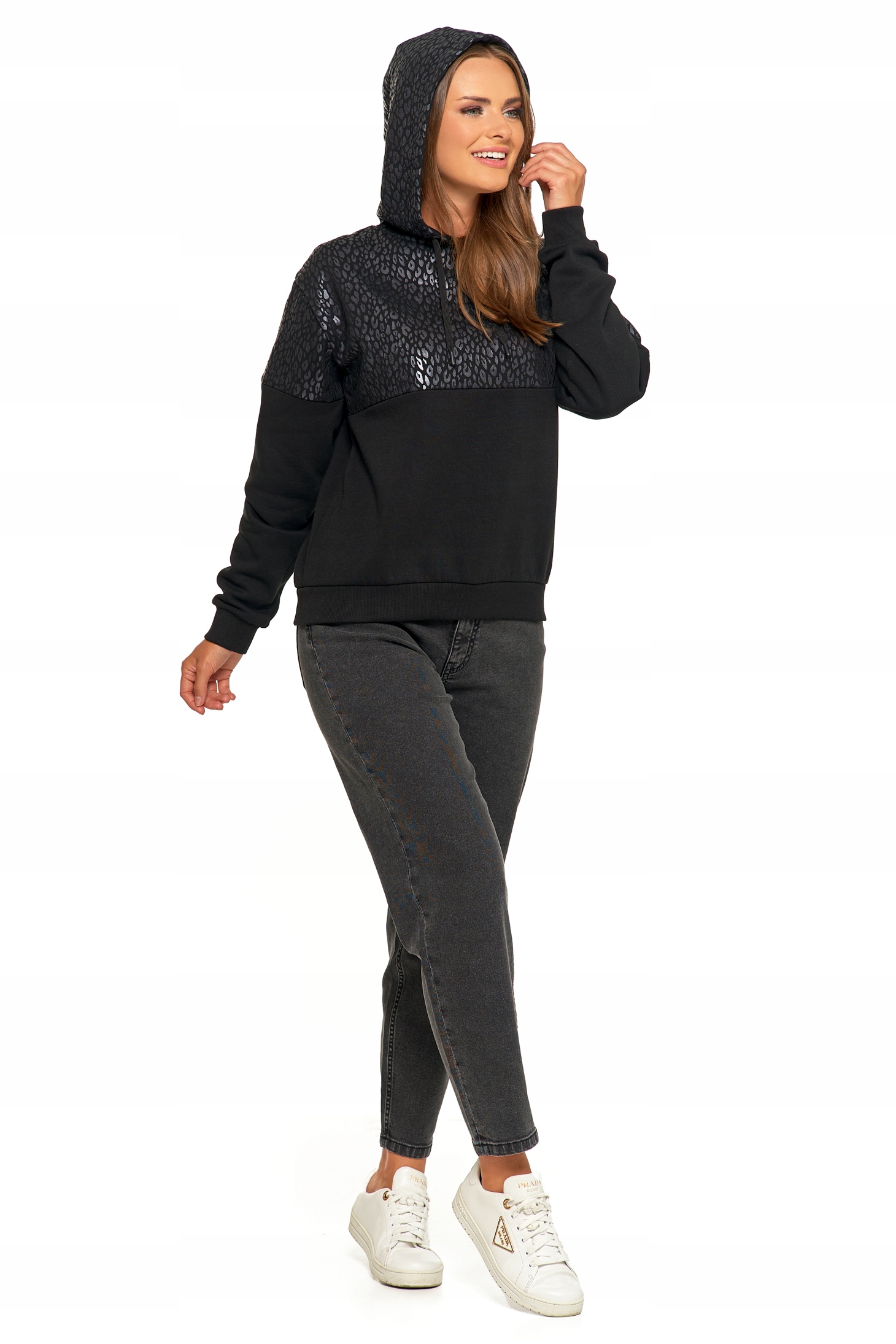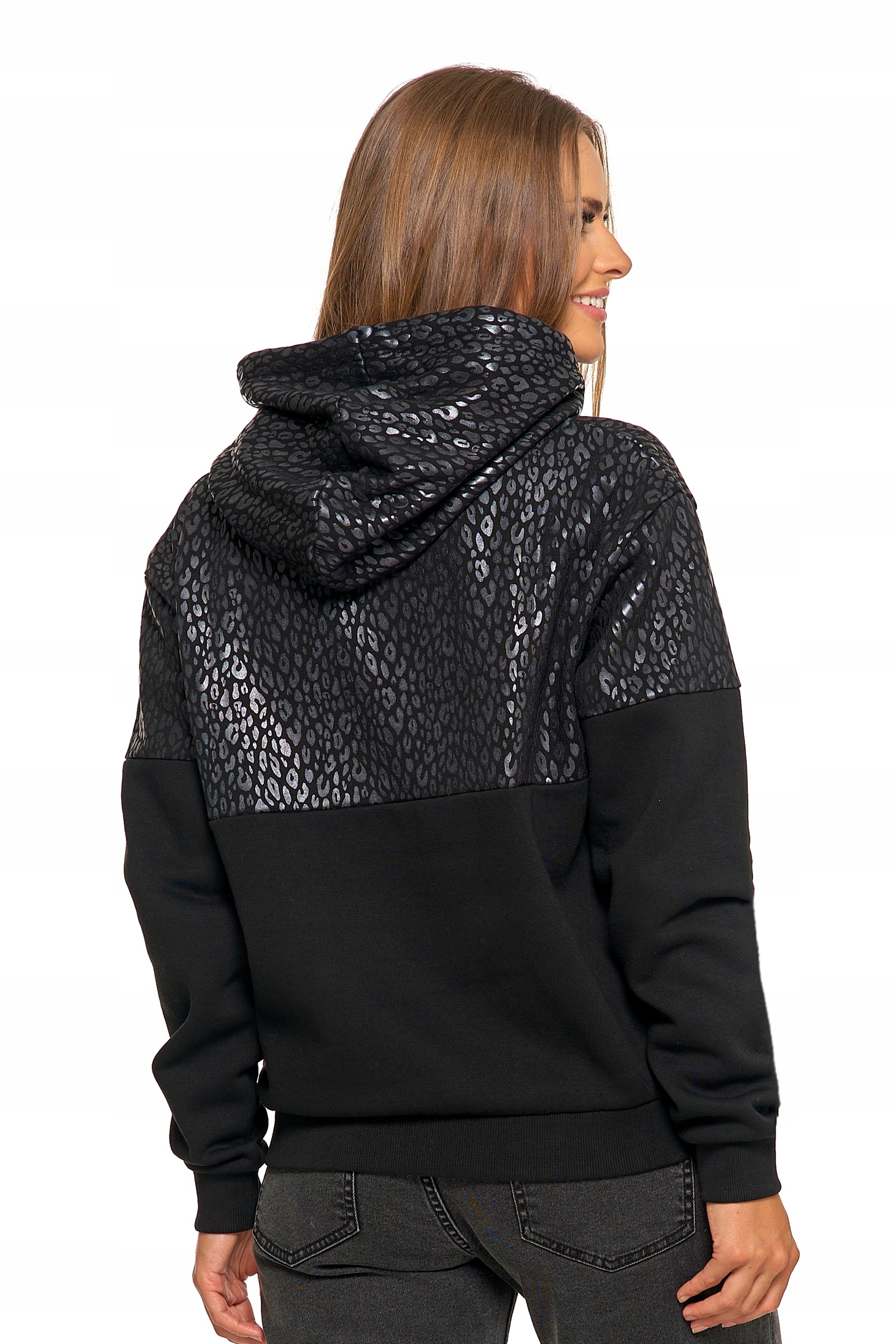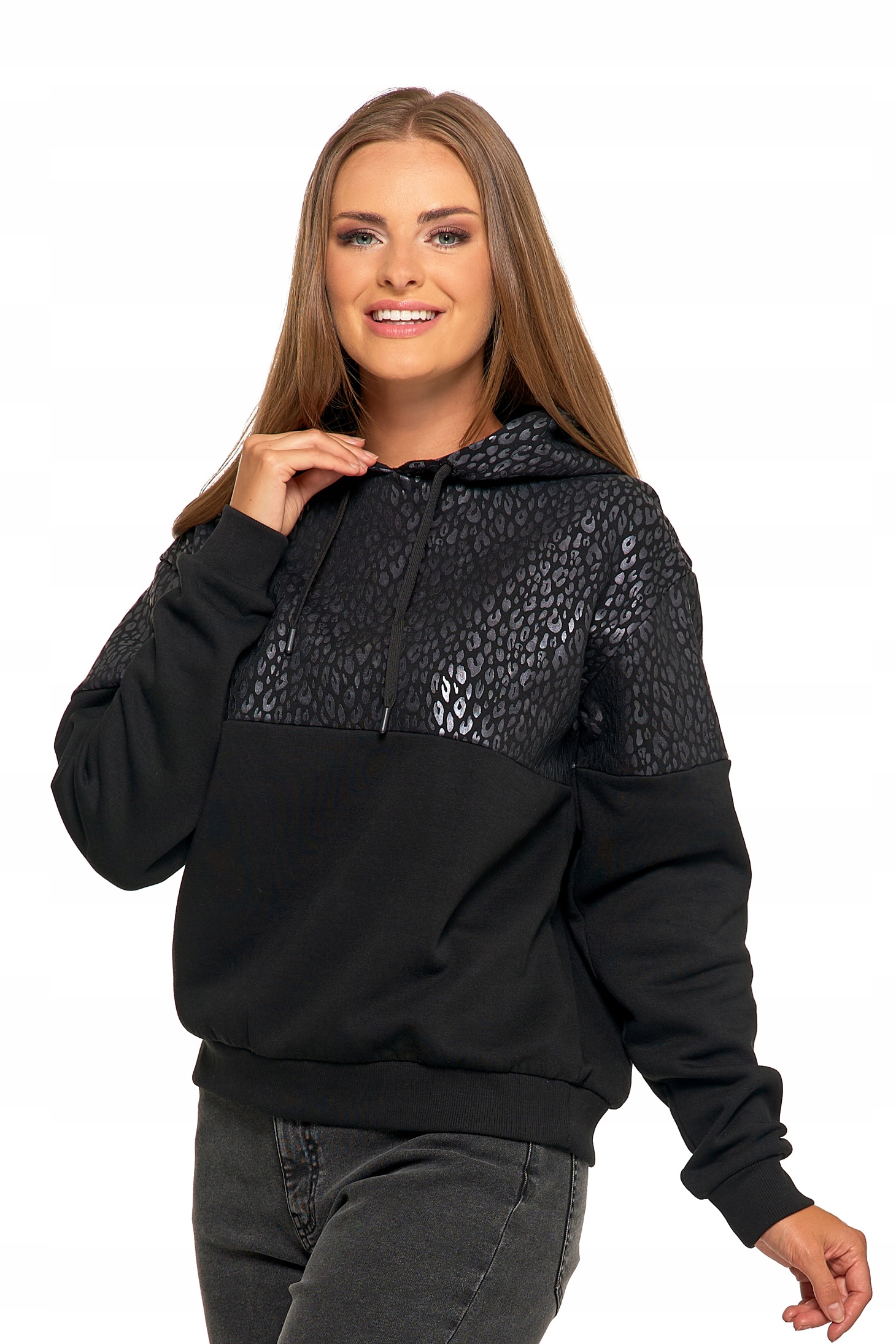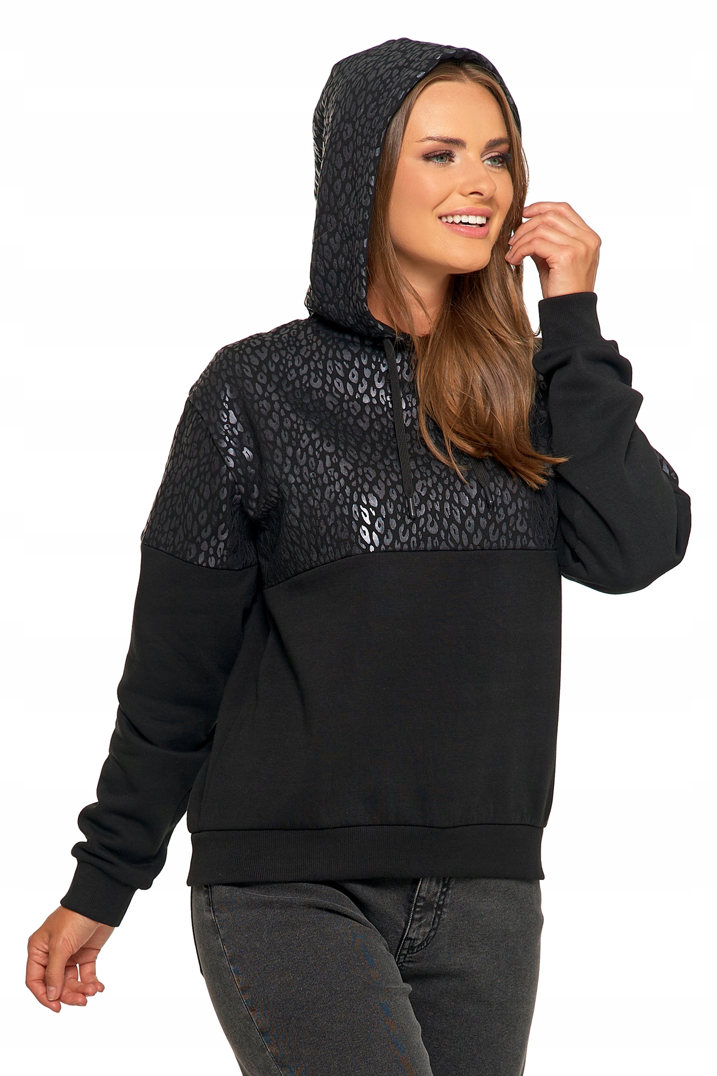 Damska Bluza Ciepła z Kapturem Przez Głowę Wygodna Panterka MORAJ