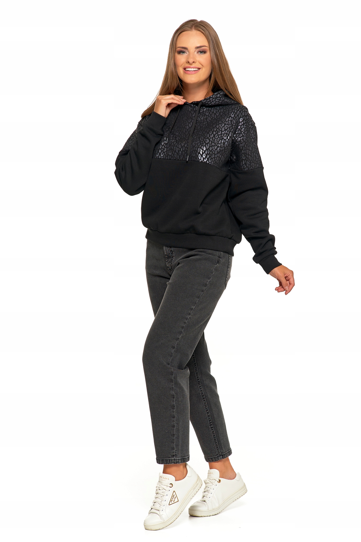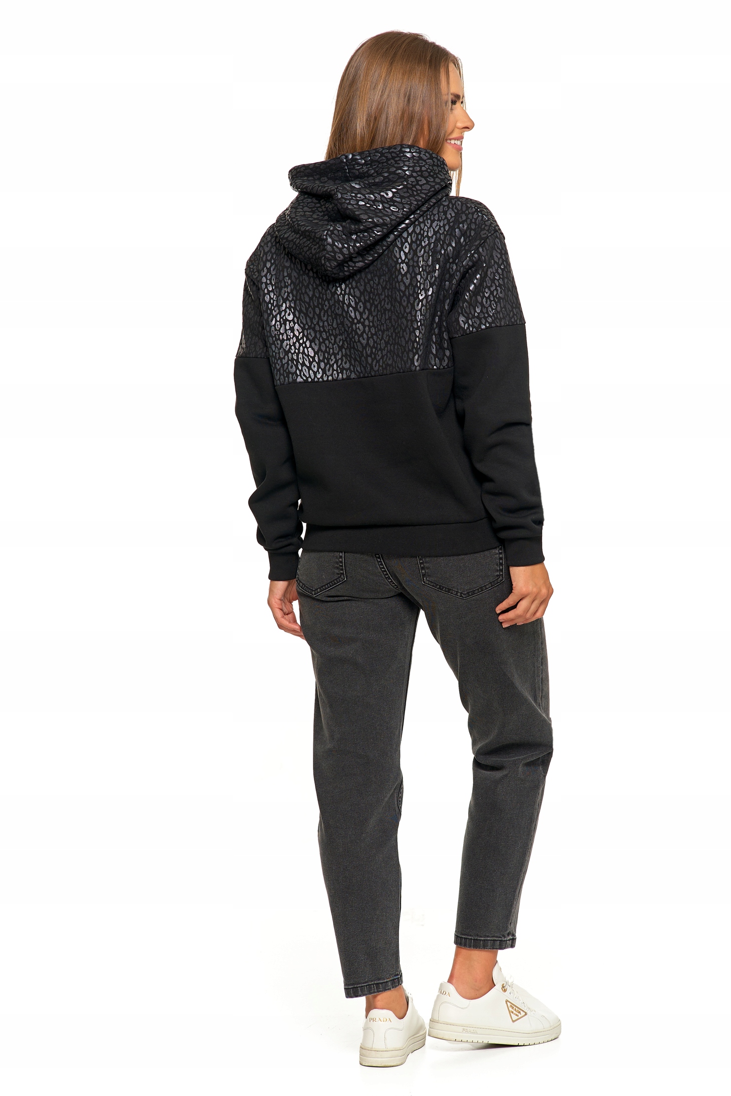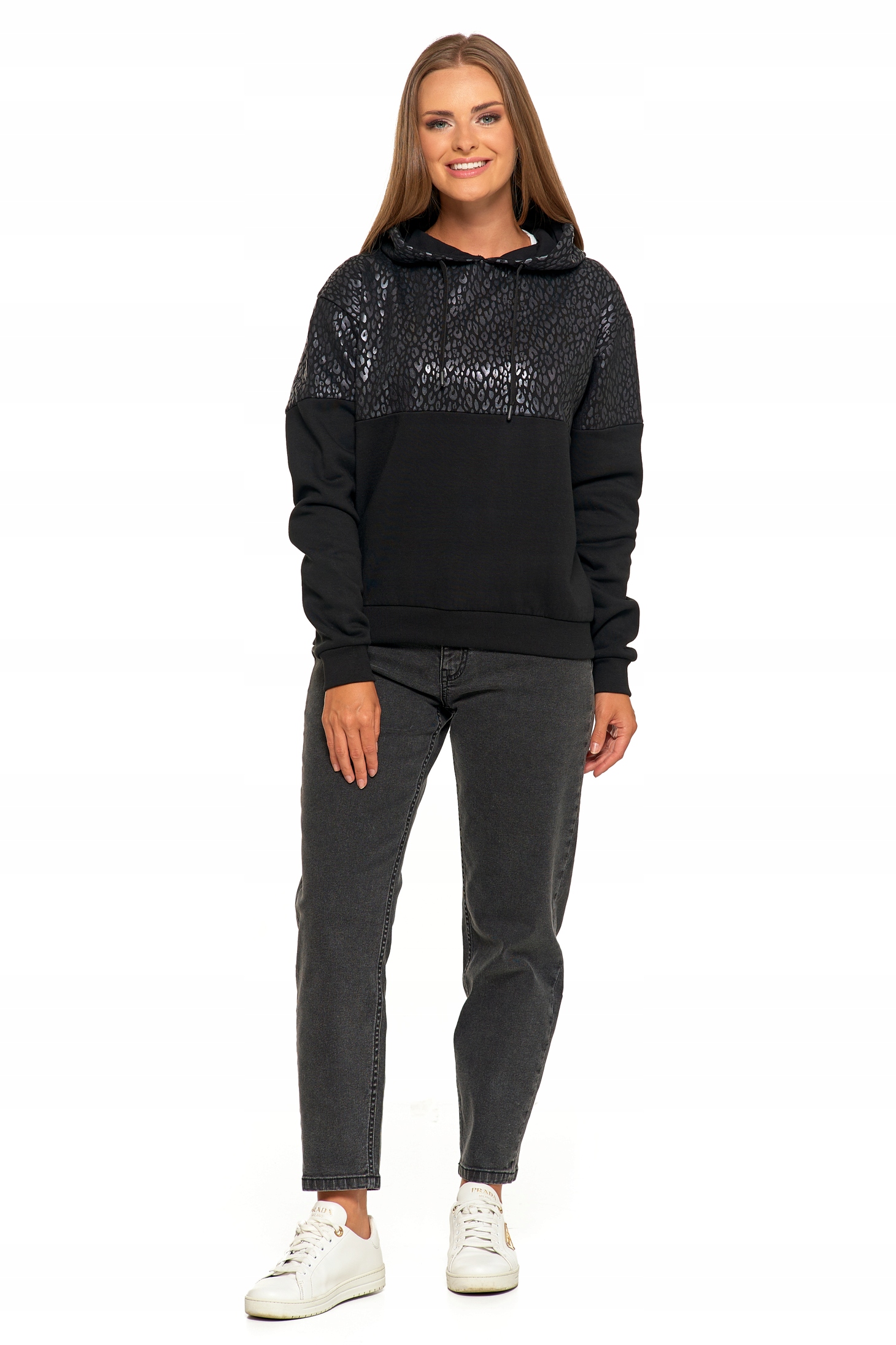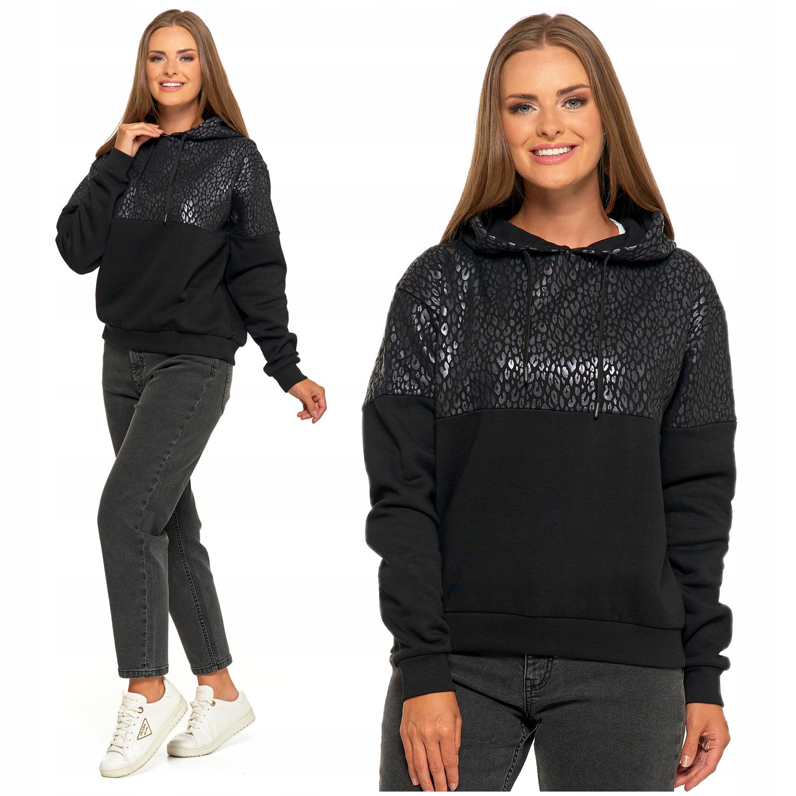 Damska Bluza Ciepła z Kapturem Przez Głowę Wygodna Panterka MORAJ