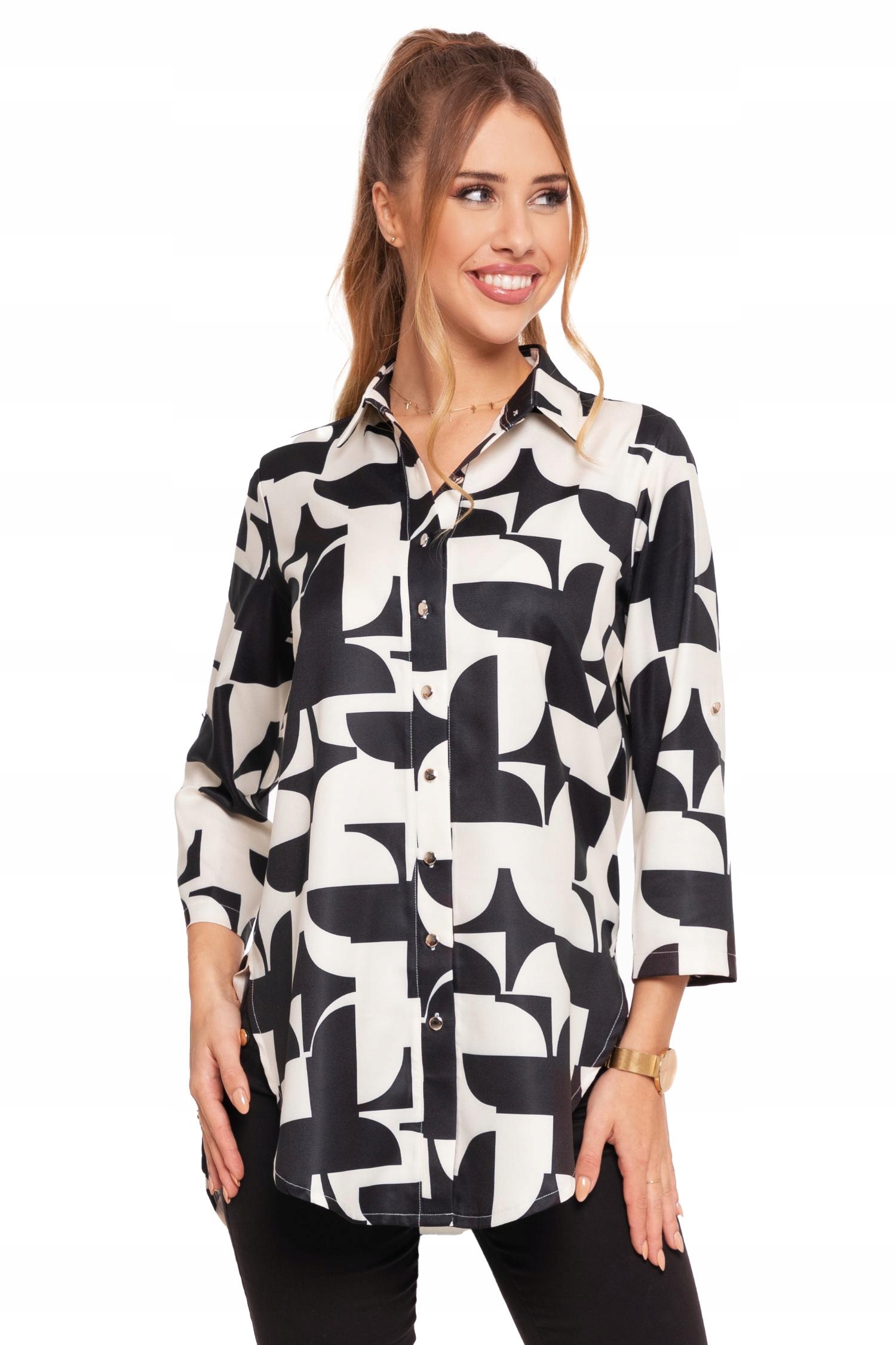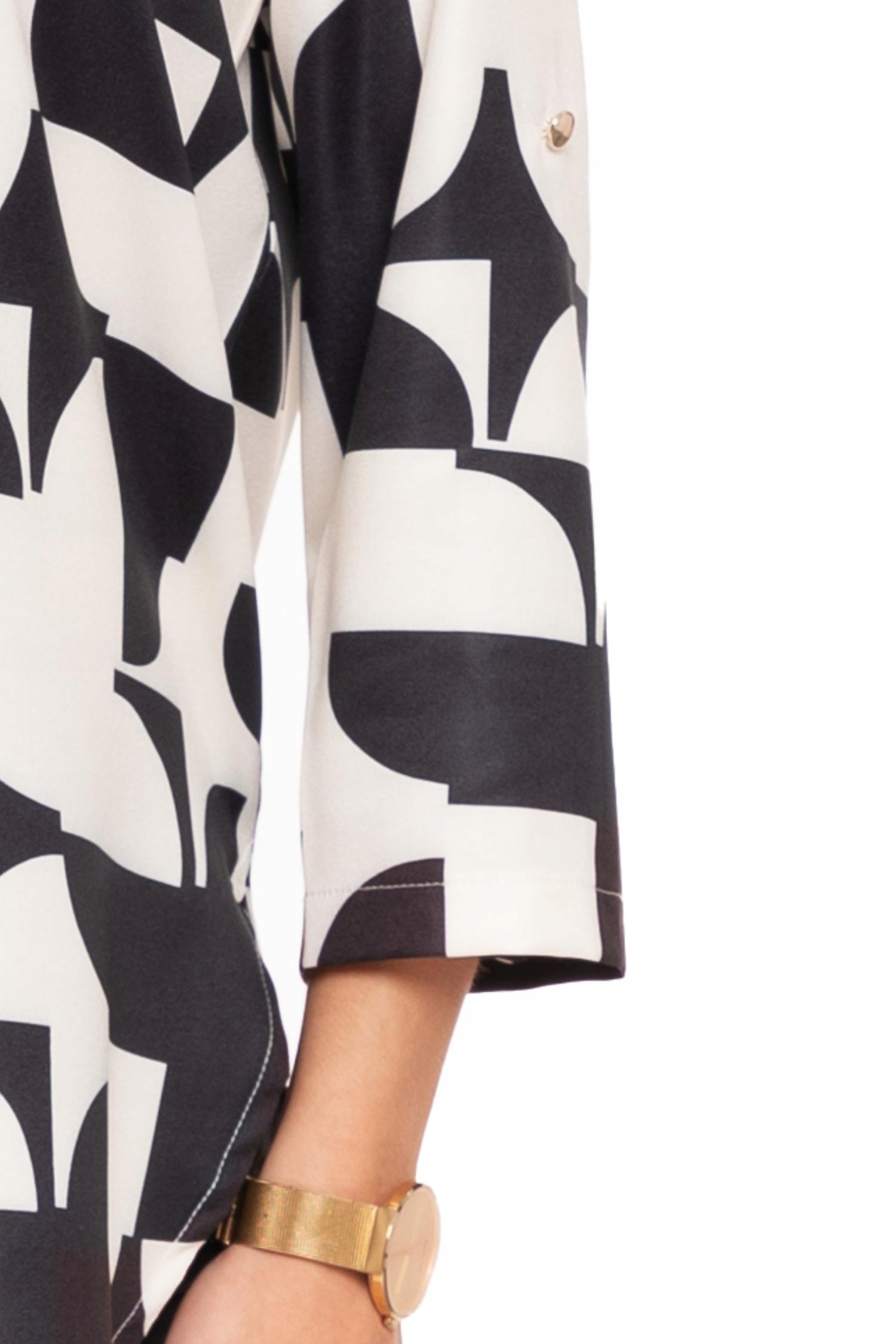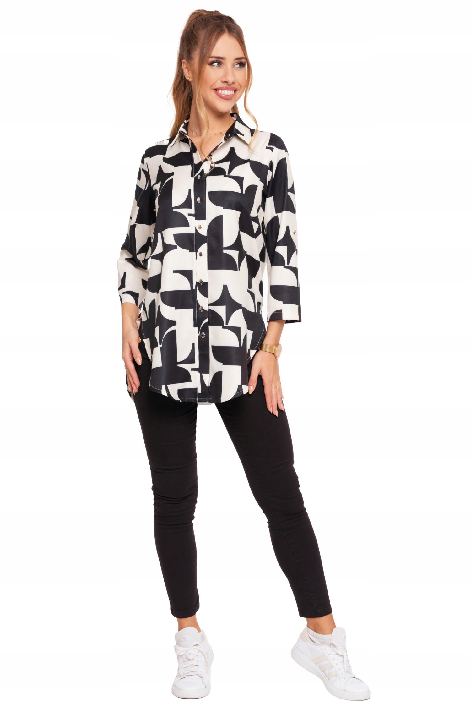Długa KOSZULA DAMSKA Elegancka Wzory Rękaw 3/4 Złote Guziki Modna MORAJ