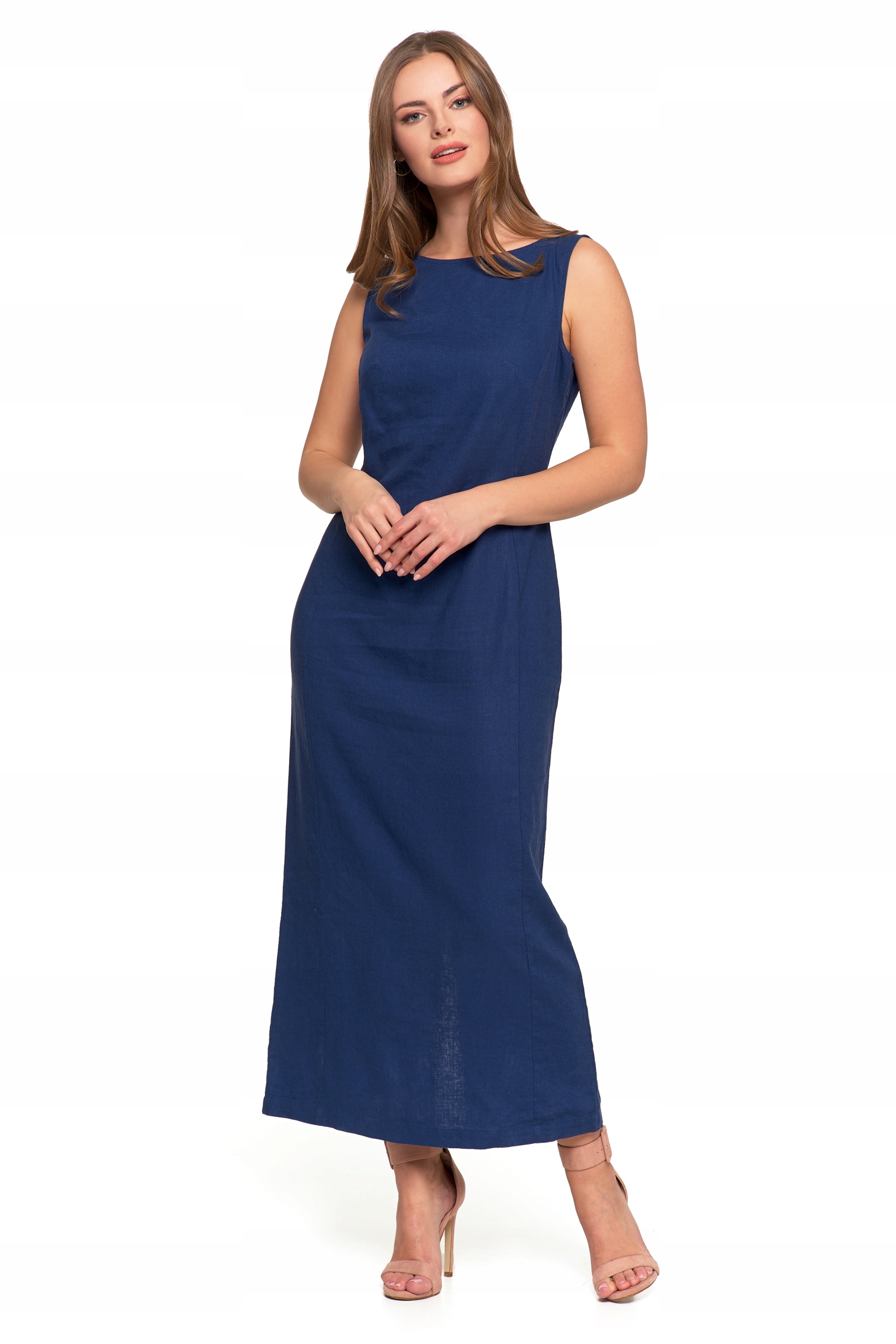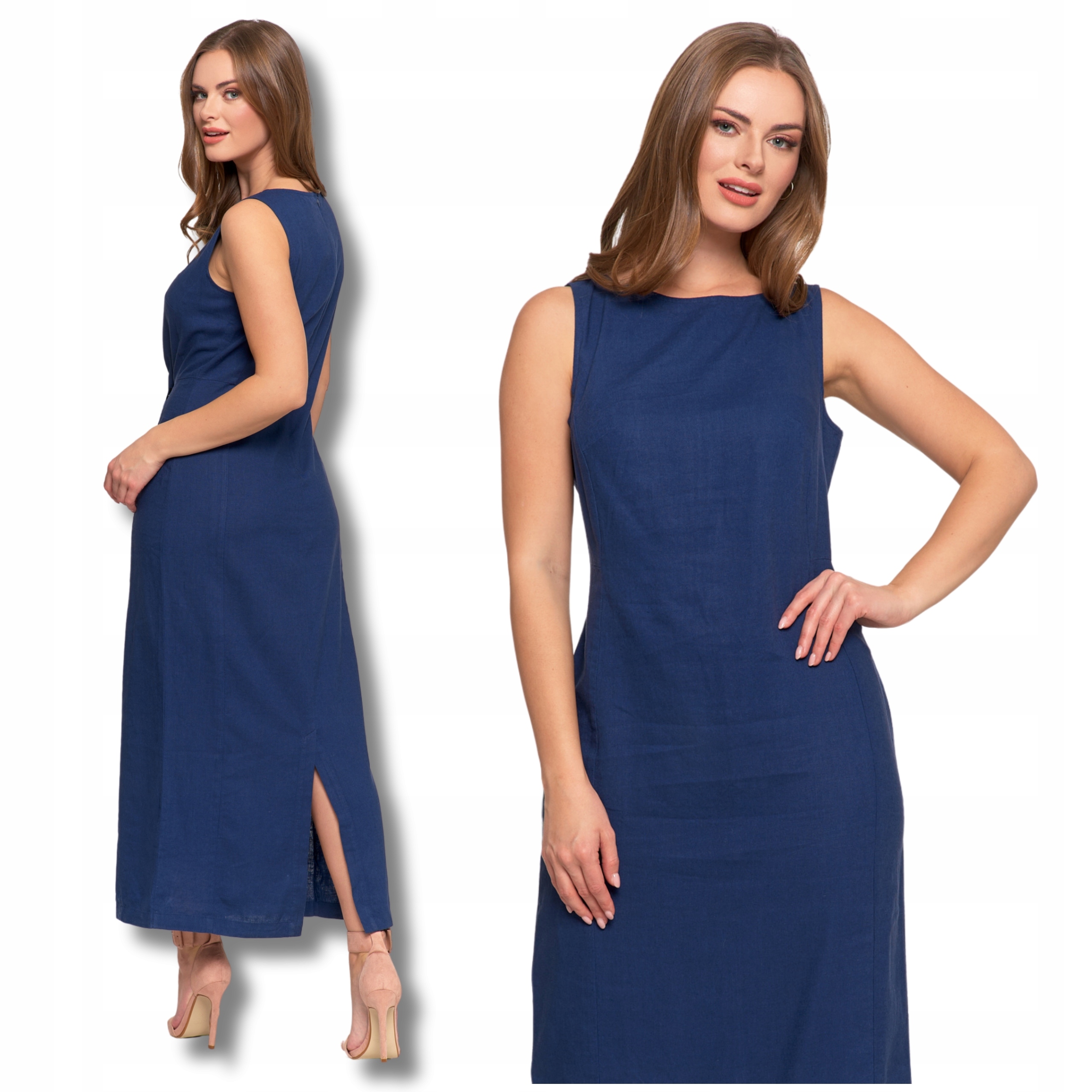 Długa SUKIENKA DAMSKA MAXI Suknia Lniana Lekka Elegancka Gładka MORAJ