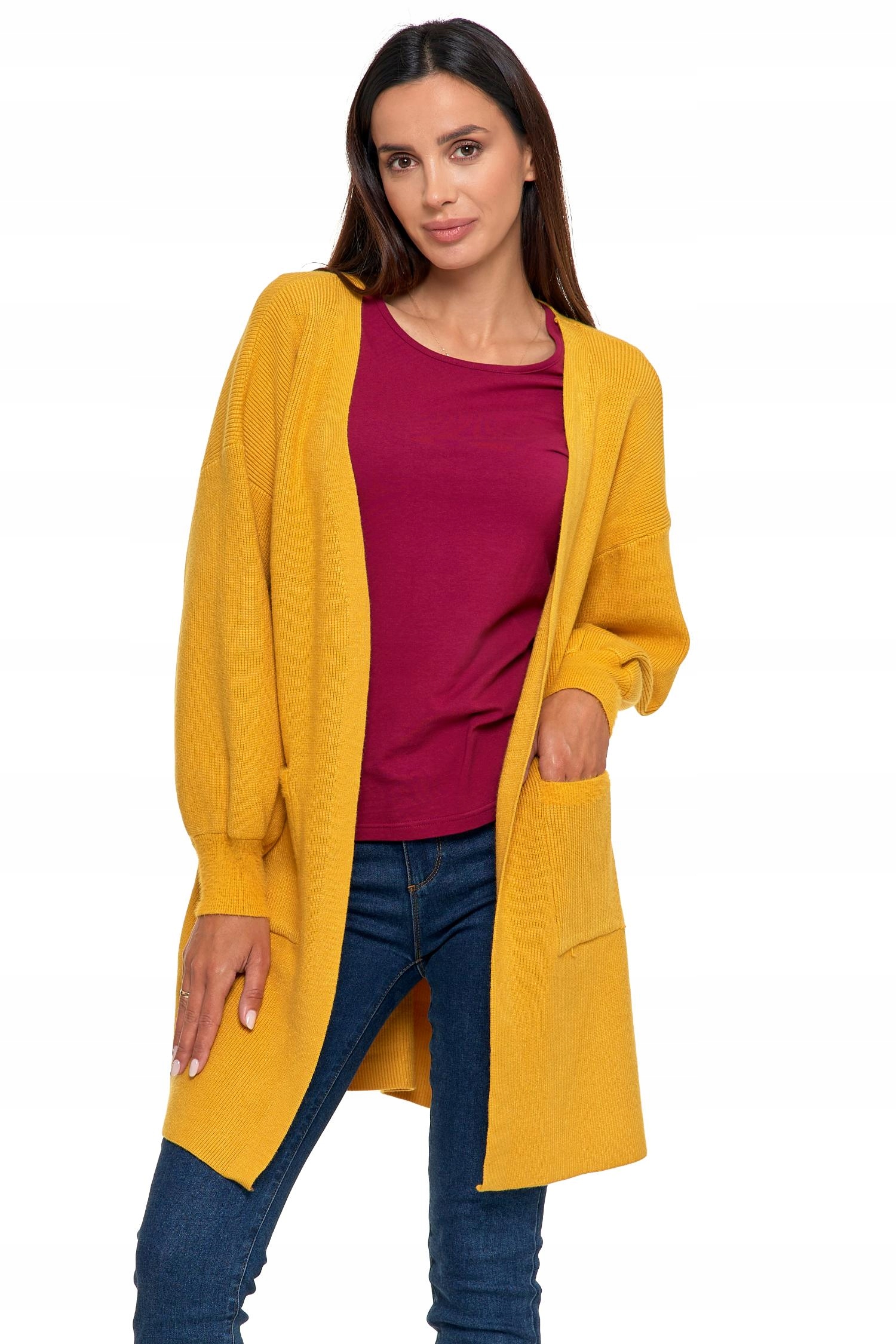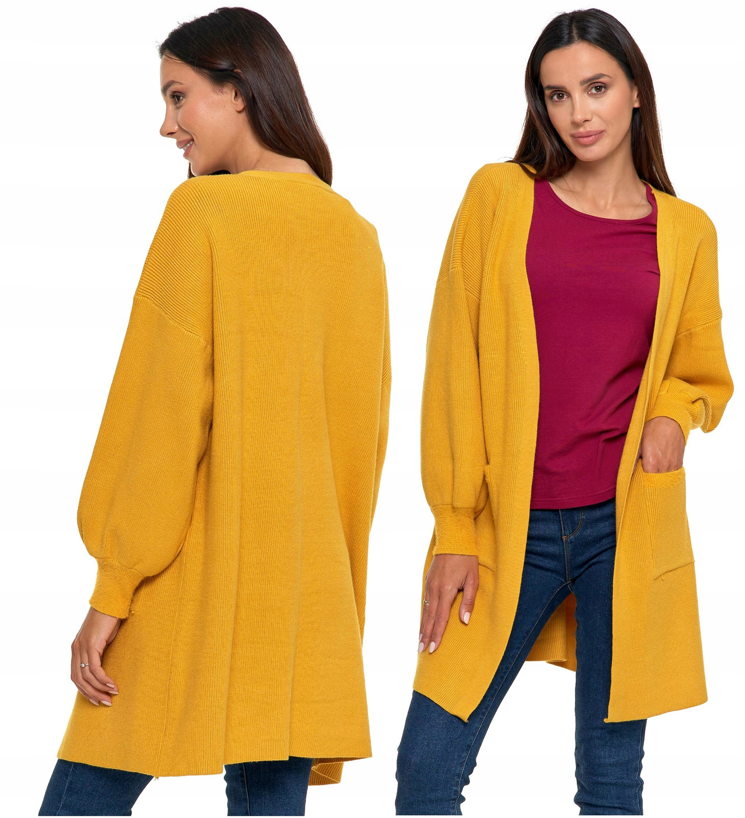 DŁUGI SWETER DAMSKI Wygodny Kardigan z Kieszeniami Luźne Rękawy MORAJ