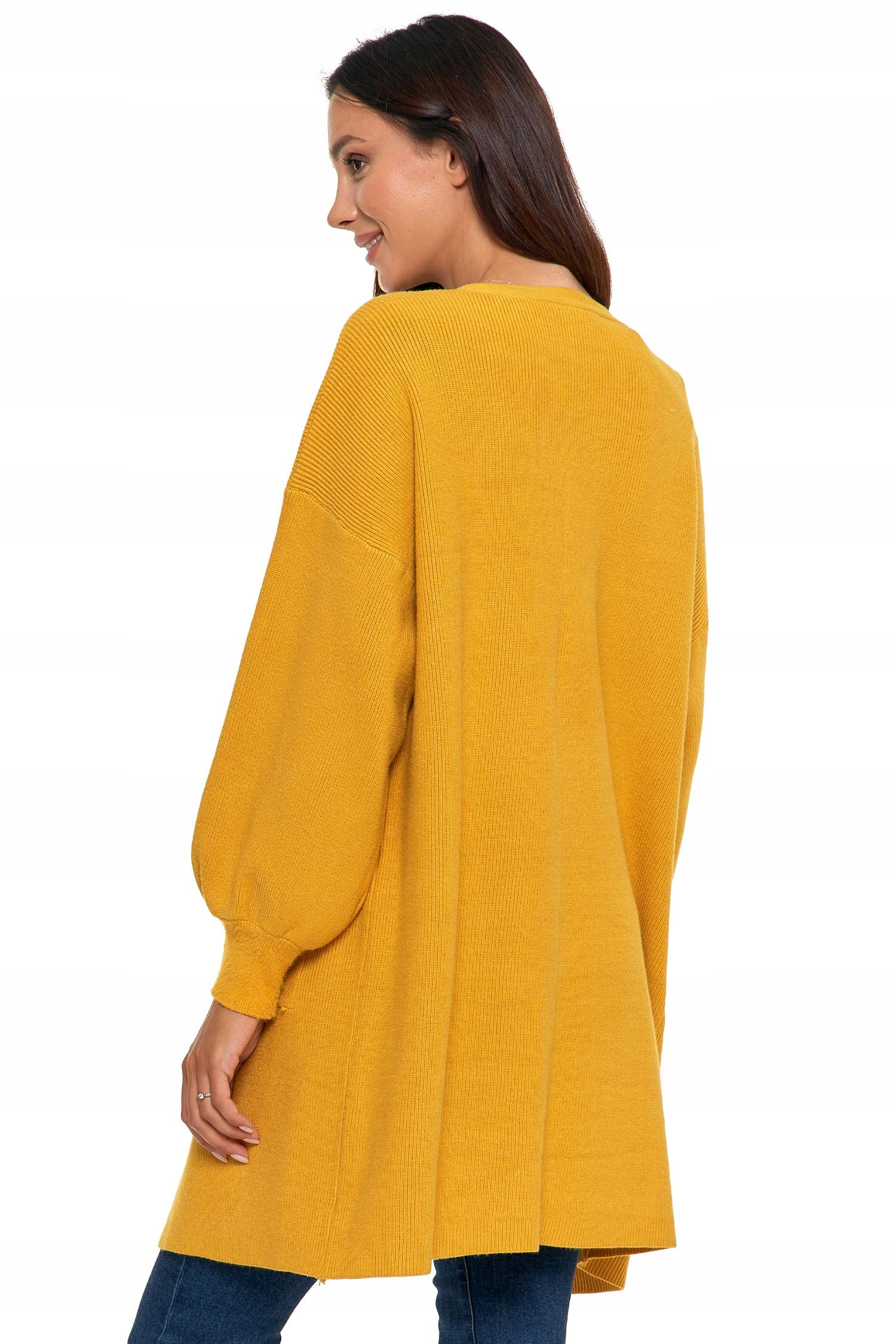Prezentujemy długi sweter damski typu kardigan, który jest kwintesencją casualowej elegancji z nutą wygody. Jego luźny i swobodny krój sprawia, że jest to idealny wybór na chłodniejsze dni, oferując ciepło i styl w jednym.