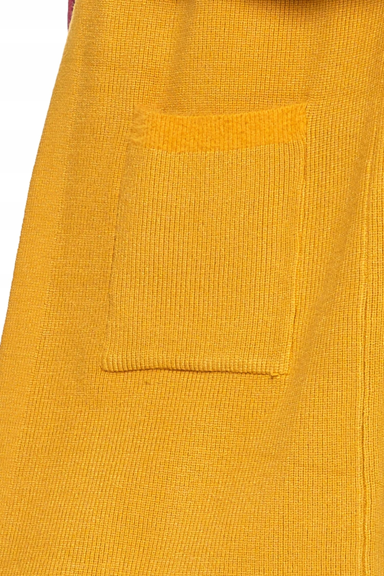 Kardigan charakteryzuje się luźnymi rękawami, które dodają całości swobodnego, niezobowiązującego charakteru, idealnego na luźne, codzienne stylizacje. Bez zapięcia, otwarty przód swetra pozwala na eksponowanie warstw ubioru, tworząc ciekawe i modowe kombinacje.
