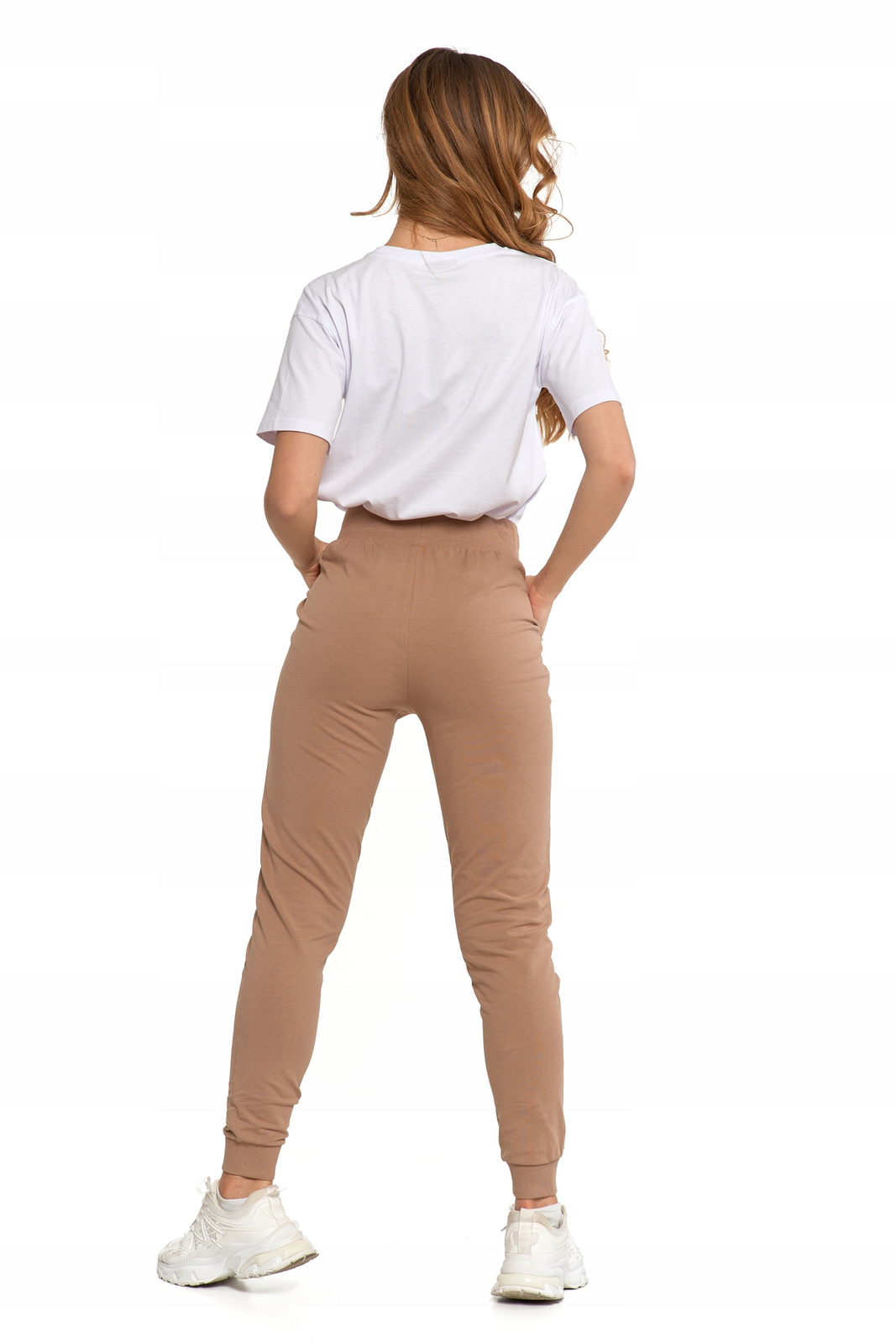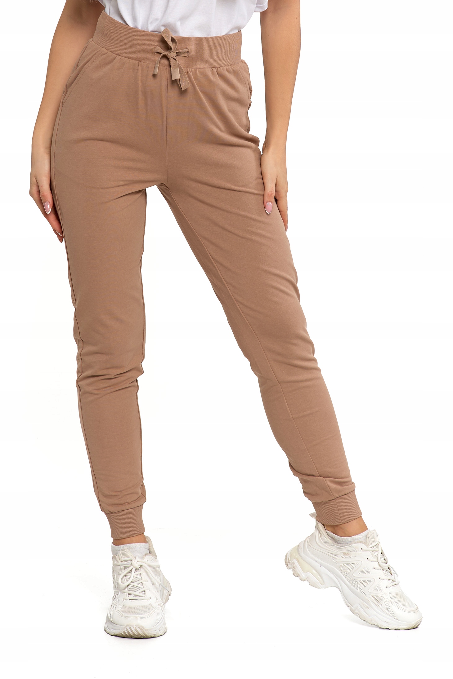 - Stylowe spodnie – klasyczny krój, regulowany pas ze sznurkiem i ściągacze przy nogawkach zapewniają idealne dopasowanie i wygodę w każdej sytuacji.