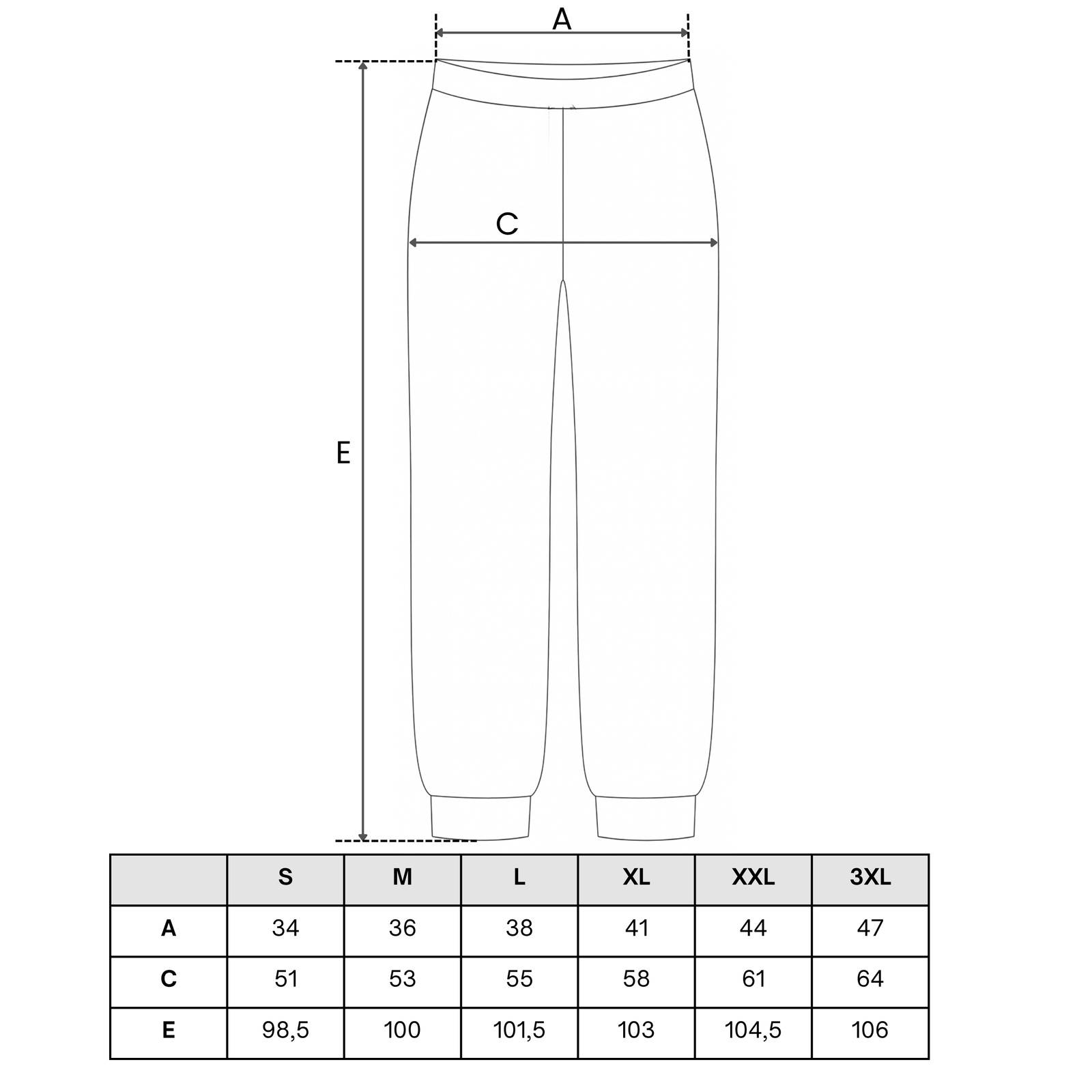 • Dopasowanie: Elastyczny pas i ściągacze przy nogawkach zapewniają wygodne dopasowanie i nowoczesny wygląd.