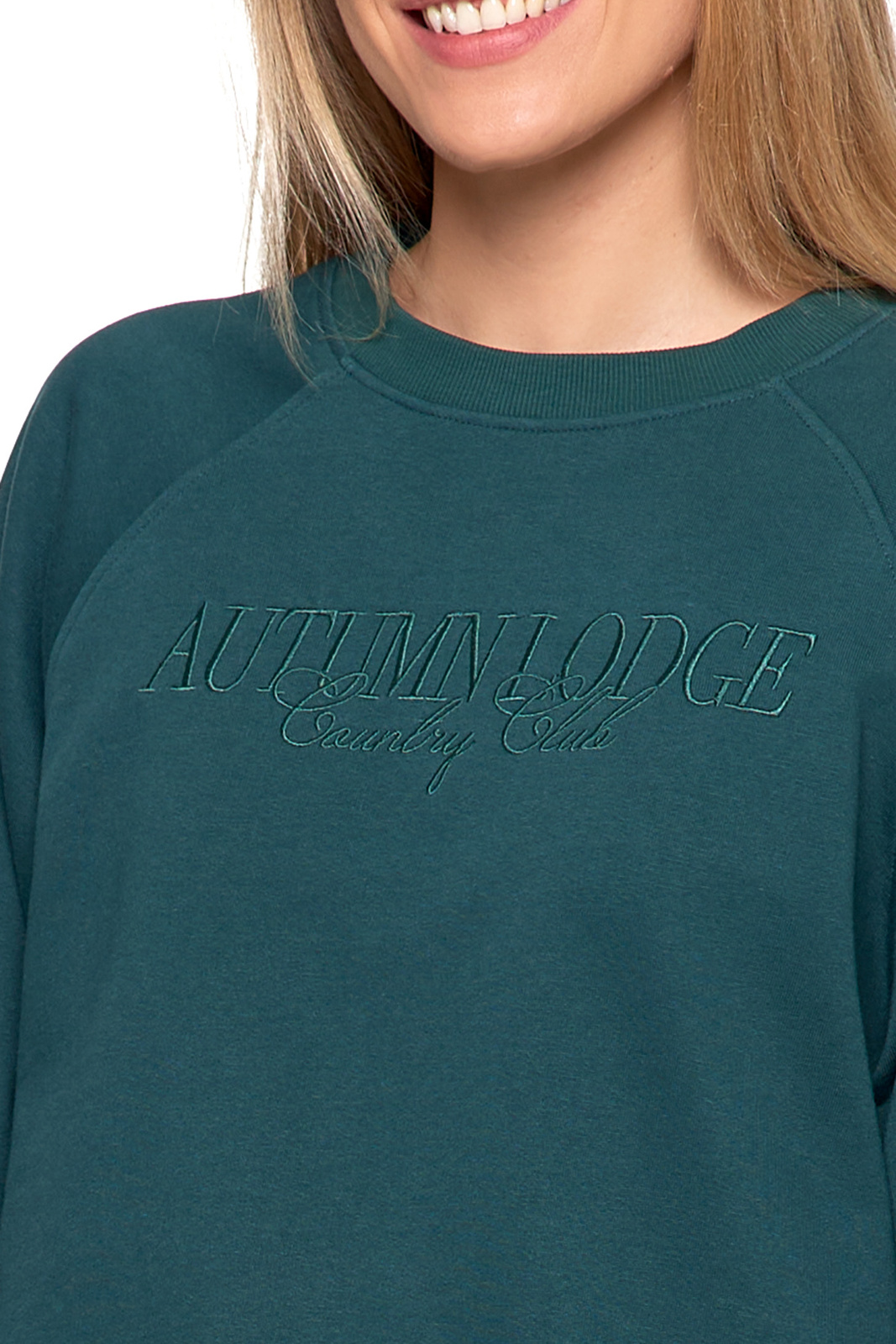 • Detale: Haftowany napis w tonacji bluzy dodaje subtelnej elegancji.