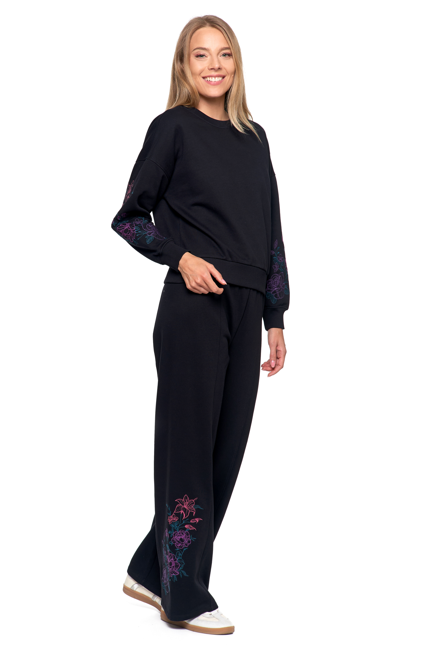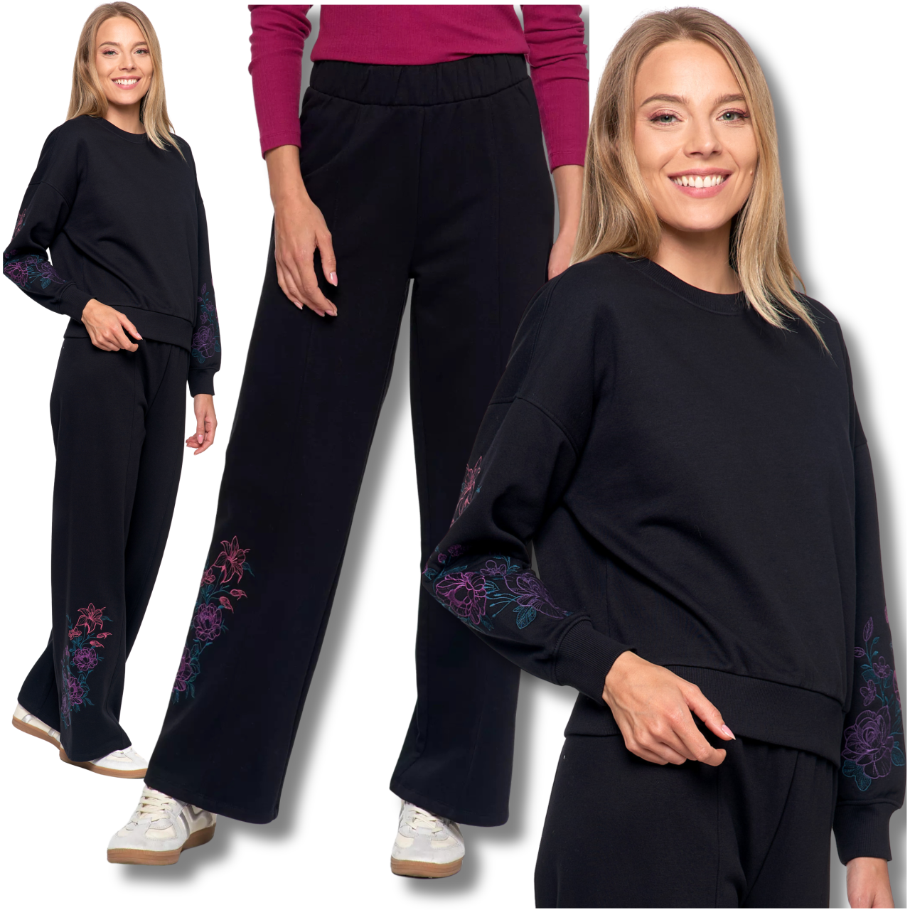 DRES DAMSKI SPODNIE OCIEPLANE Z HAFTEM BLUZA CIEPŁA HAFT NA RĘKAWIE MORAJ