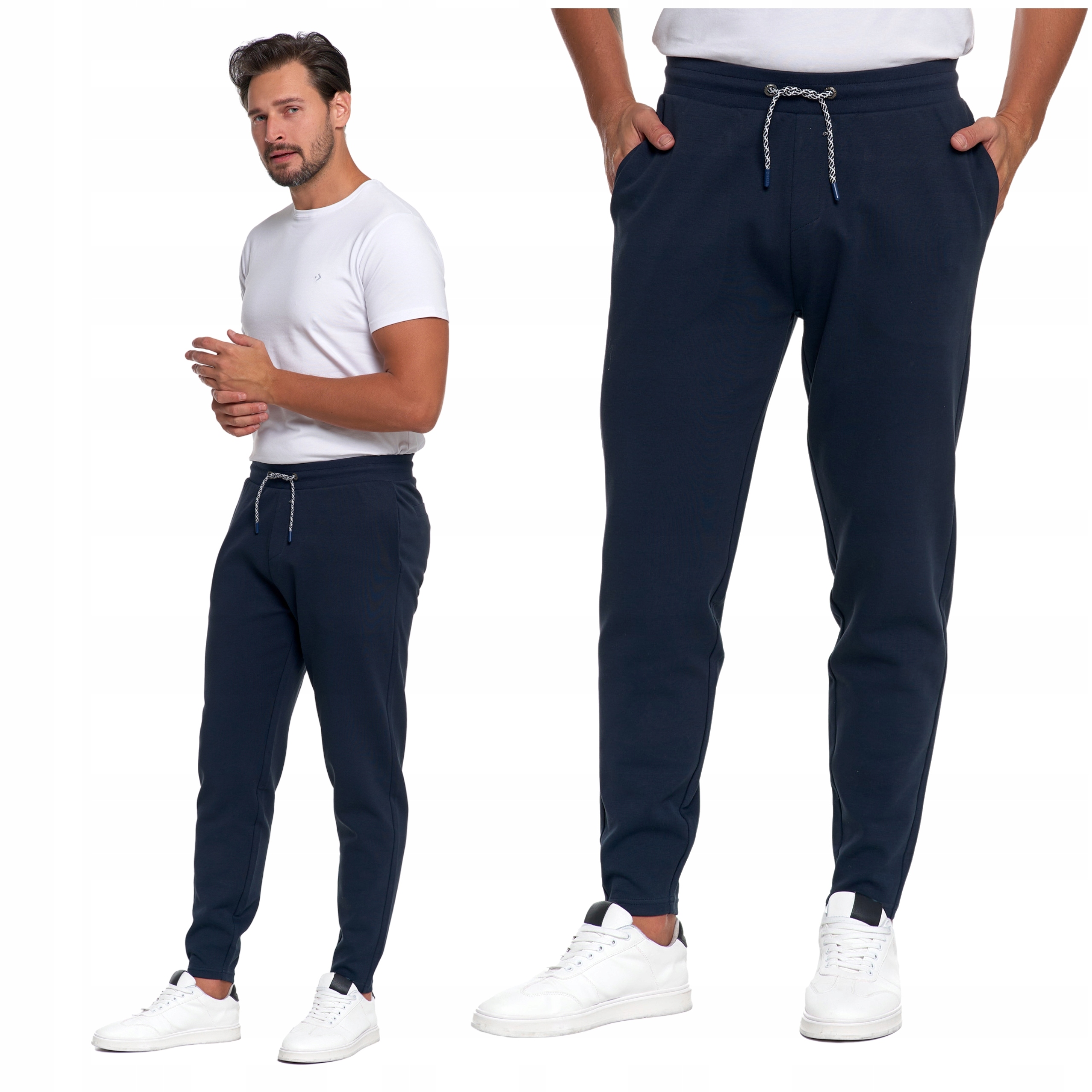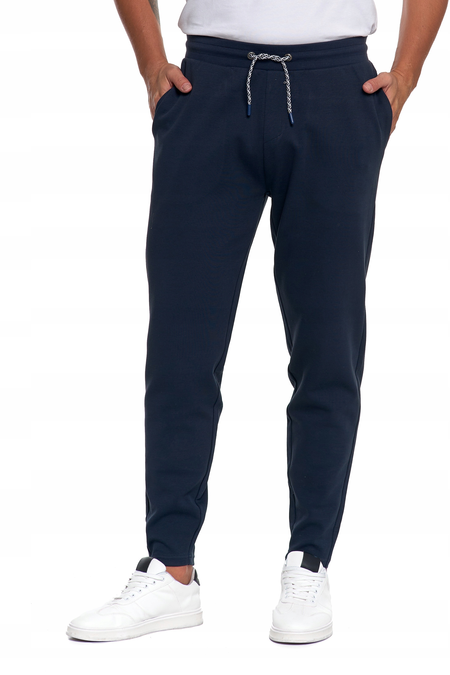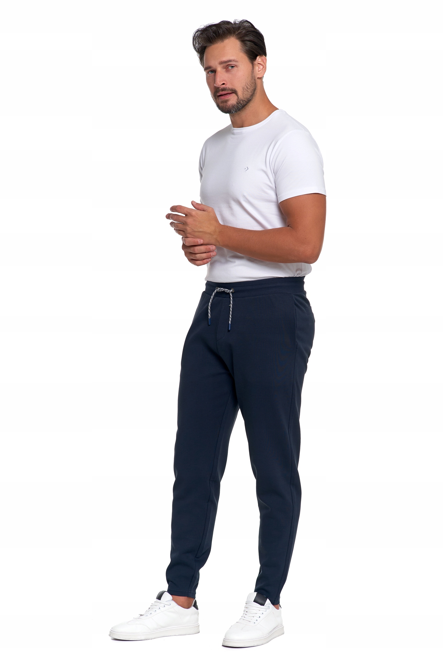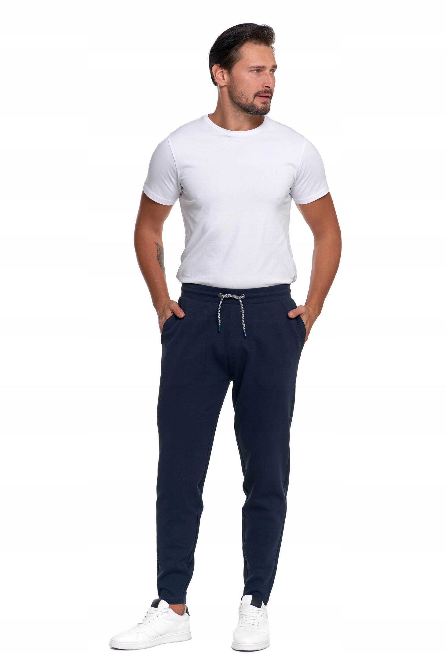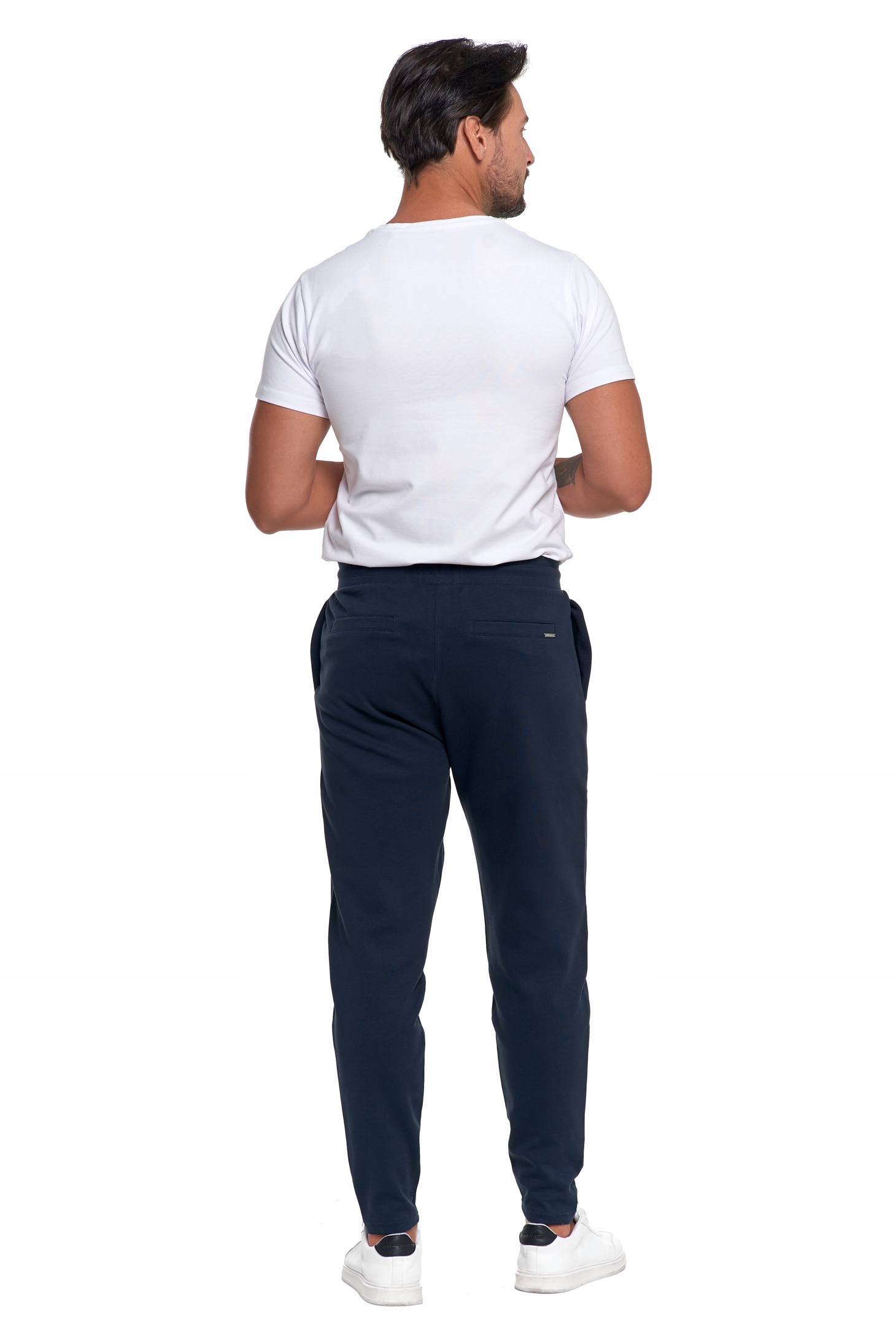 DRESOWE SPODNIE MĘSKIE Klasyczne Gładkie Granatowe z Kieszeniami MORAJ