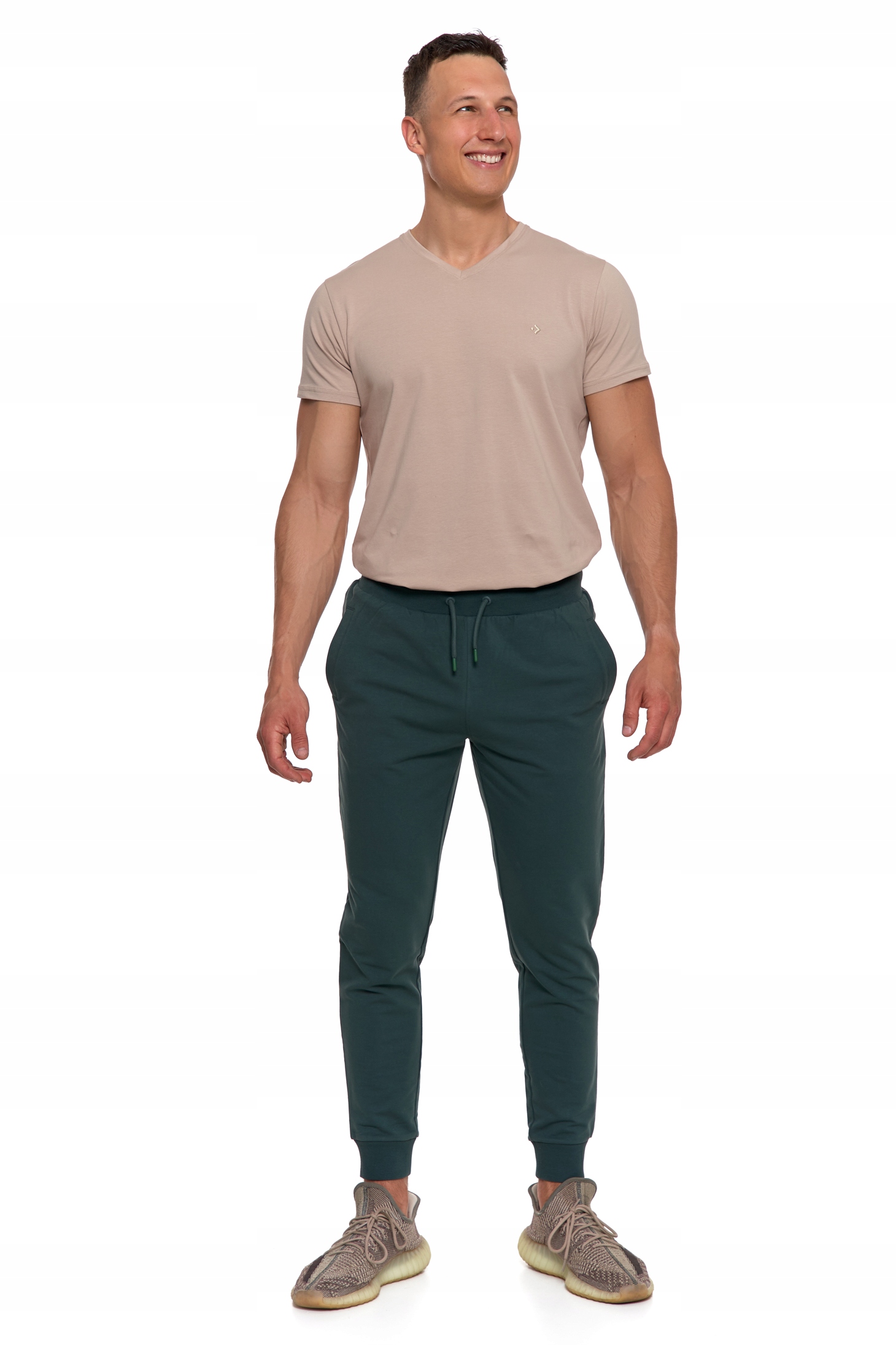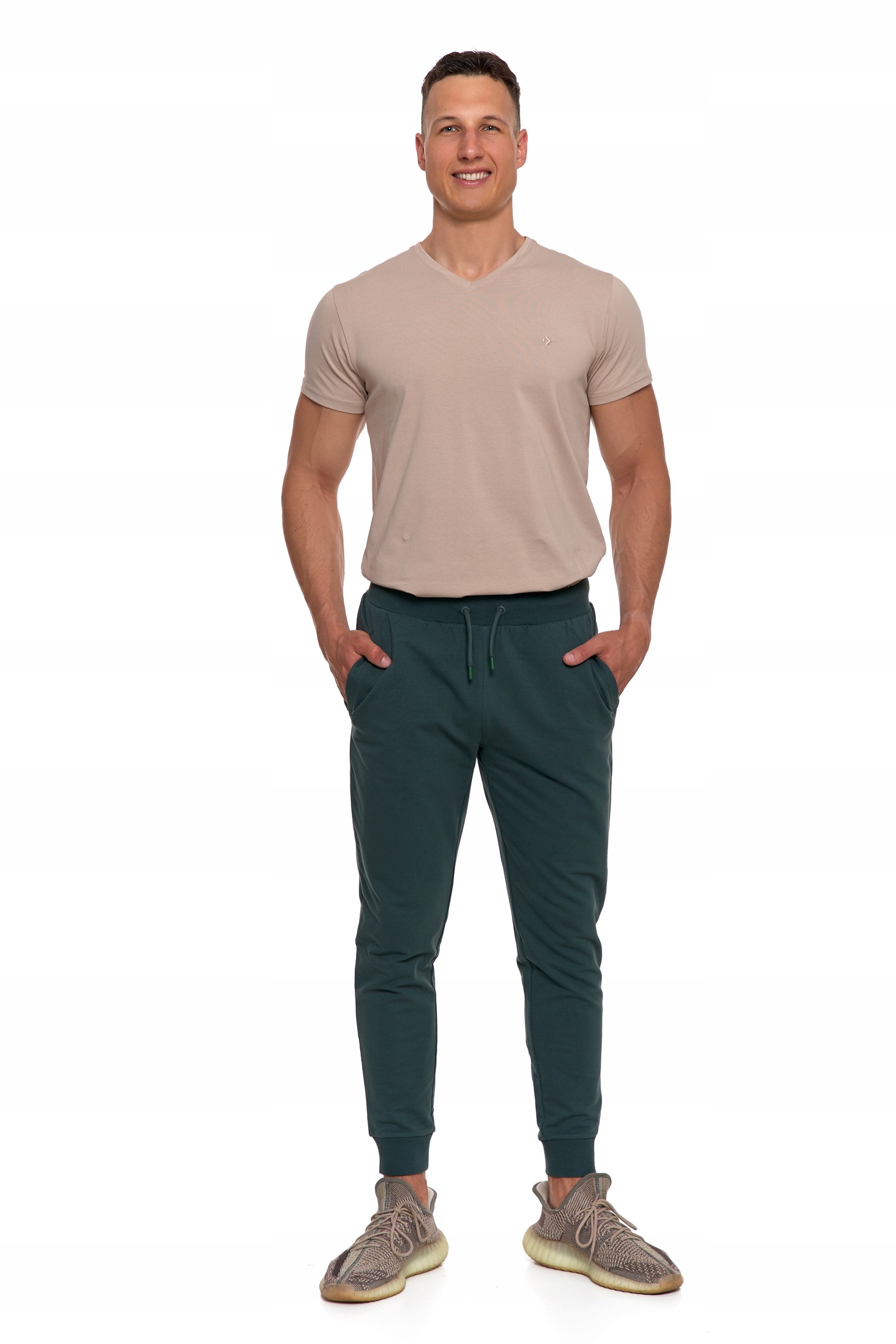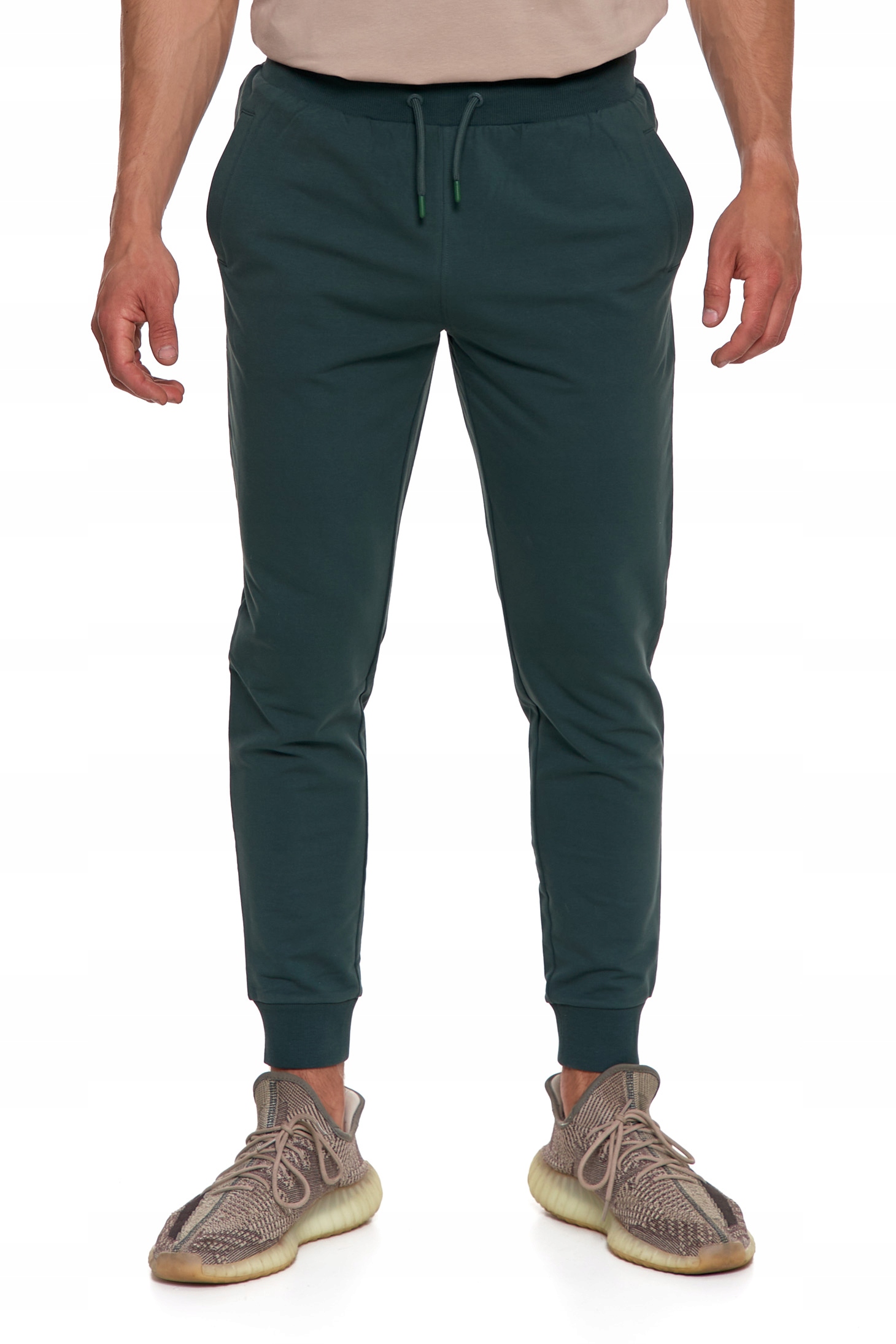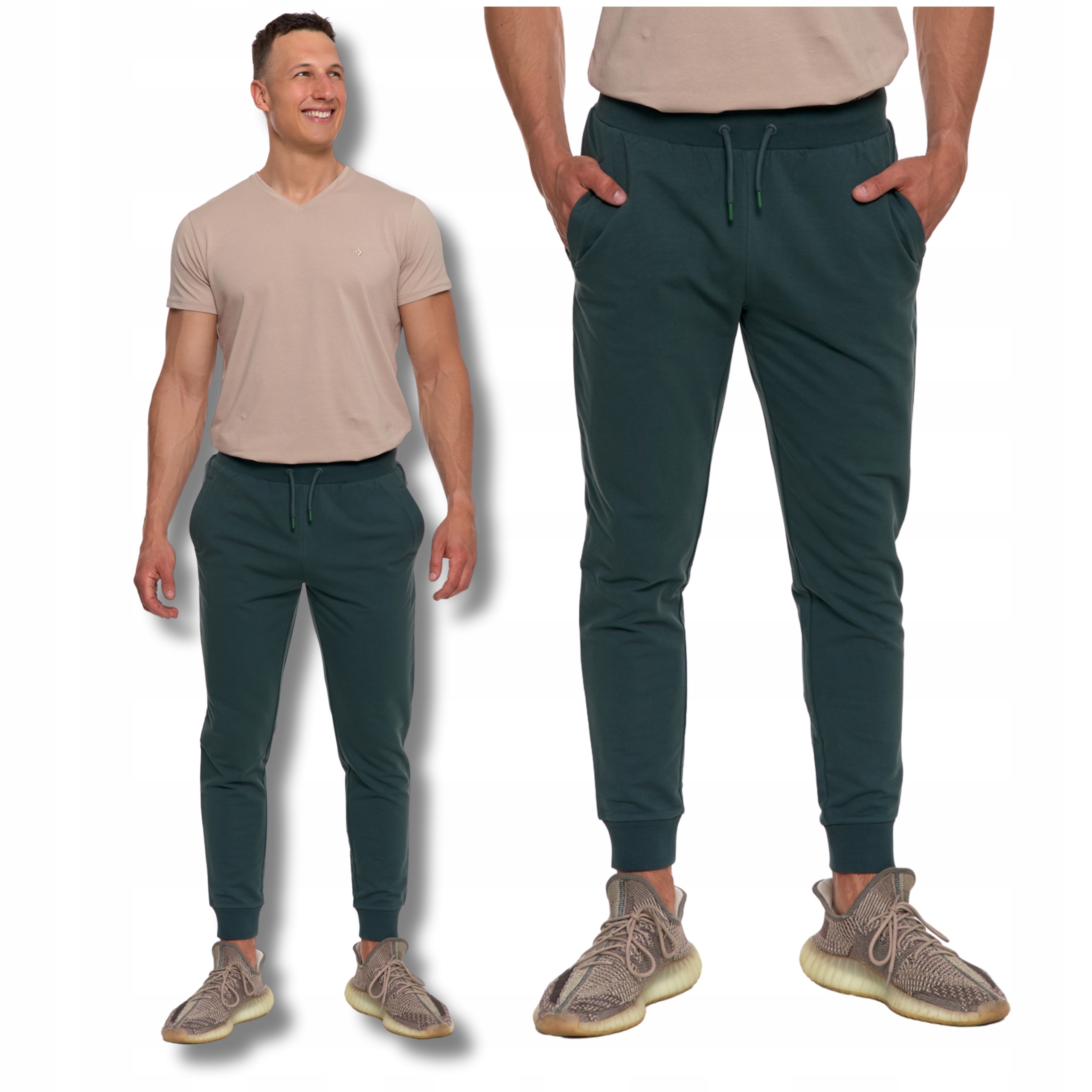 • Zwężane nogawki ze ściągaczami – nowoczesny krój i wygodne dopasowanie,