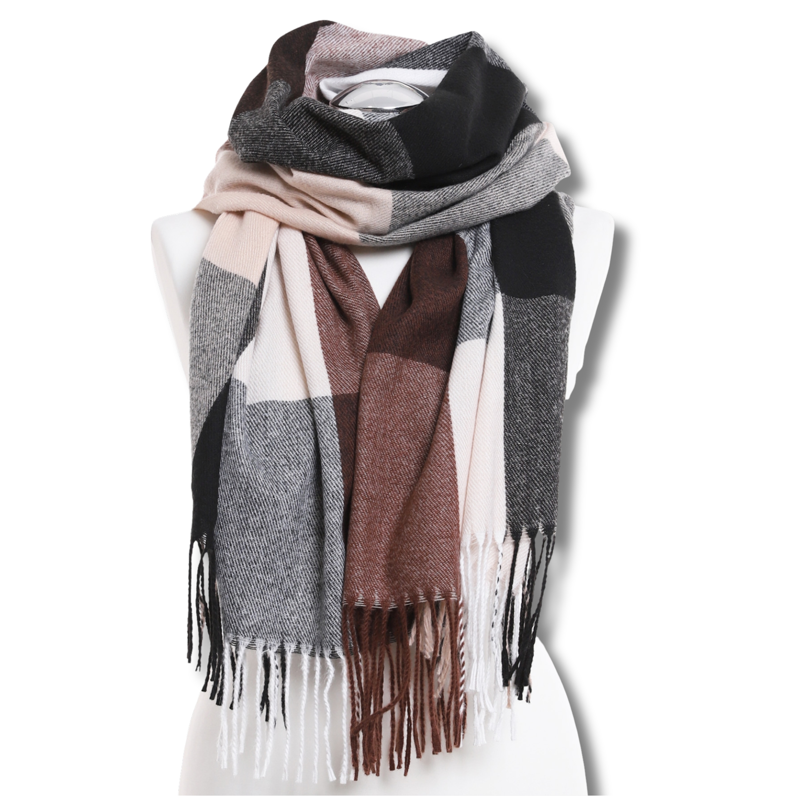 Szal damski w kratę z frędzlami to klasyk, który pasuje zarówno do płaszcza, jak i do kurtki. Dzięki dużemu rozmiarowi i miękkiej strukturze stanie się Twoim ulubionym dodatkiem na chłodniejsze dni, łącząc modny wygląd z wygodą.