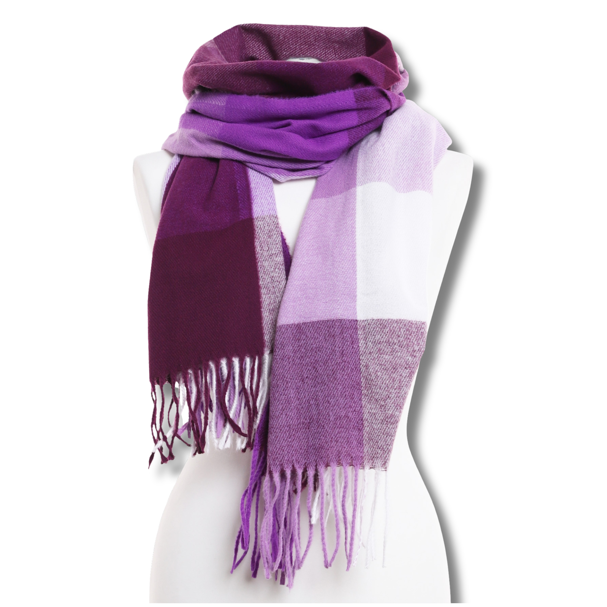 DUŻY SZAL DAMSKI MODNY W KRATĘ Z FRĘDZLAMI SZALIK NA CHŁODNE DNI MORAJ