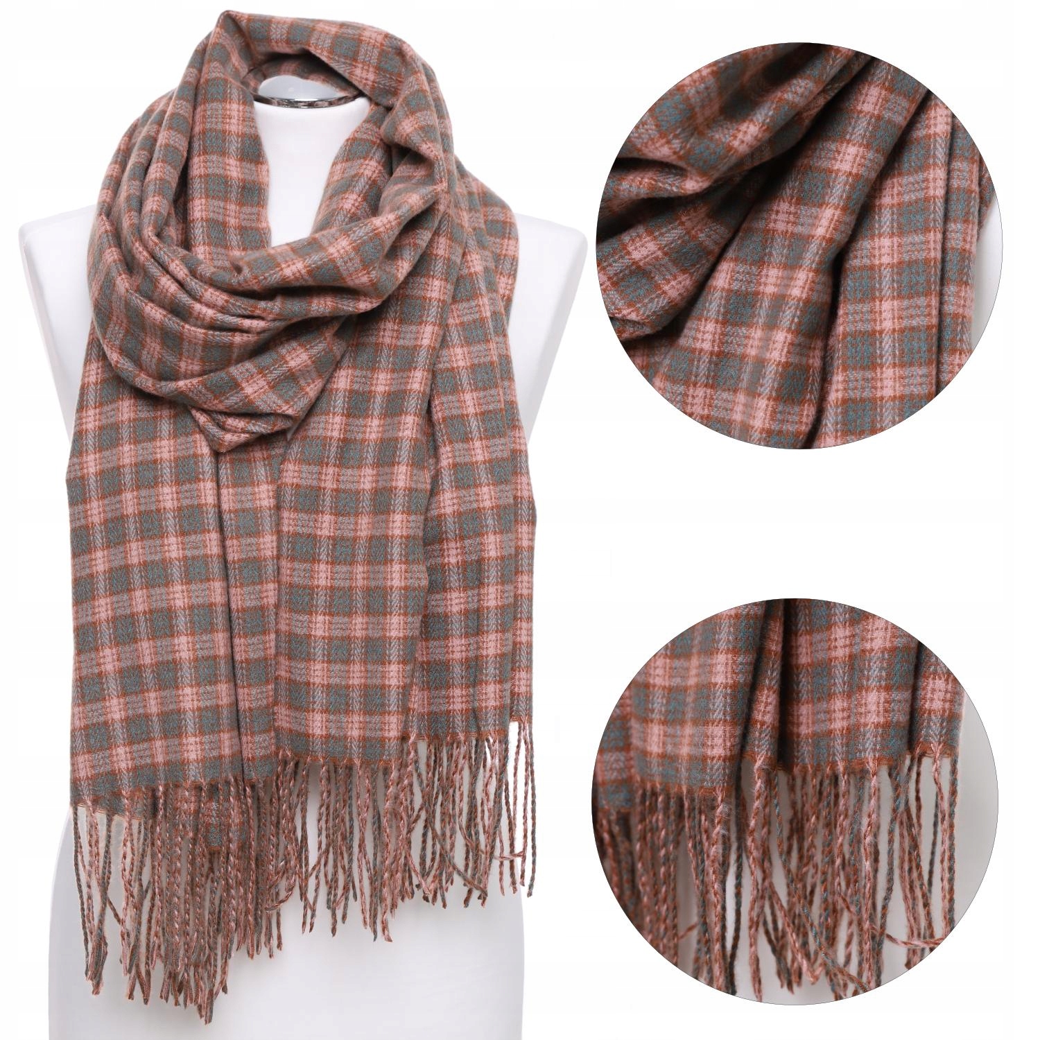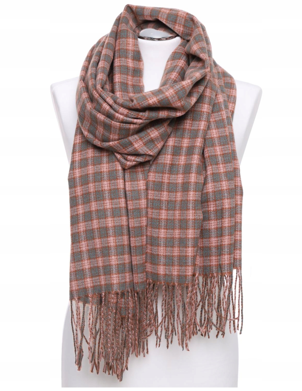 Duży Szal Damski w kratę z frędzlami MORAJ