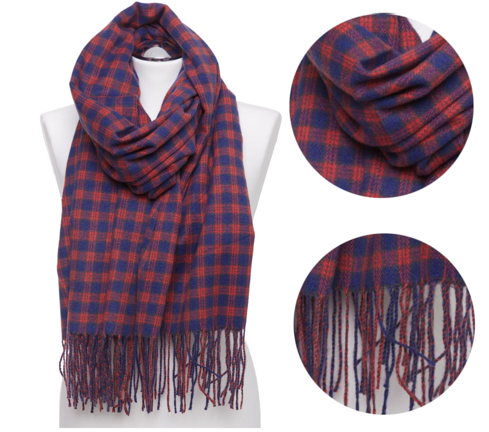 Duży Szal Damski w kratę z frędzlami MORAJ