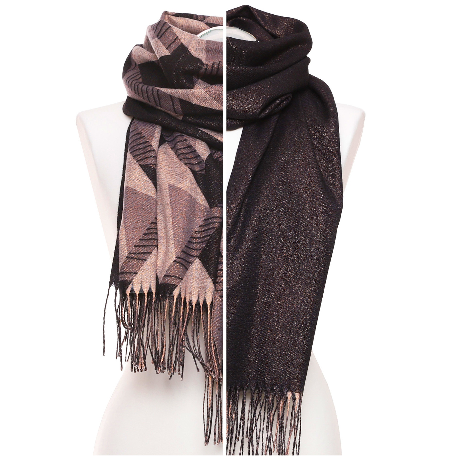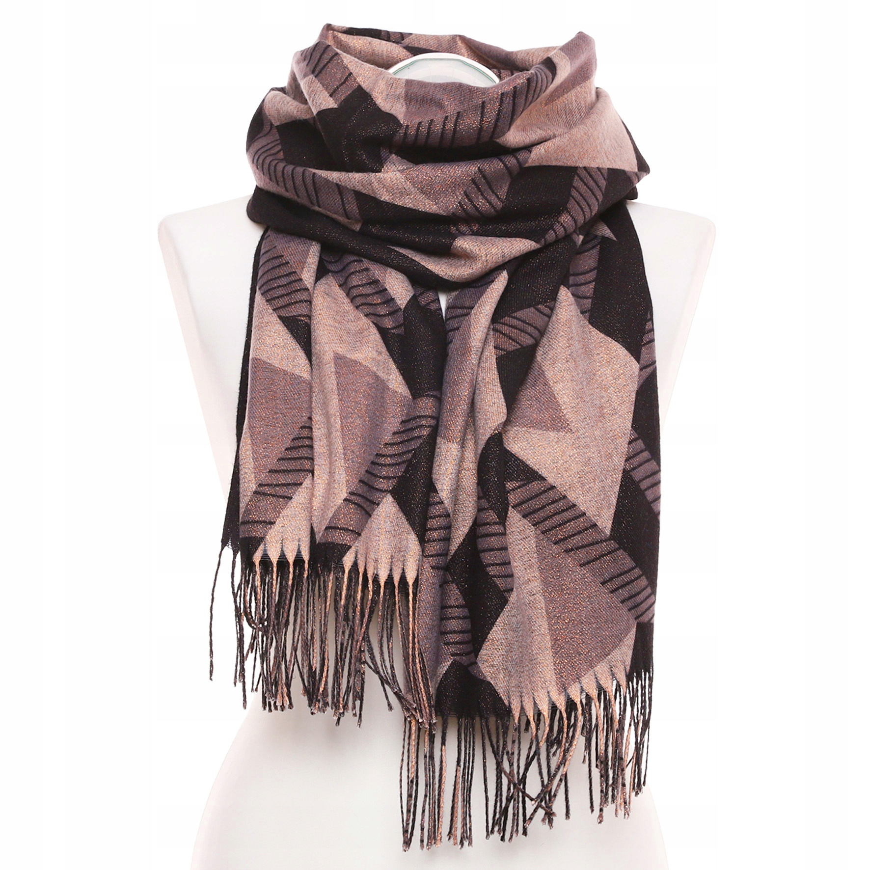 Ten stylowy szal damski z geometrycznym wzorem to doskonałe połączenie elegancji i komfortu.