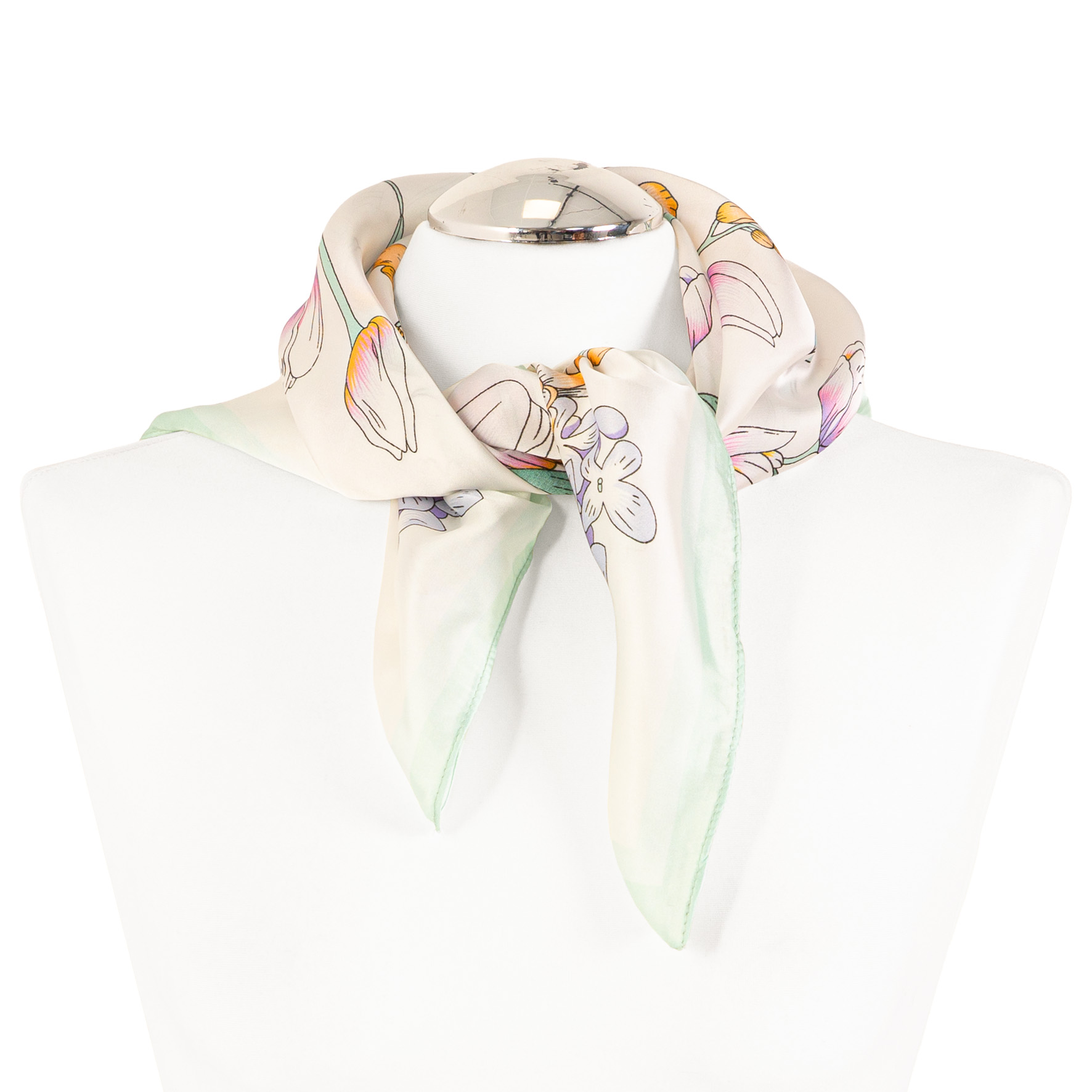 - Klasyczny Format 68 × 68 cm: Kwadratowy kształt o uniwersalnych wymiarach daje mnóstwo możliwości stylizacji – od klasycznego wiązania na szyi, po ozdobę torebki lub modny akcent we włosach.