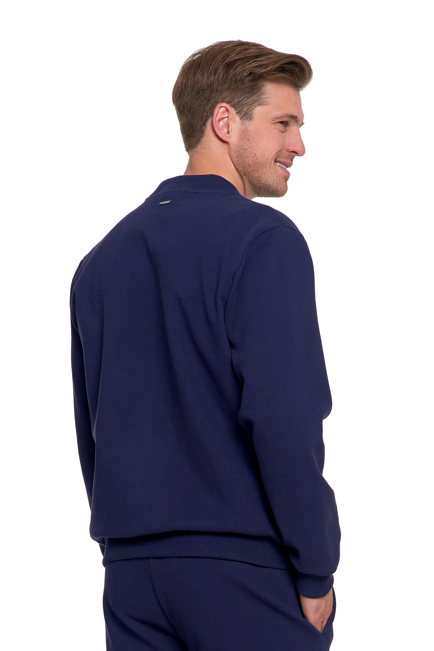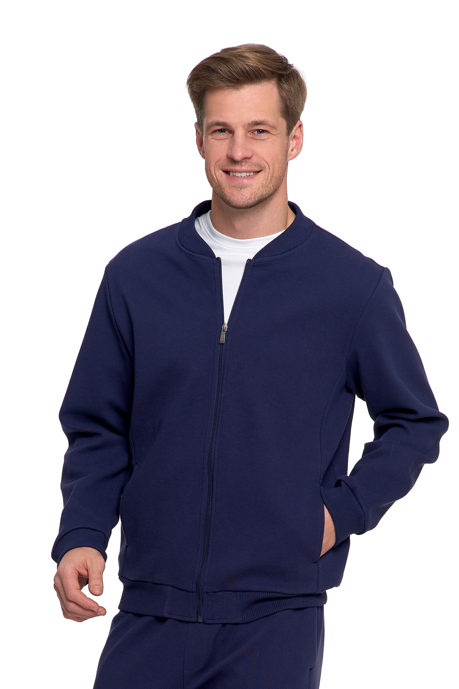 ELEGANCKA BLUZA MĘSKA DRESOWA ZE STÓJKĄ ROZPINANA ZE STRUKTURĄ MORAJ