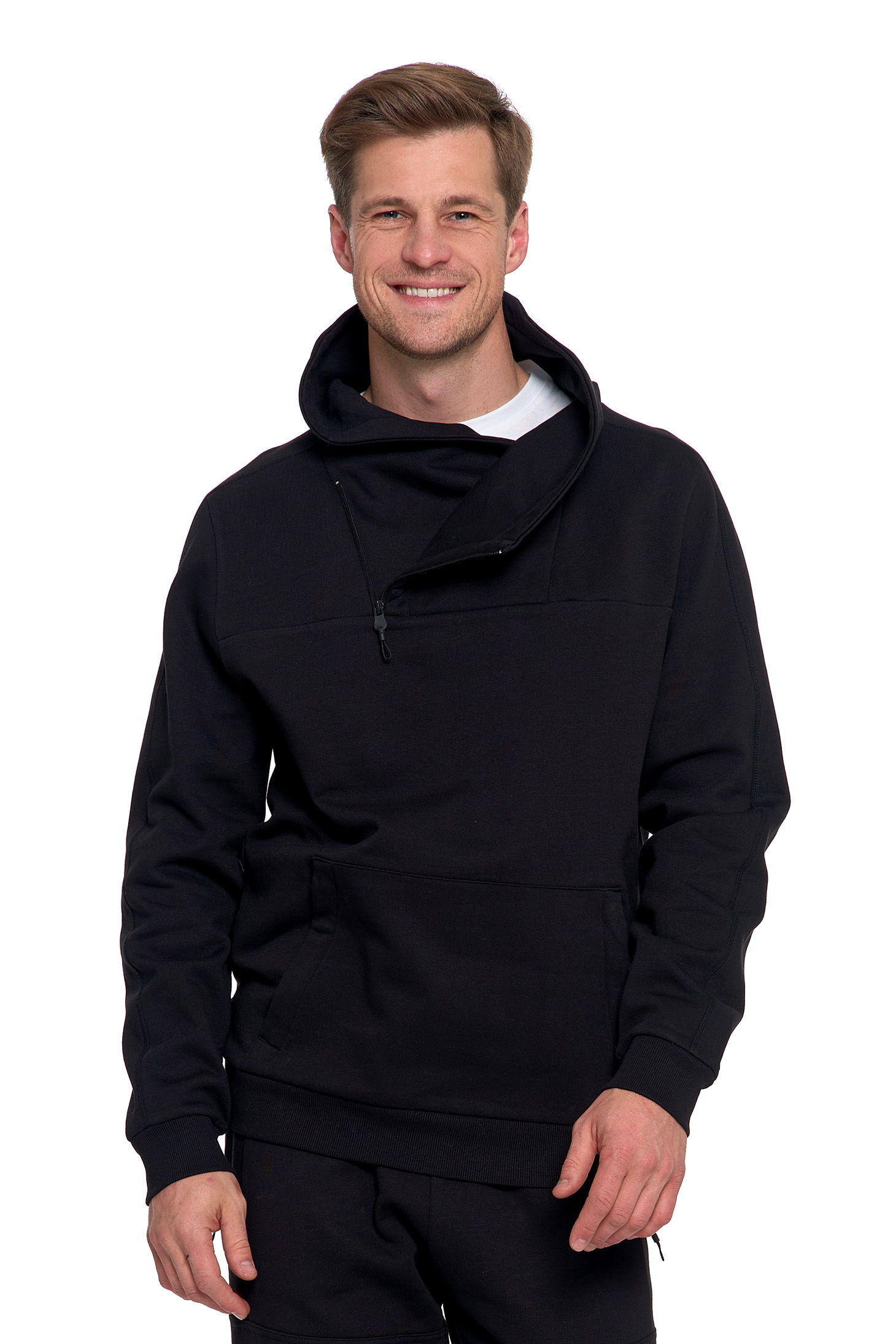 - Funkcjonalność: Posiada praktyczną kieszeń typu kangurka z przodu, zapinaną na zamek (lub zamykaną), idealną do ogrzania dłoni lub bezpiecznego przechowywania drobiazgów.