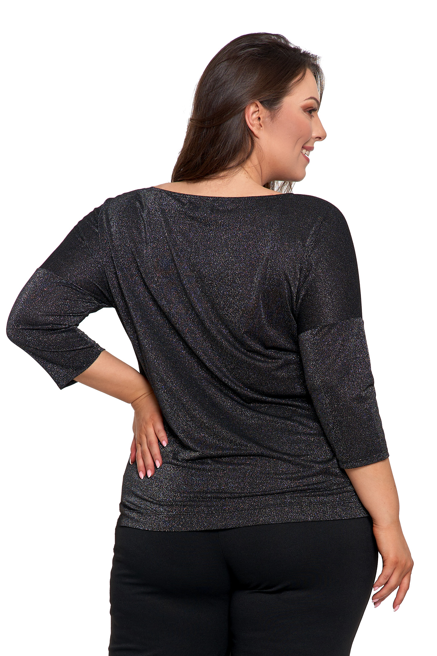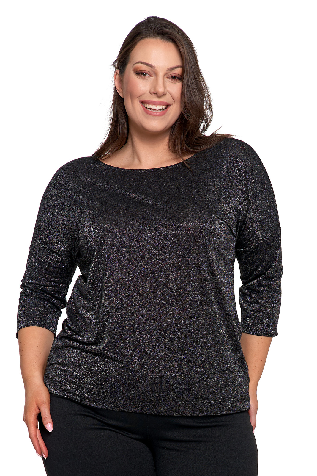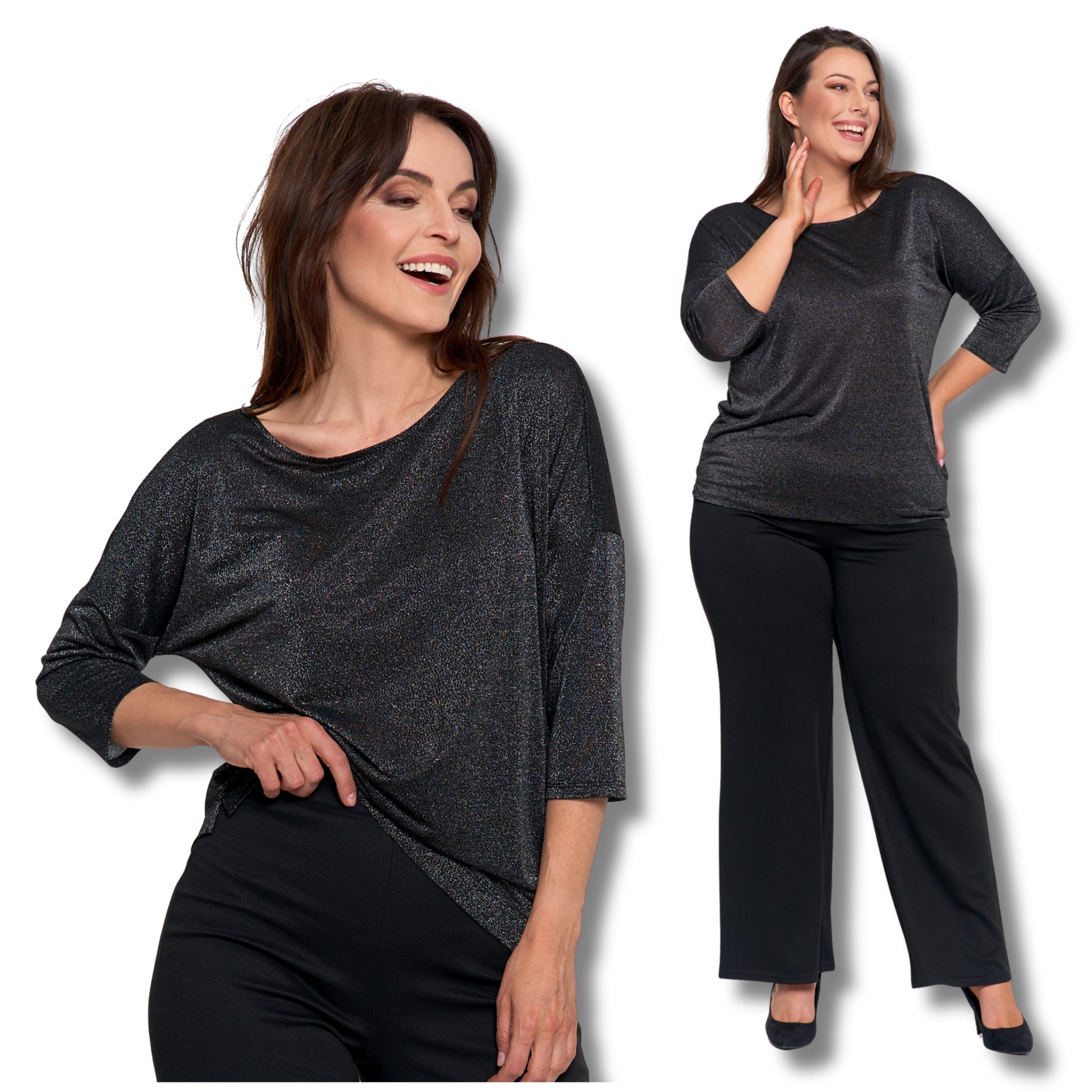 ELEGANCKA BLUZKA DAMSKA BŁYSZCZĄCA MODNA RĘKAW 3/4 LUŹNA KOSZULKA MORAJ