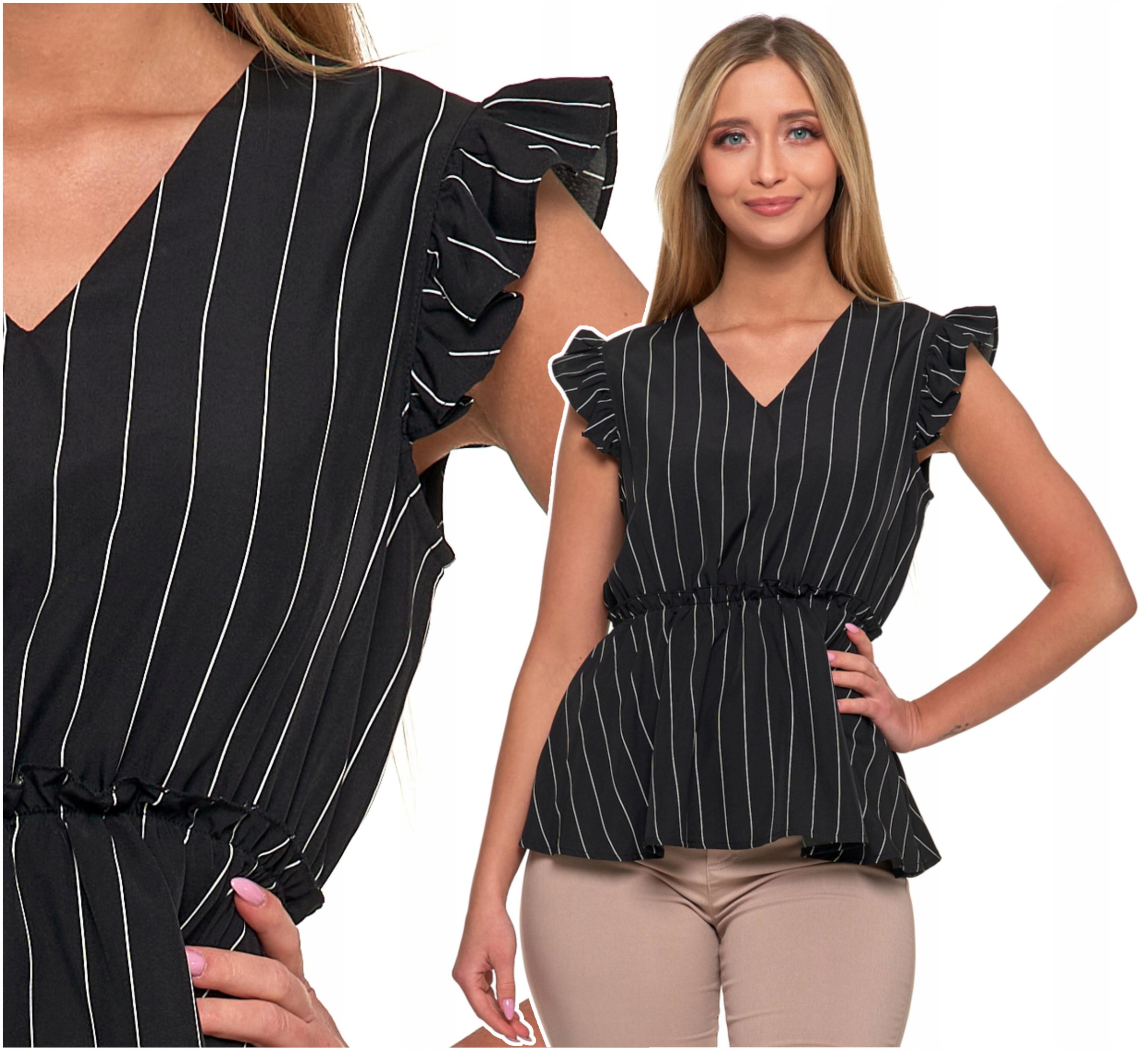 ELEGANCKA BLUZKA DAMSKA Motylkowy Rękaw Paski Podkreślona Talia MORAJ