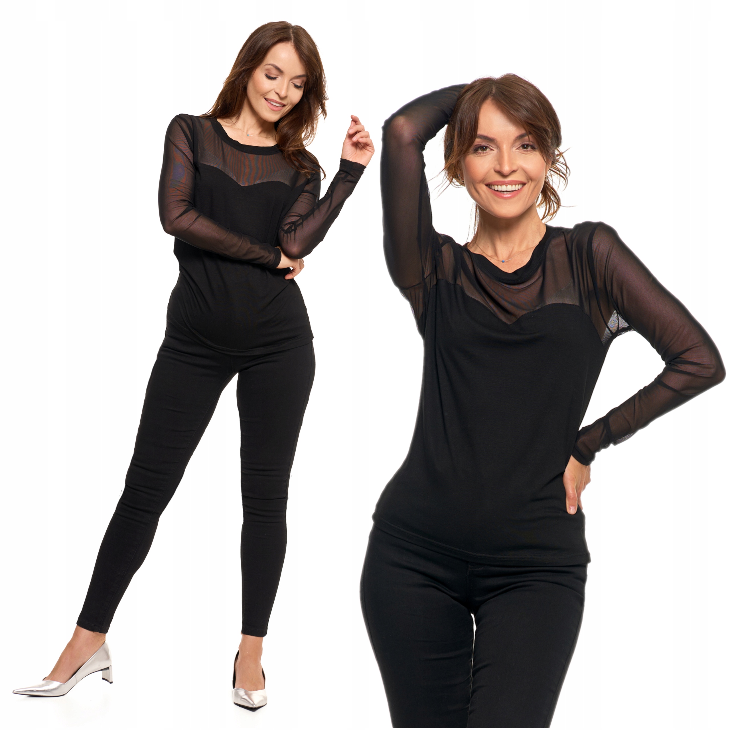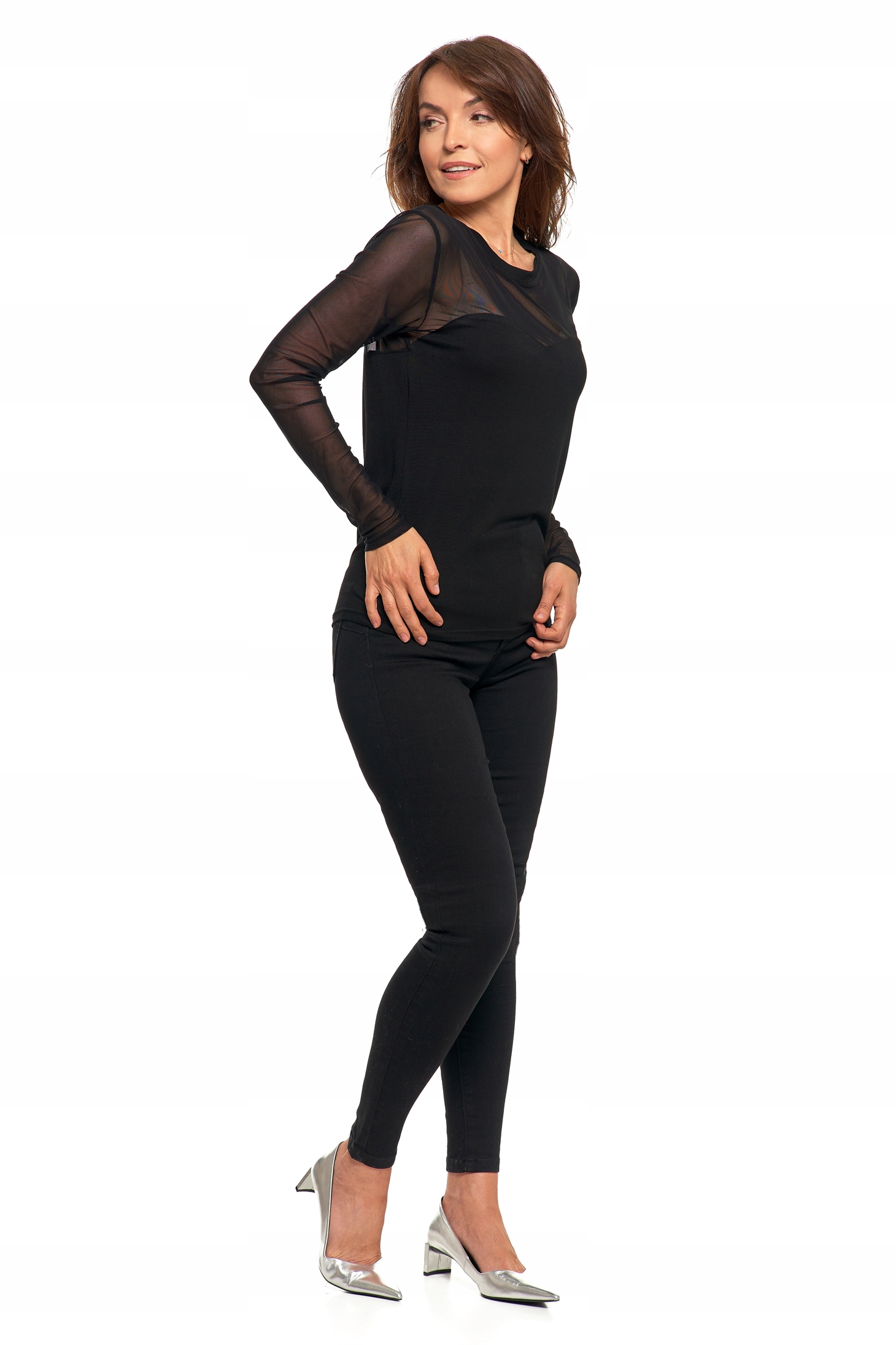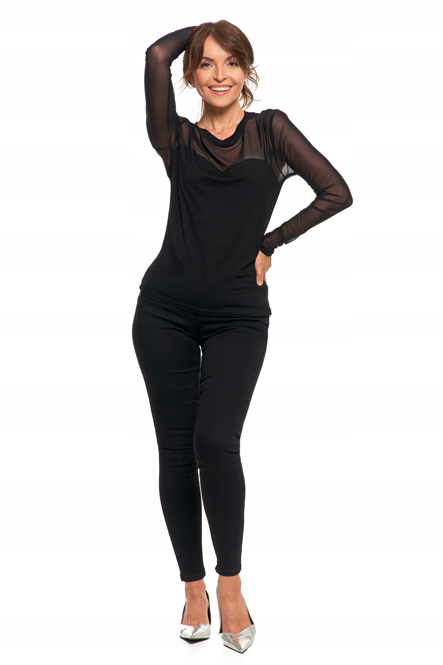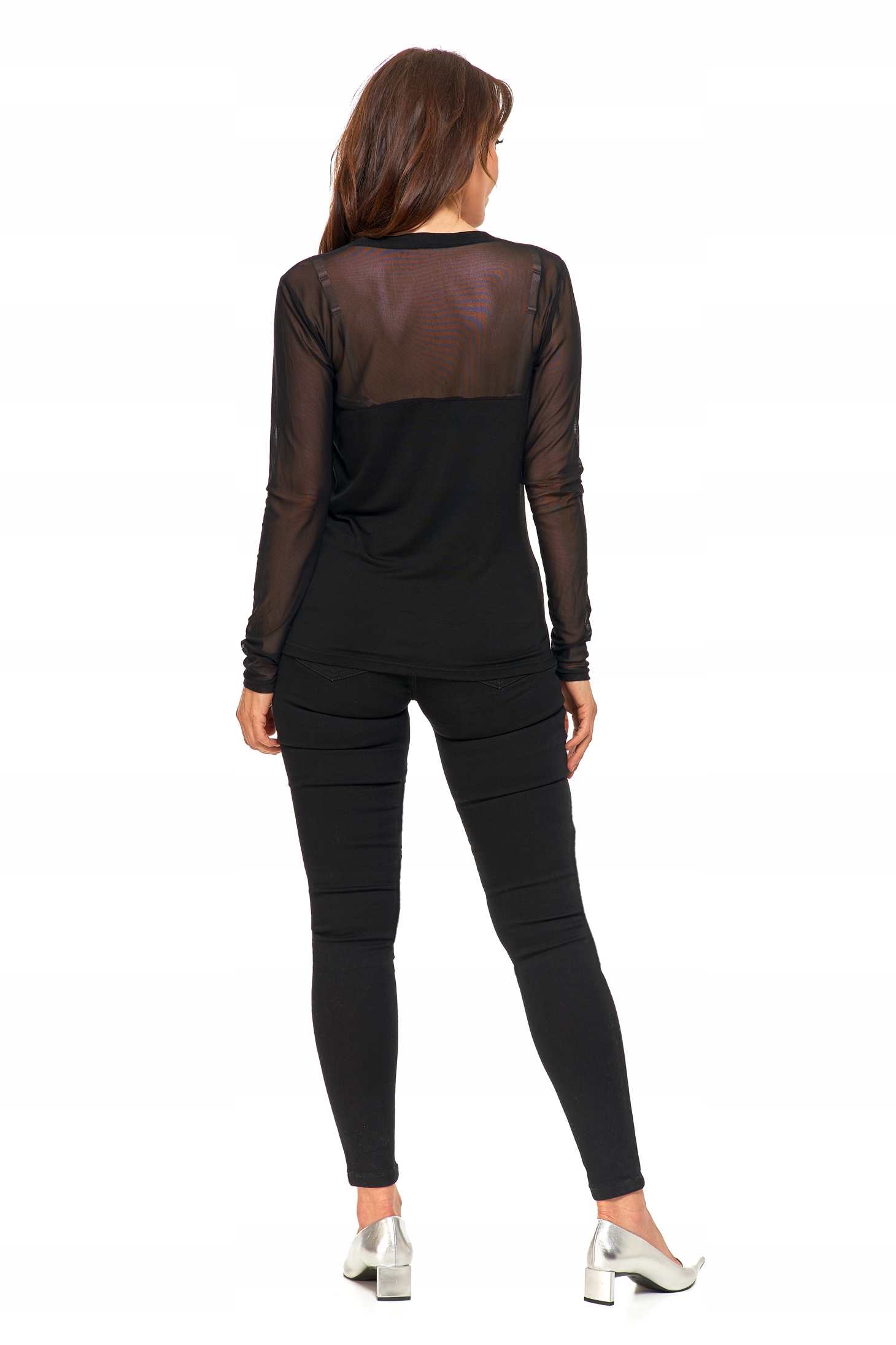 Elegancka Bluzka Damska Ozdobna Siateczka Stylowa Modna Czarna MORAJ