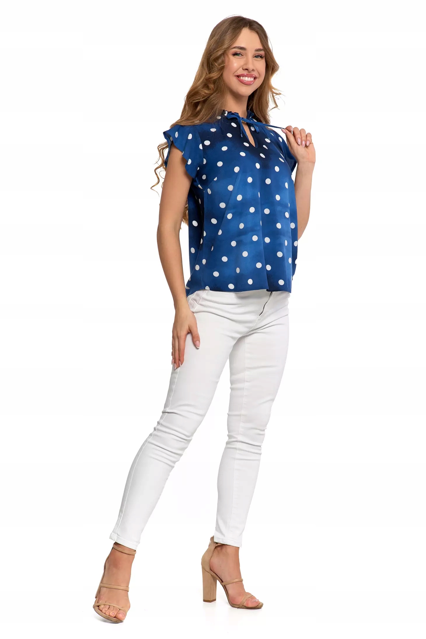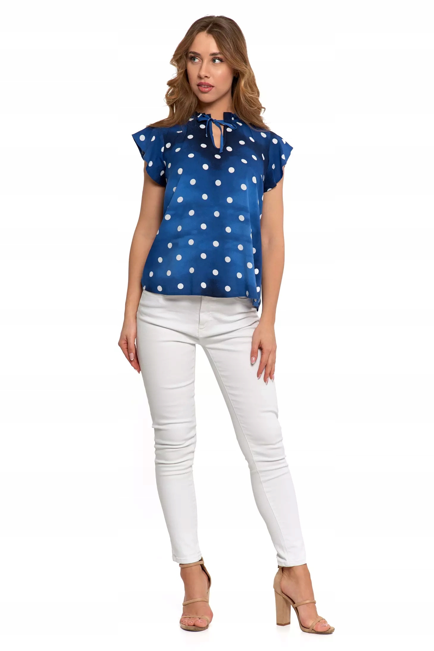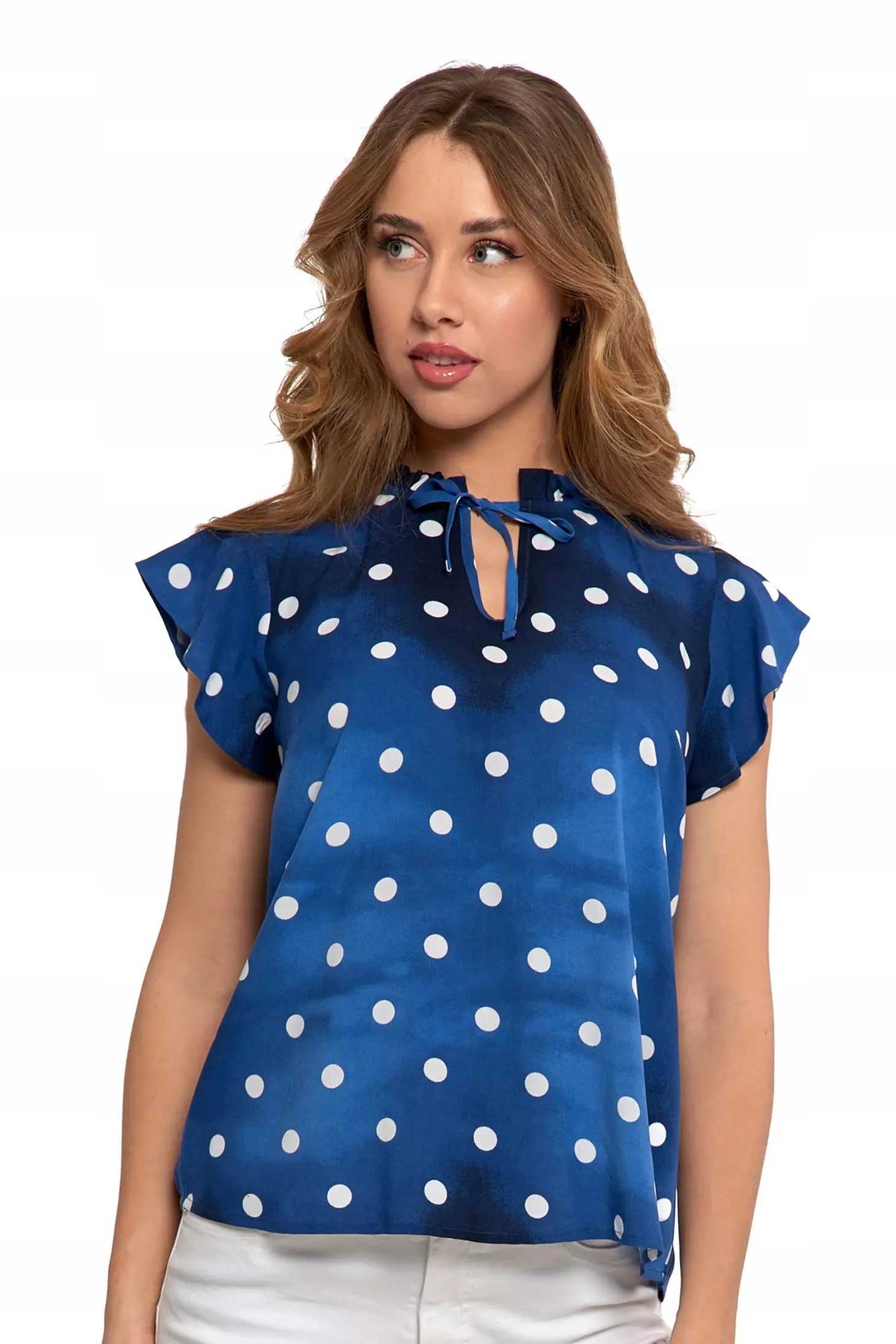 Elegancka Bluzka Damska w Groszki z Krótkim Rękawem Lekka MORAJ