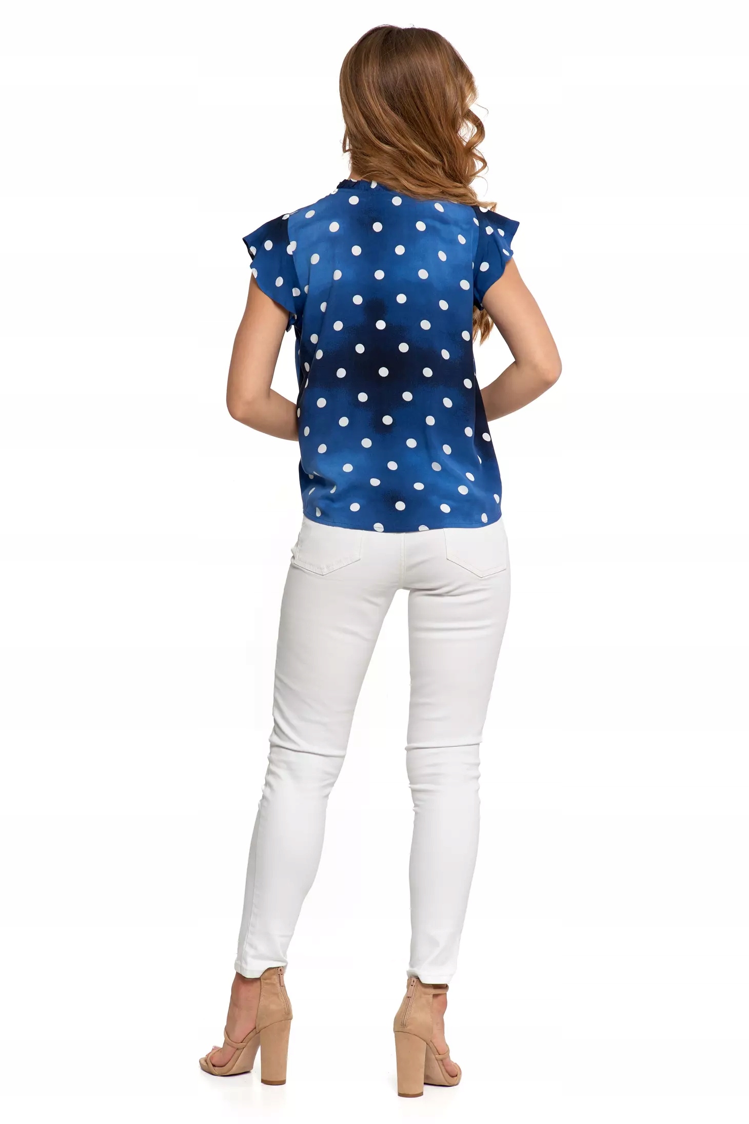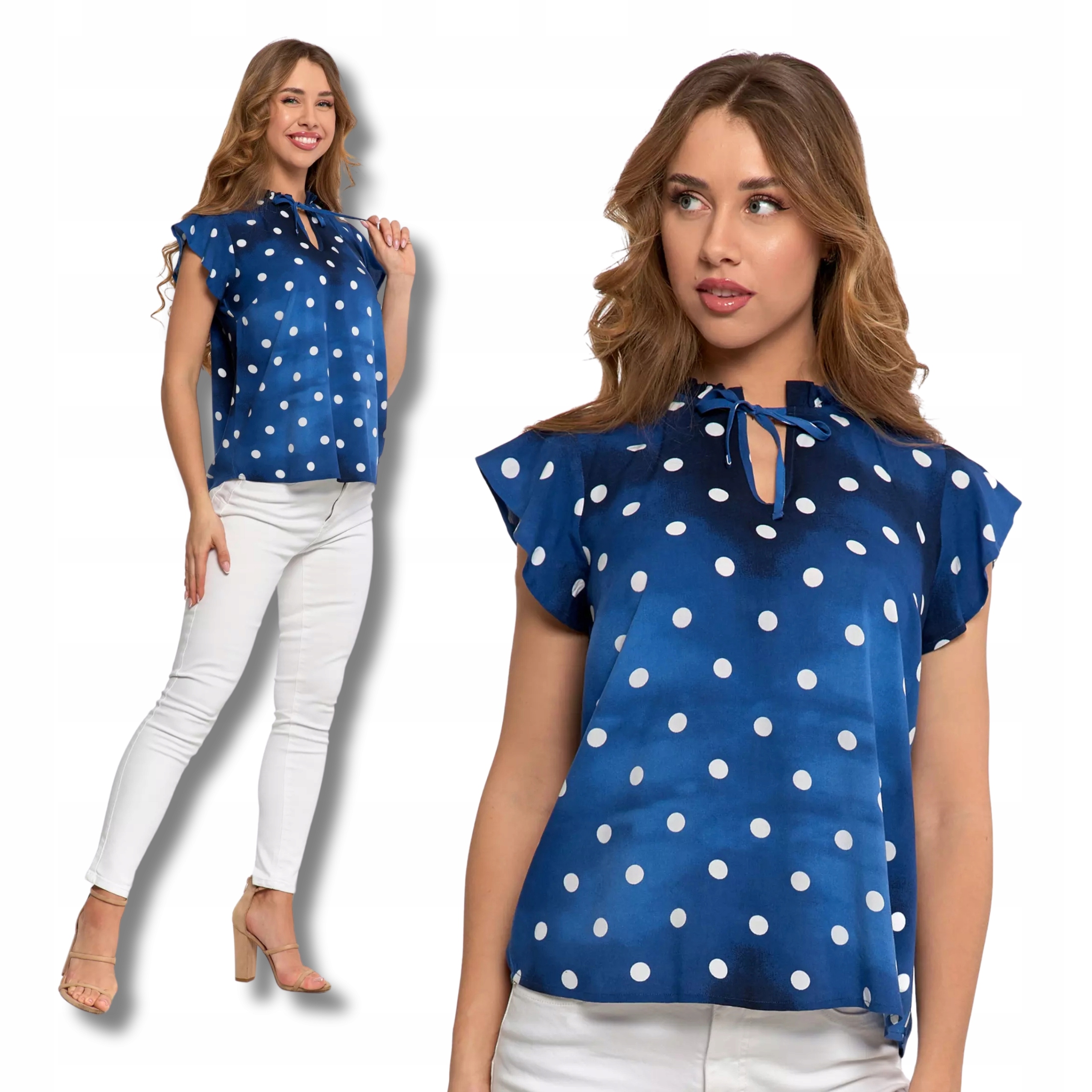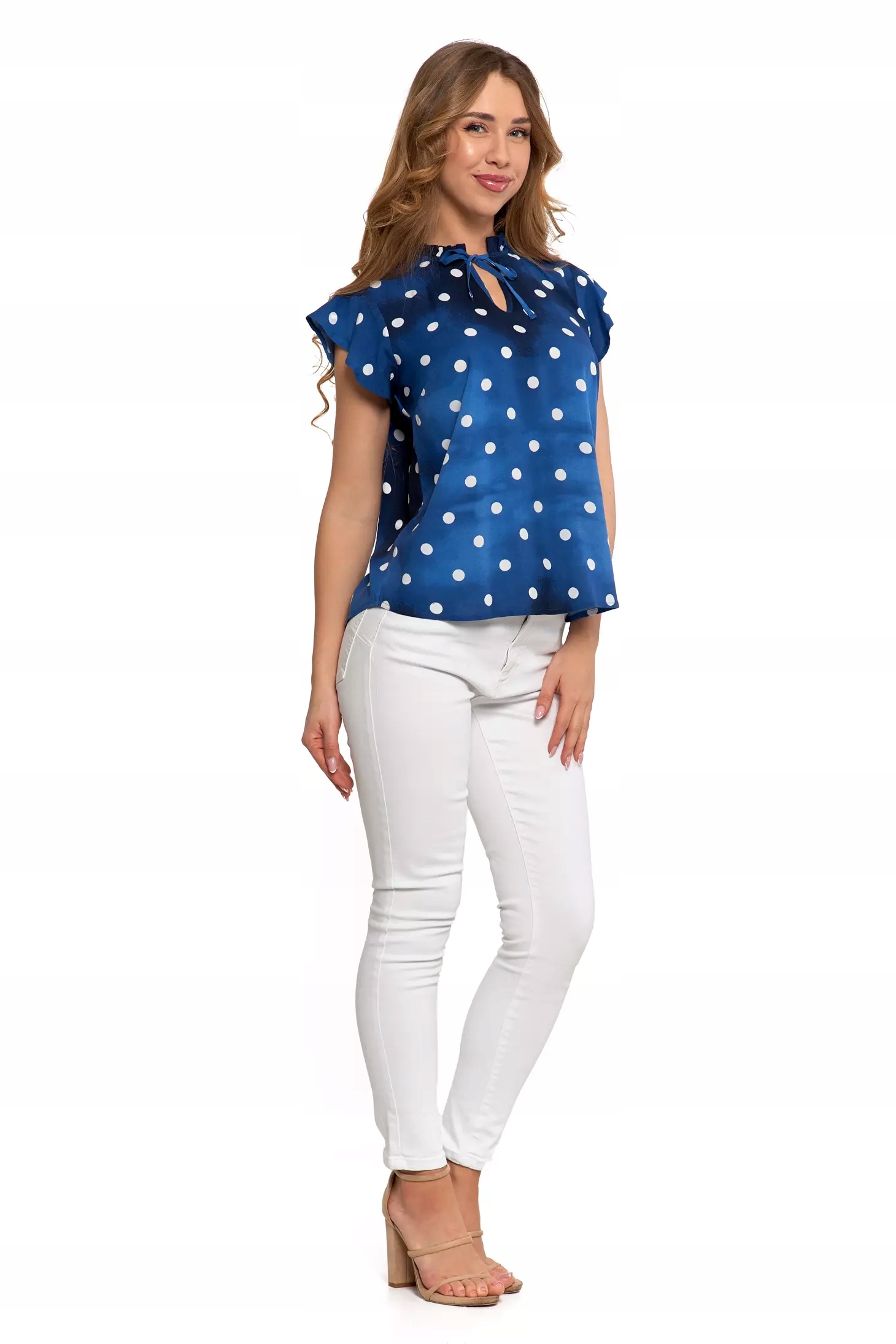 Elegancka Bluzka Damska w Groszki z Krótkim Rękawem Lekka MORAJ