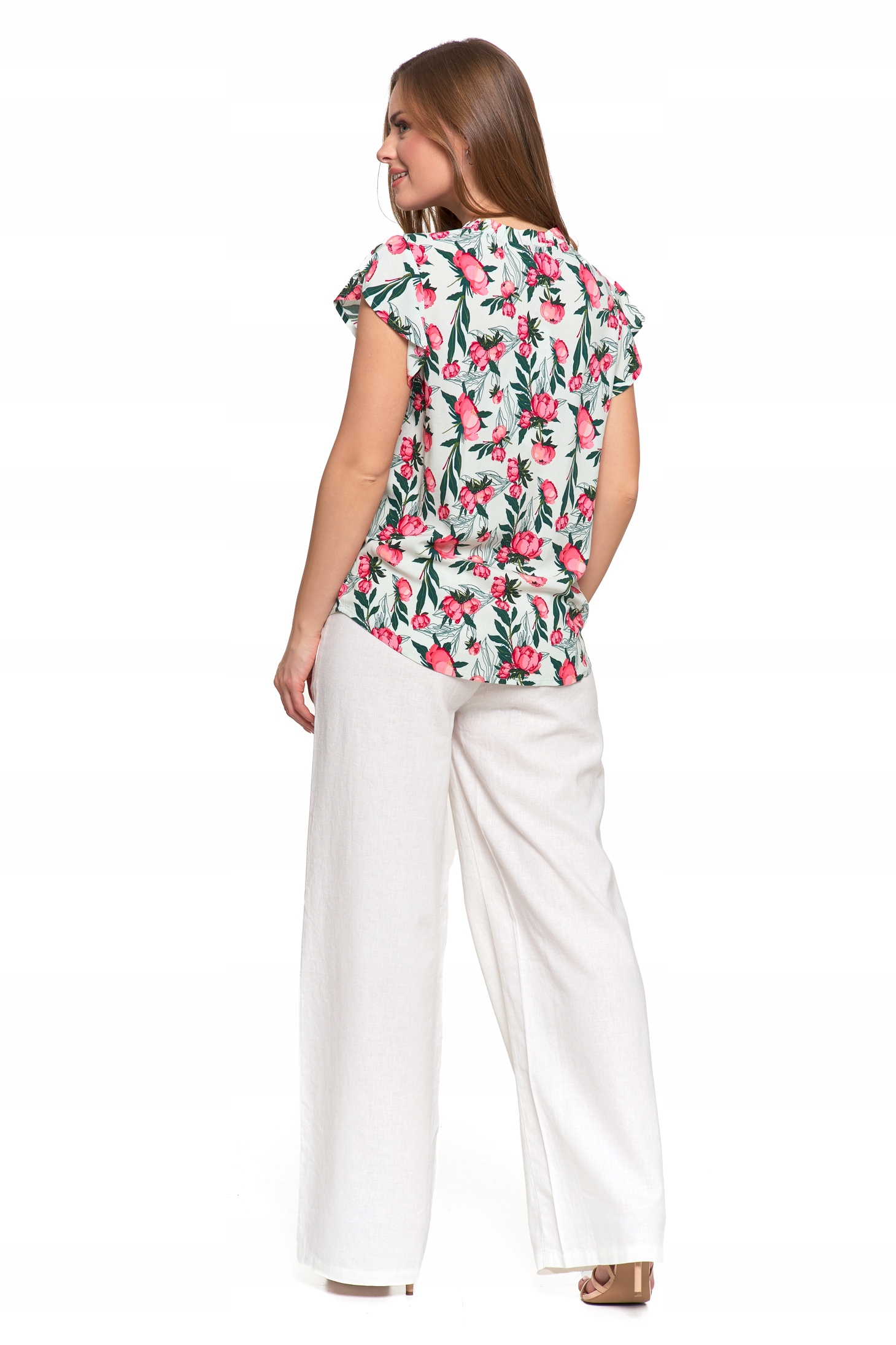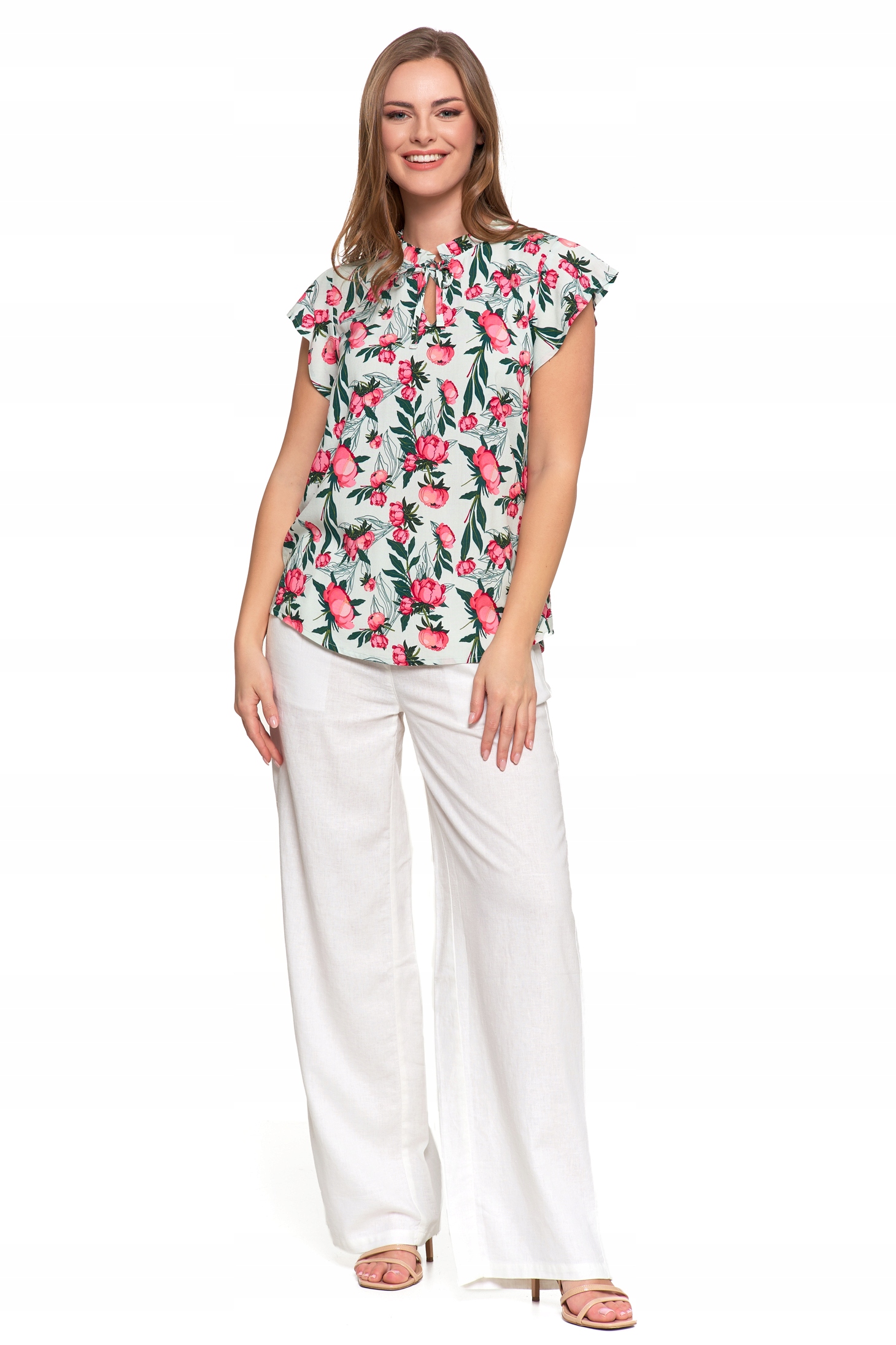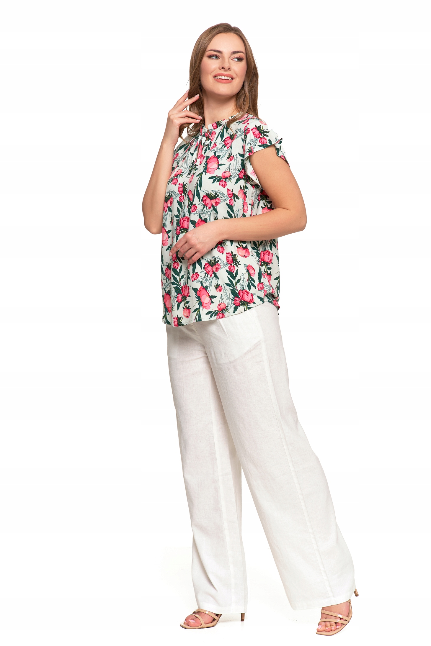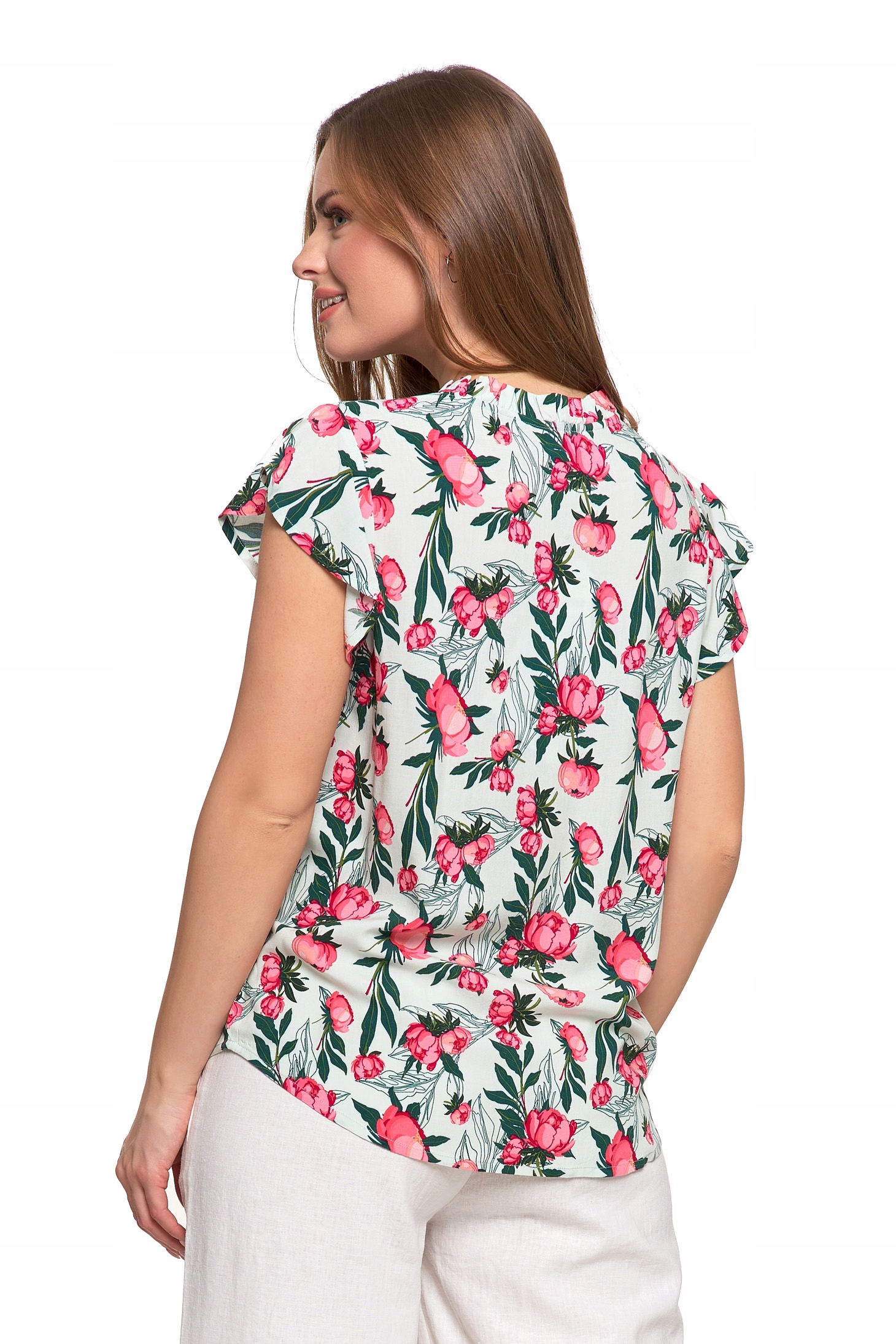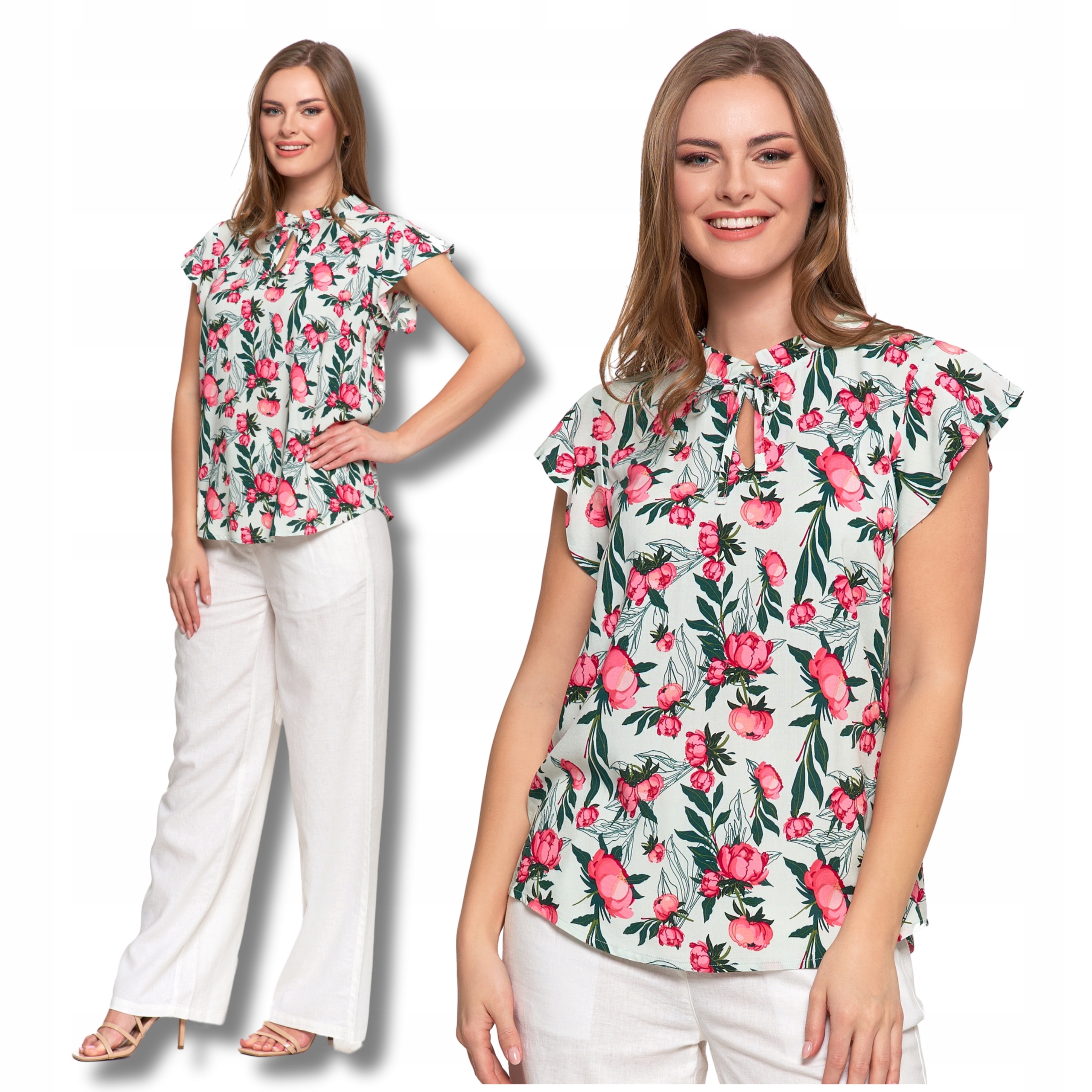Elegancka Bluzka Damska w Kwiatki z Krótkim Rękawem Lekka MORAJ