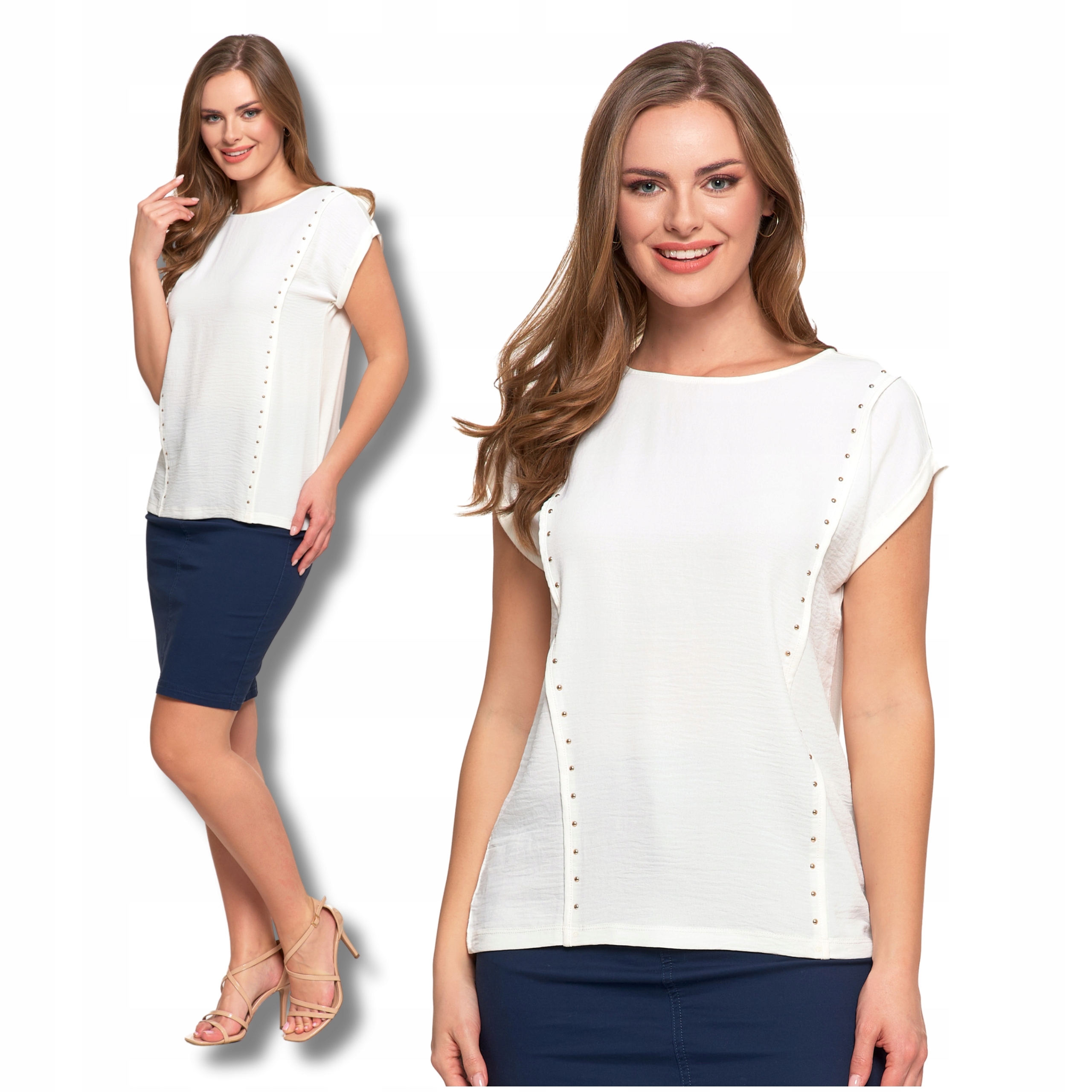 Elegancka Bluzka Damska z Dekoracyjnymi Dżetami Modna Koszulka MORAJ