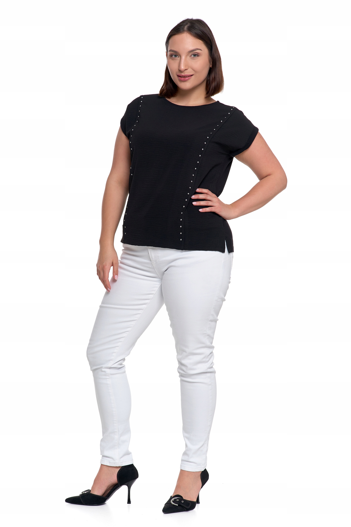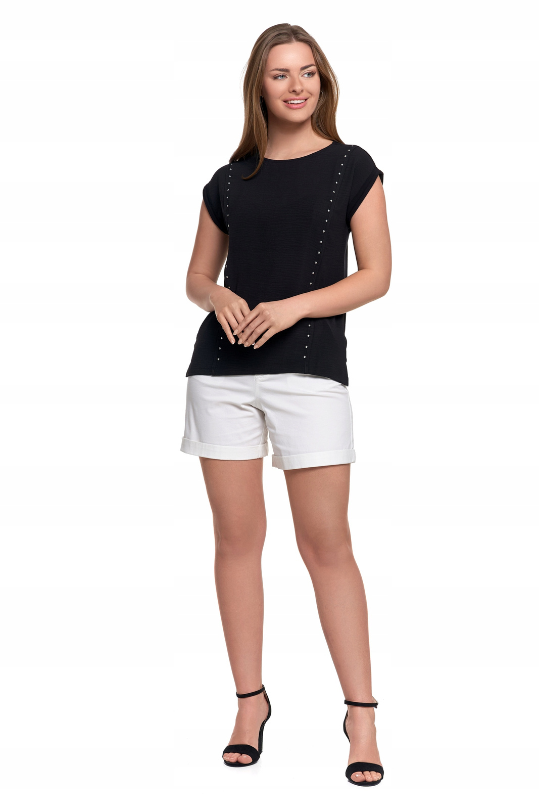 Elegancka Bluzka Damska z Dekoracyjnymi Dżetami Modna Koszulka MORAJ
