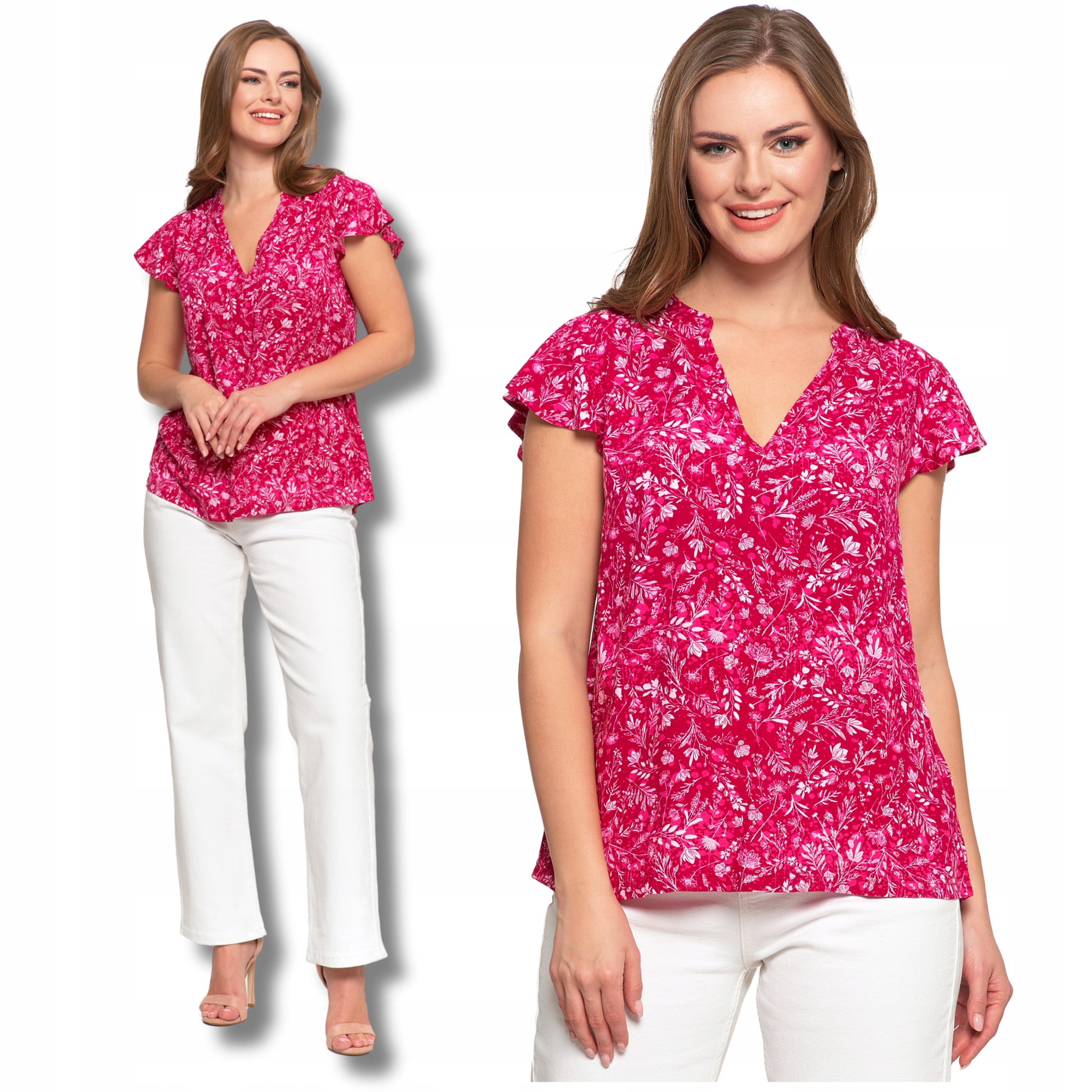ELEGANCKA BLUZKA DAMSKA Z KRÓKIM RĘKAWEM KOLOROWA ZWIEWNA LEKKA MORAJ