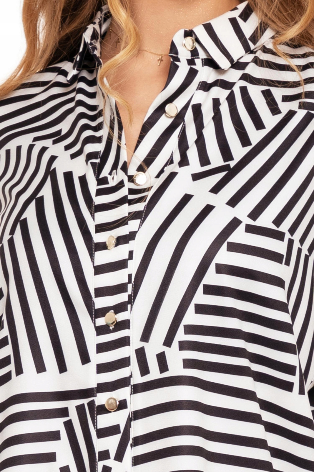 ELEGANCKA KOSZULA DAMSKA Długa Rękaw 3/4 Złote Guziki Modne Paski MORAJ