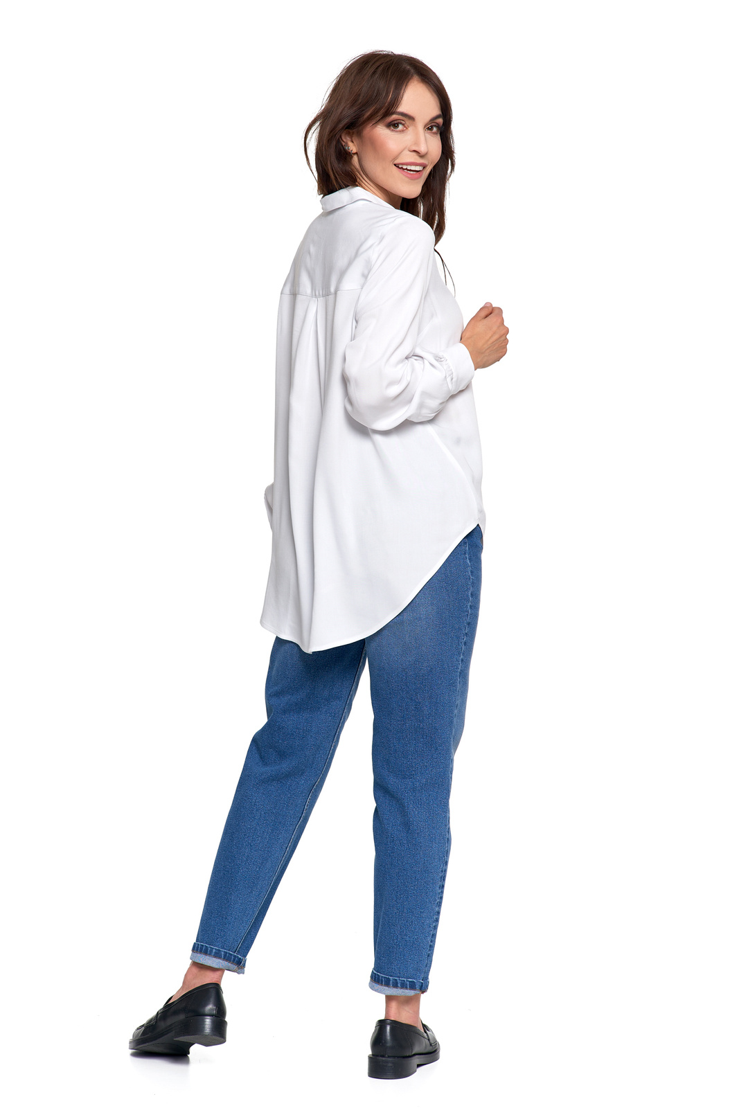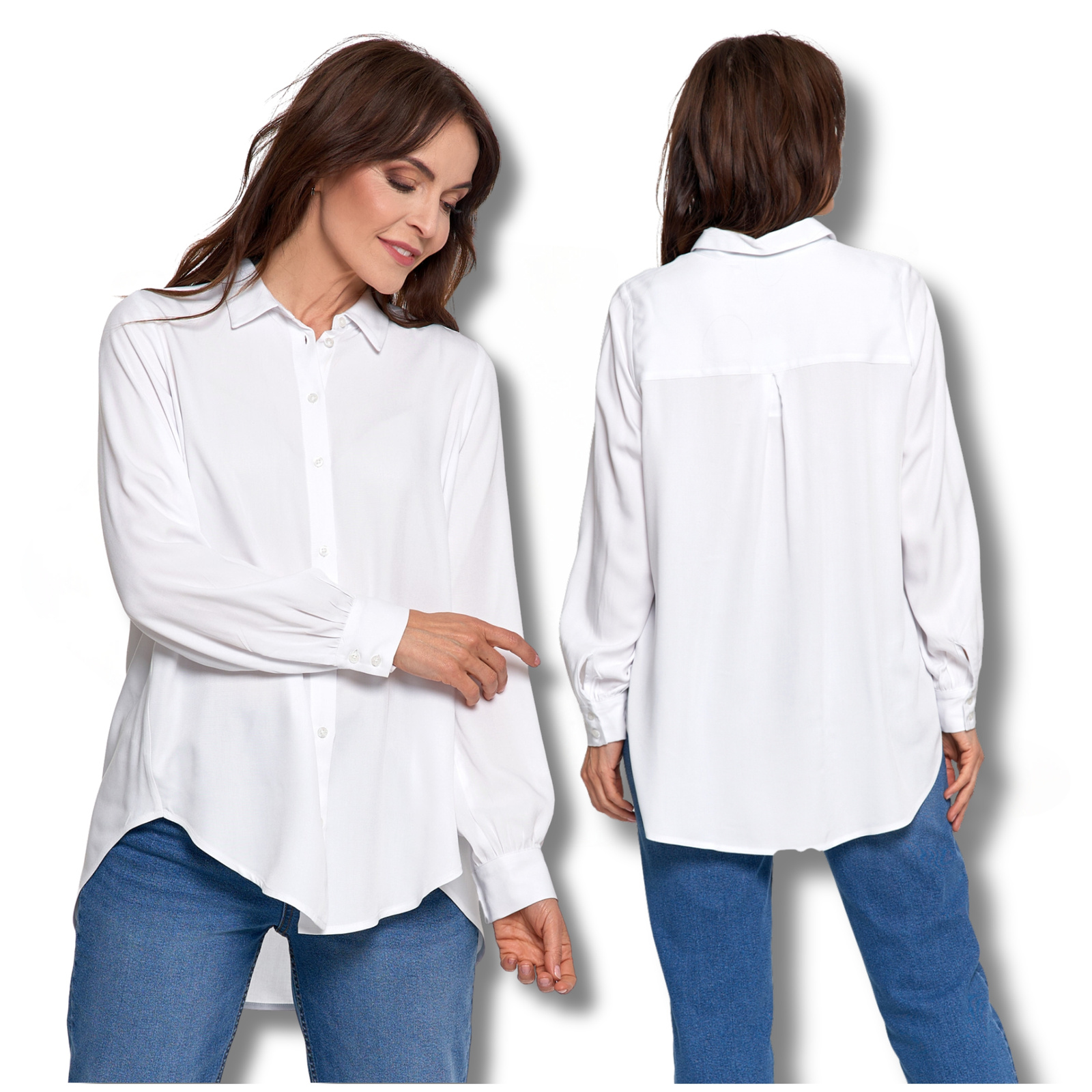 ELEGANCKA KOSZULA DAMSKA OVERSIZE WYDŁUŻONY TYŁ MODNA BLUZKA MORAJ