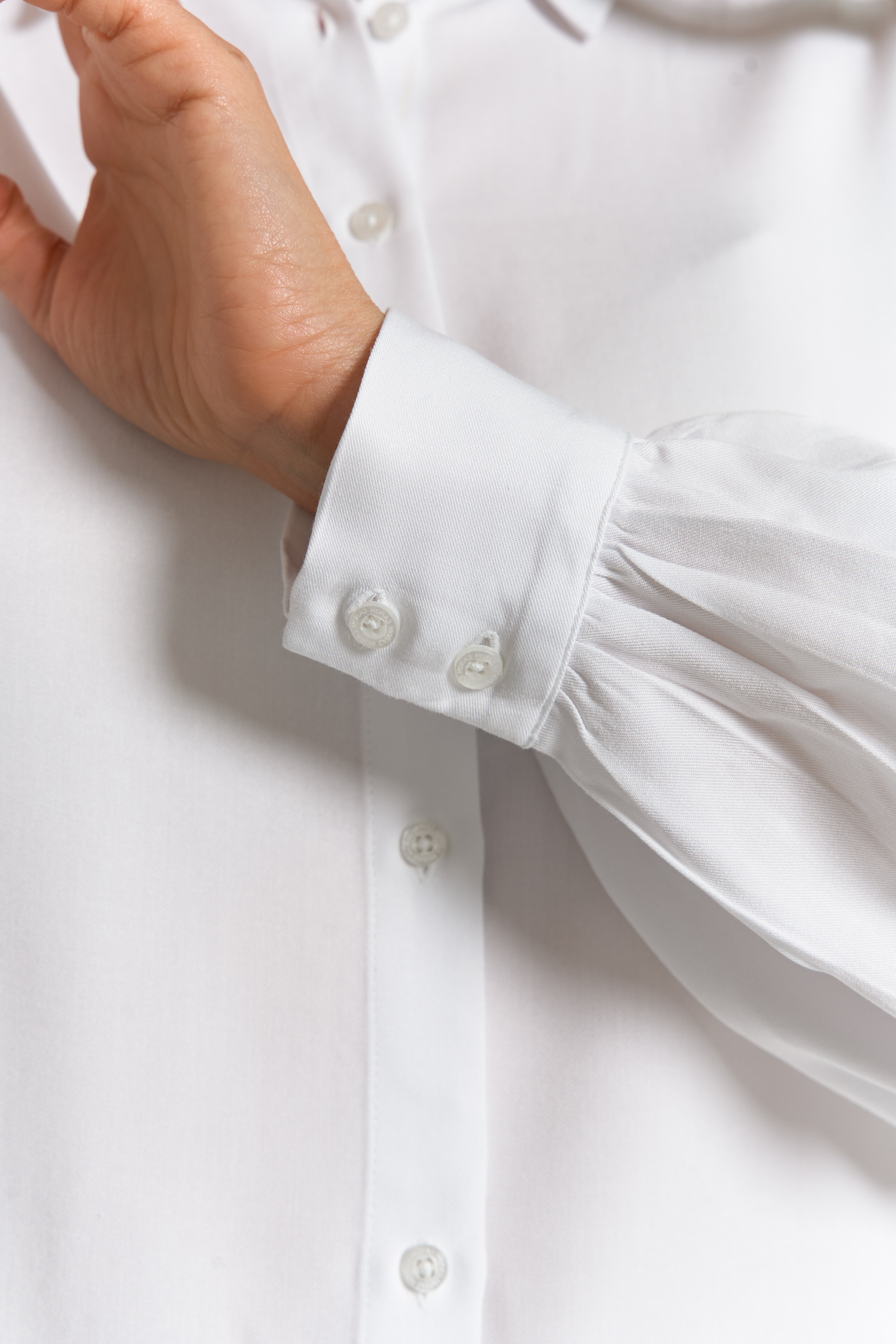 • Design: Klasyczny kołnierzyk, pełne zapięcie na guziki oraz długie rękawy z mankietami podkreślają elegancki charakter.