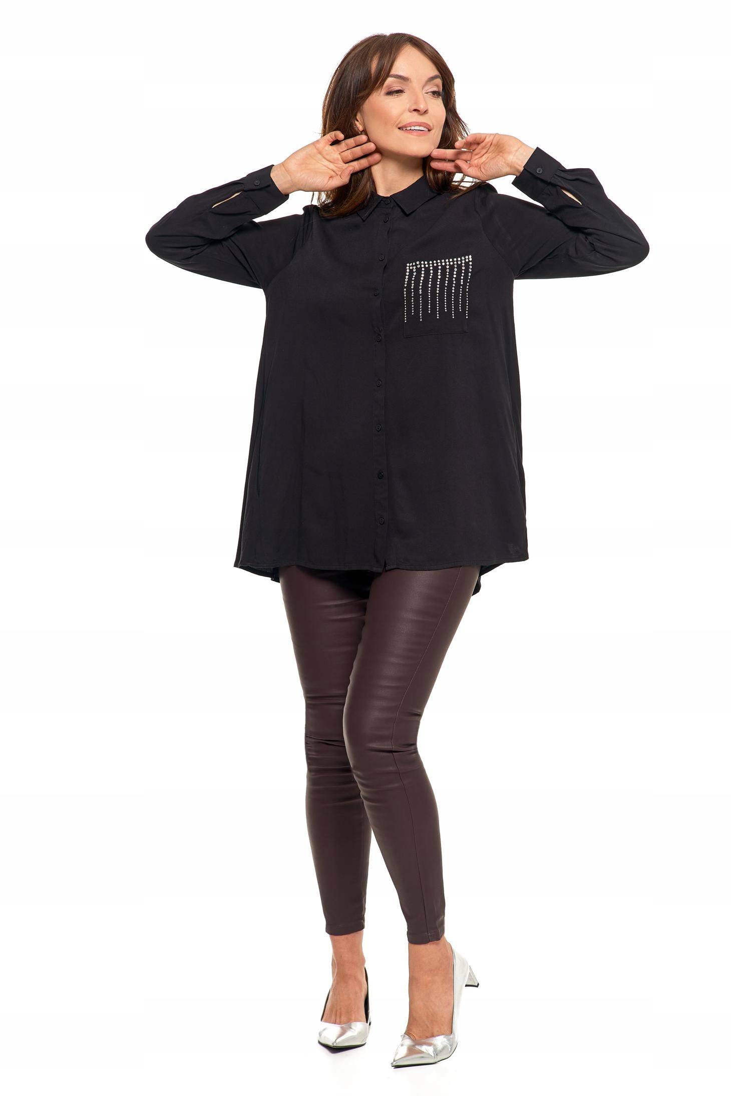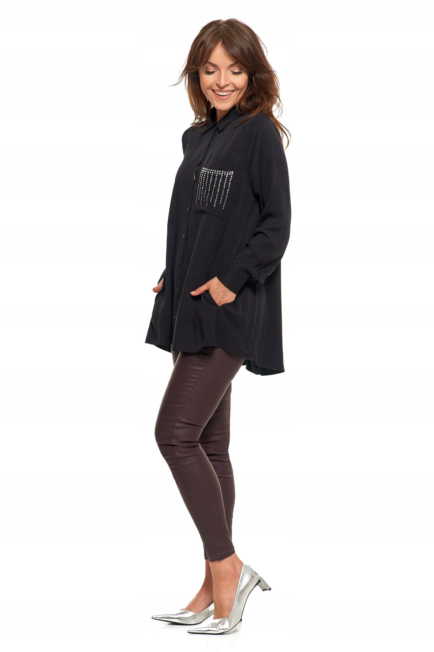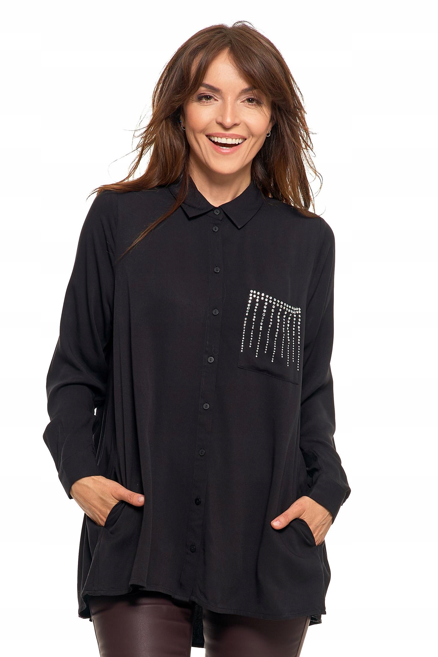 ELEGANCKA KOSZULA DAMSKA ZE ZDOBIENIAMI CZARNA MODNA OVERSIZE MORAJ