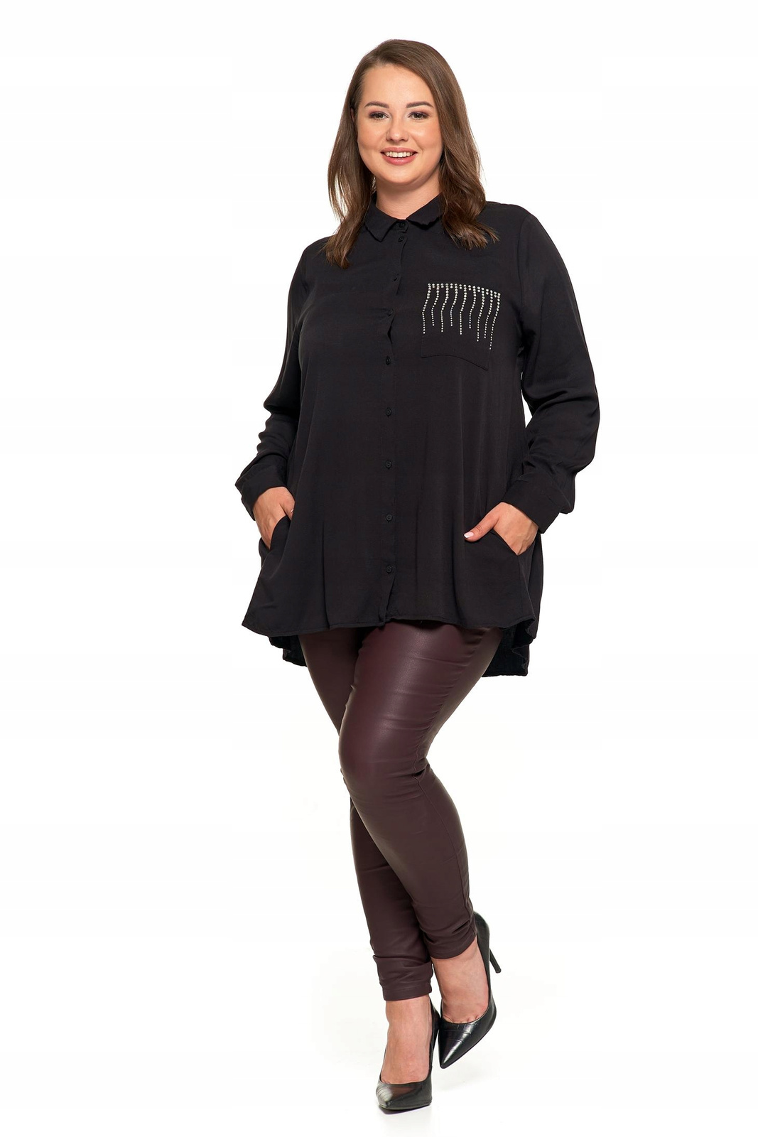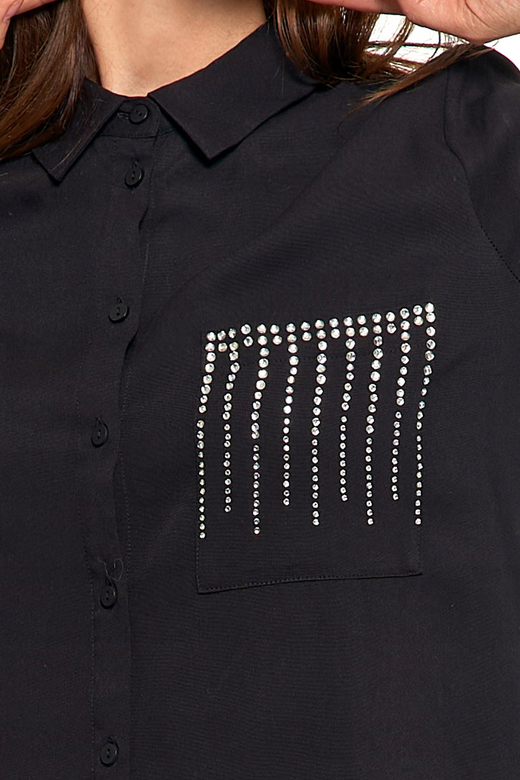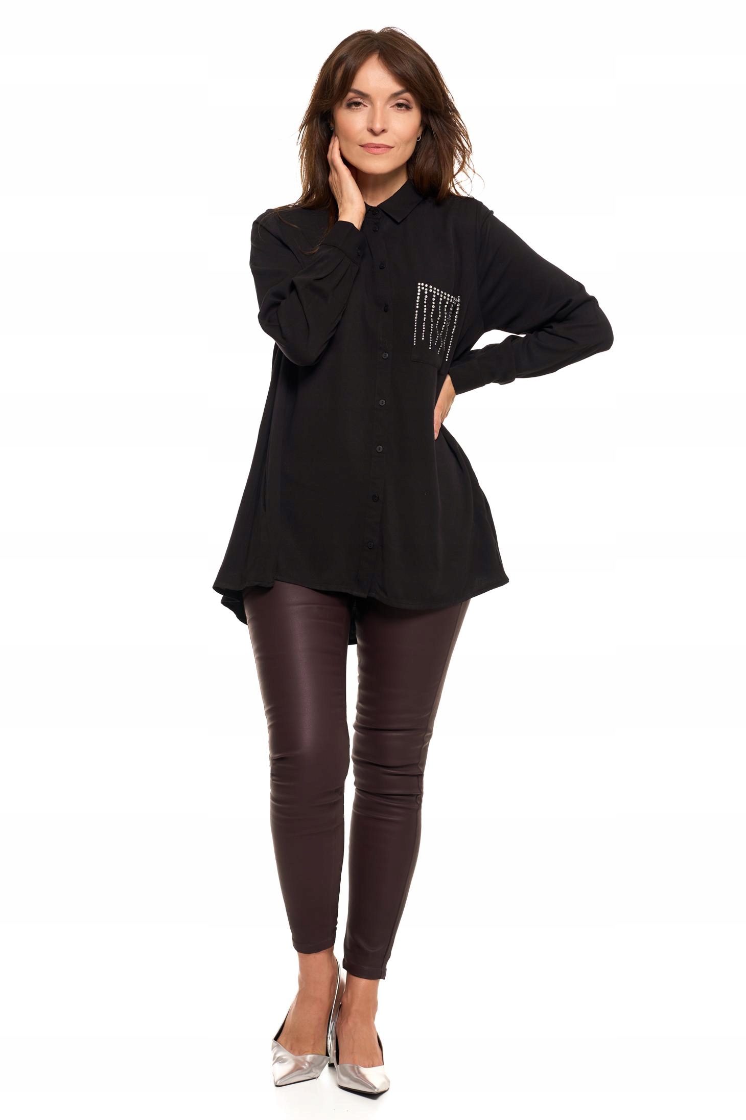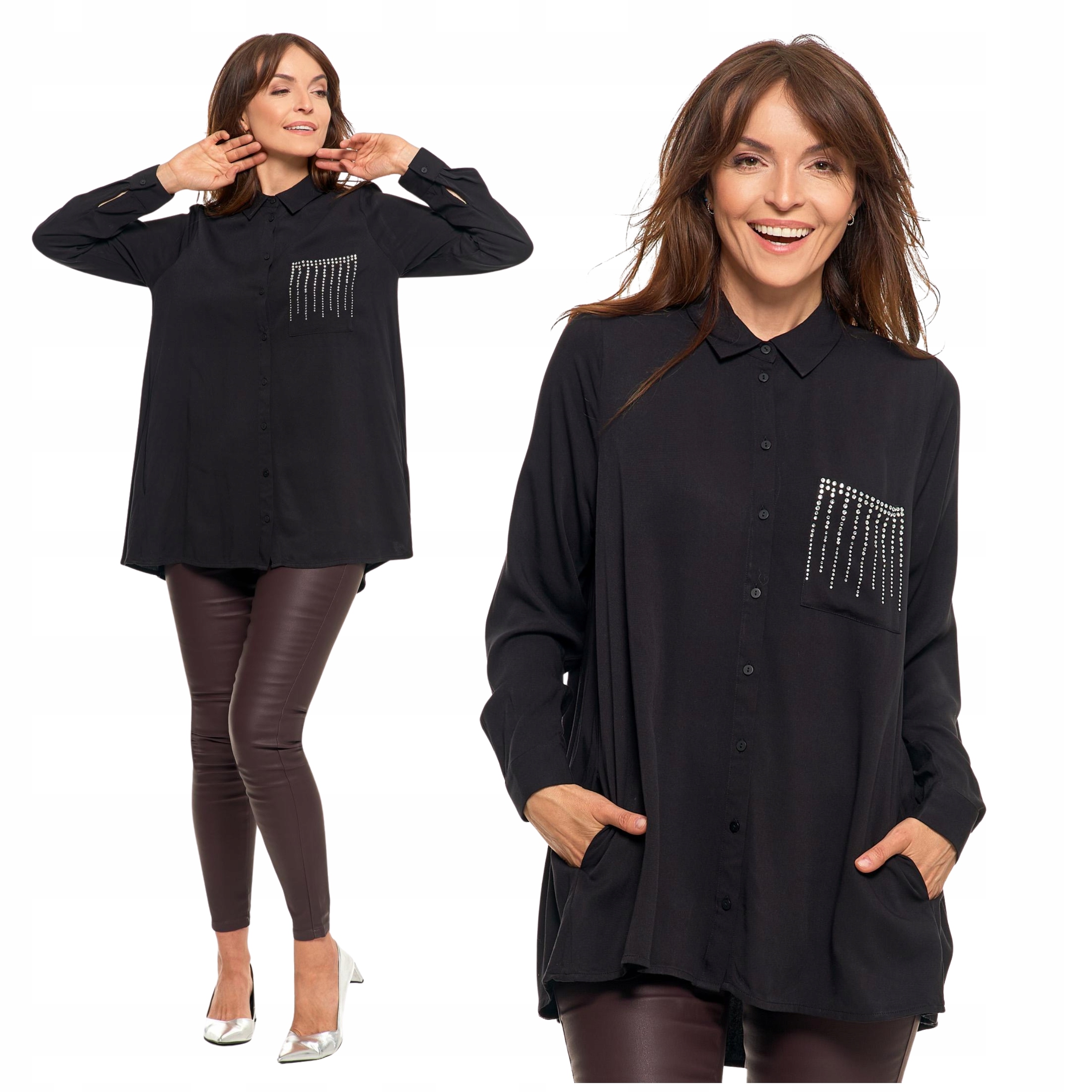 ELEGANCKA KOSZULA DAMSKA ZE ZDOBIENIAMI CZARNA MODNA OVERSIZE MORAJ