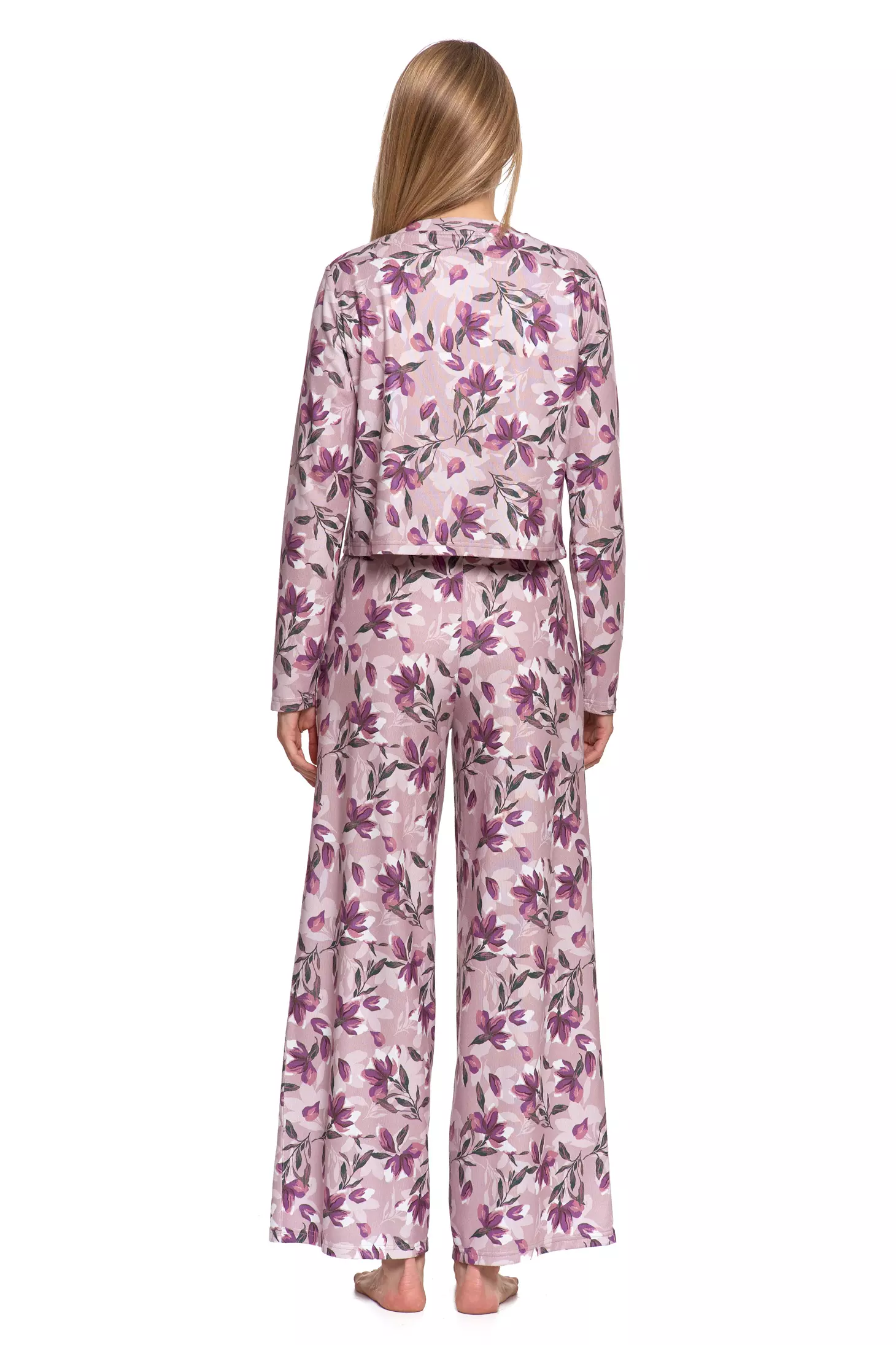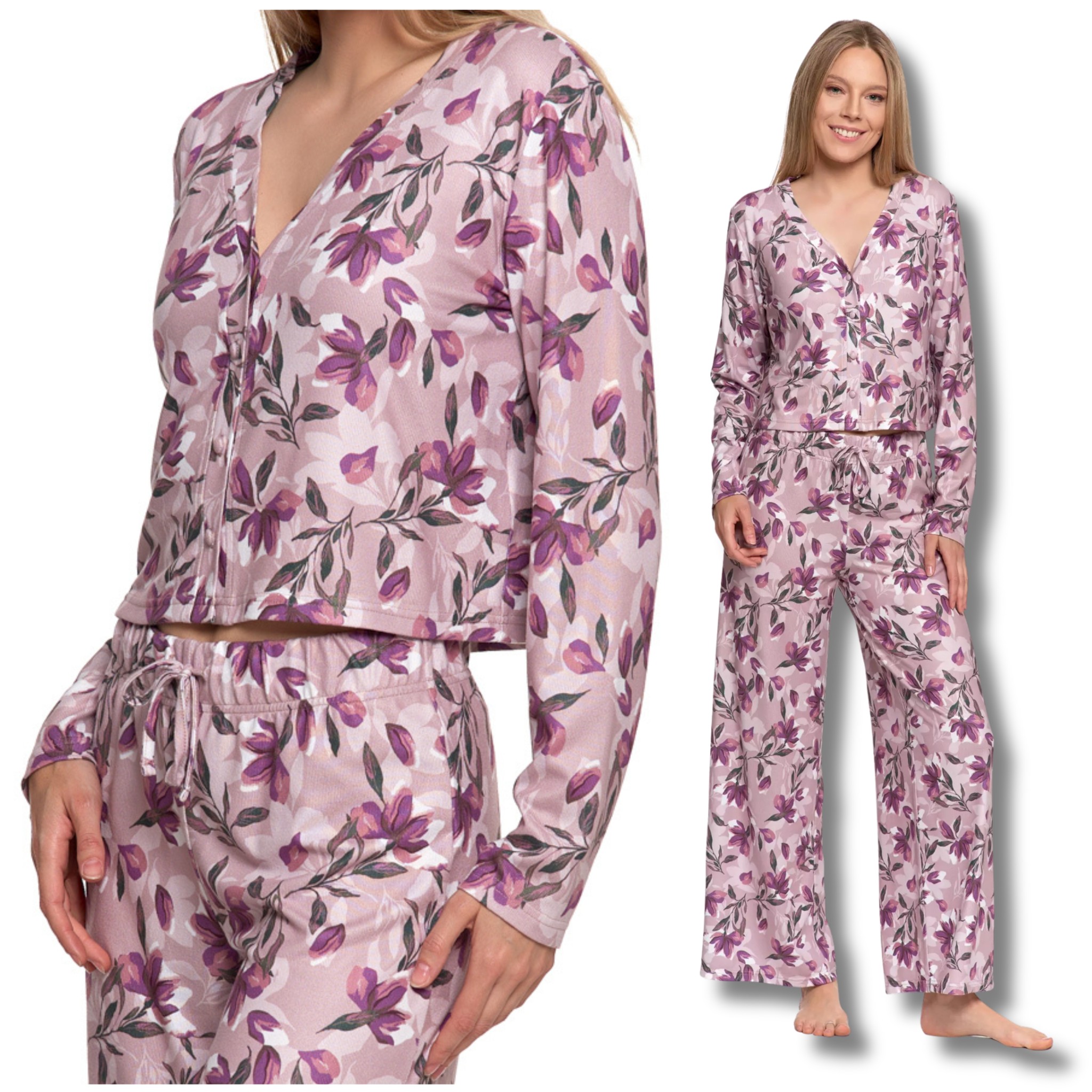 ELEGANCKA PIŻAMA DAMSKA DWUCZĘŚCIOWA DŁUGI RĘKAW SZEROKIE SPODNIE MORAJ