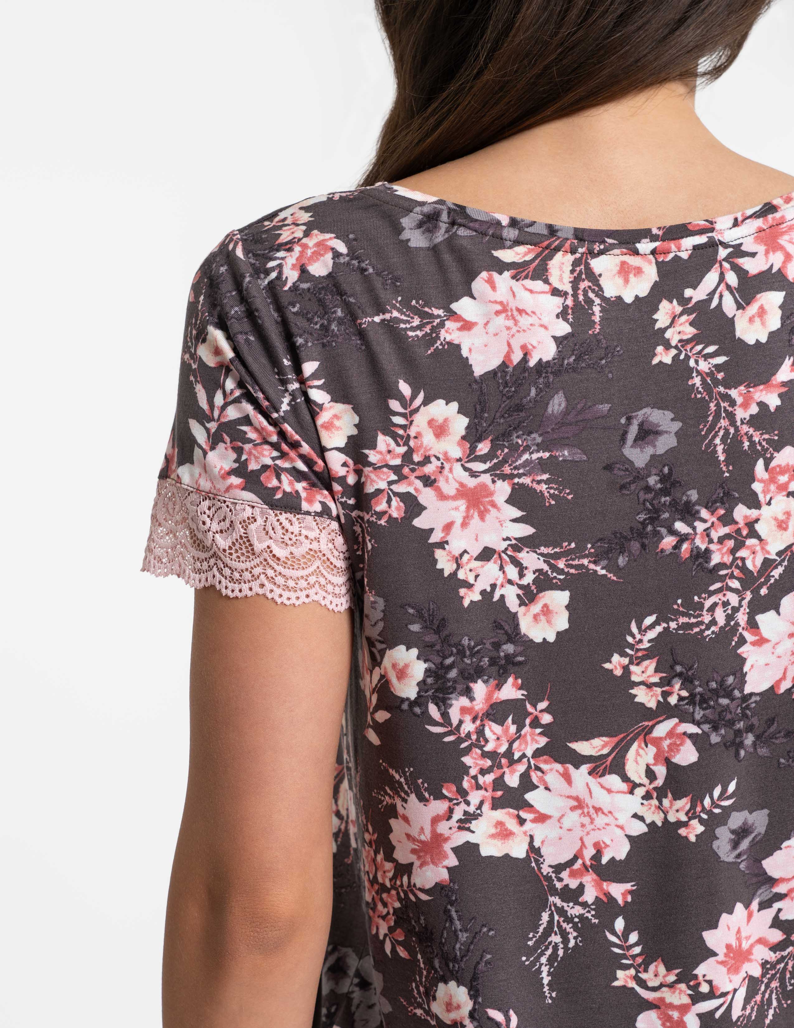 Zmysłowe Wykończenie: Dekolt w kształcie litery V oraz nogawki szortów zostały ozdobione subtelną, miękką koronką. Ten elegancki detal nadaje piżamie luksusowego charakteru.