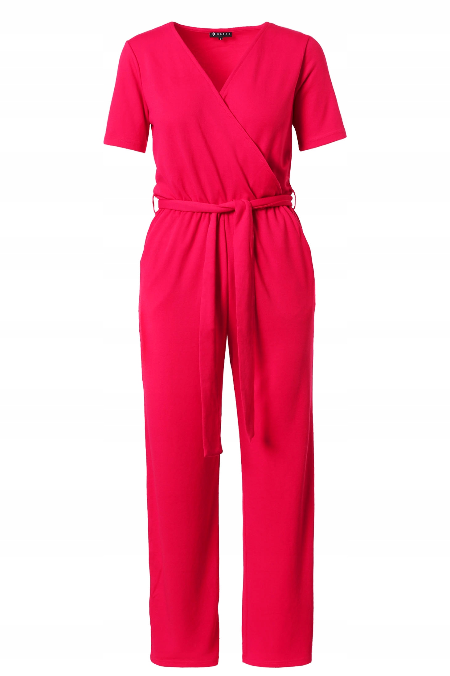 ELEGANCKI KOMBINEZON DAMSKI KRÓTKI RĘKAW DŁUGIE SPODNIE GŁADKI MORAJ
