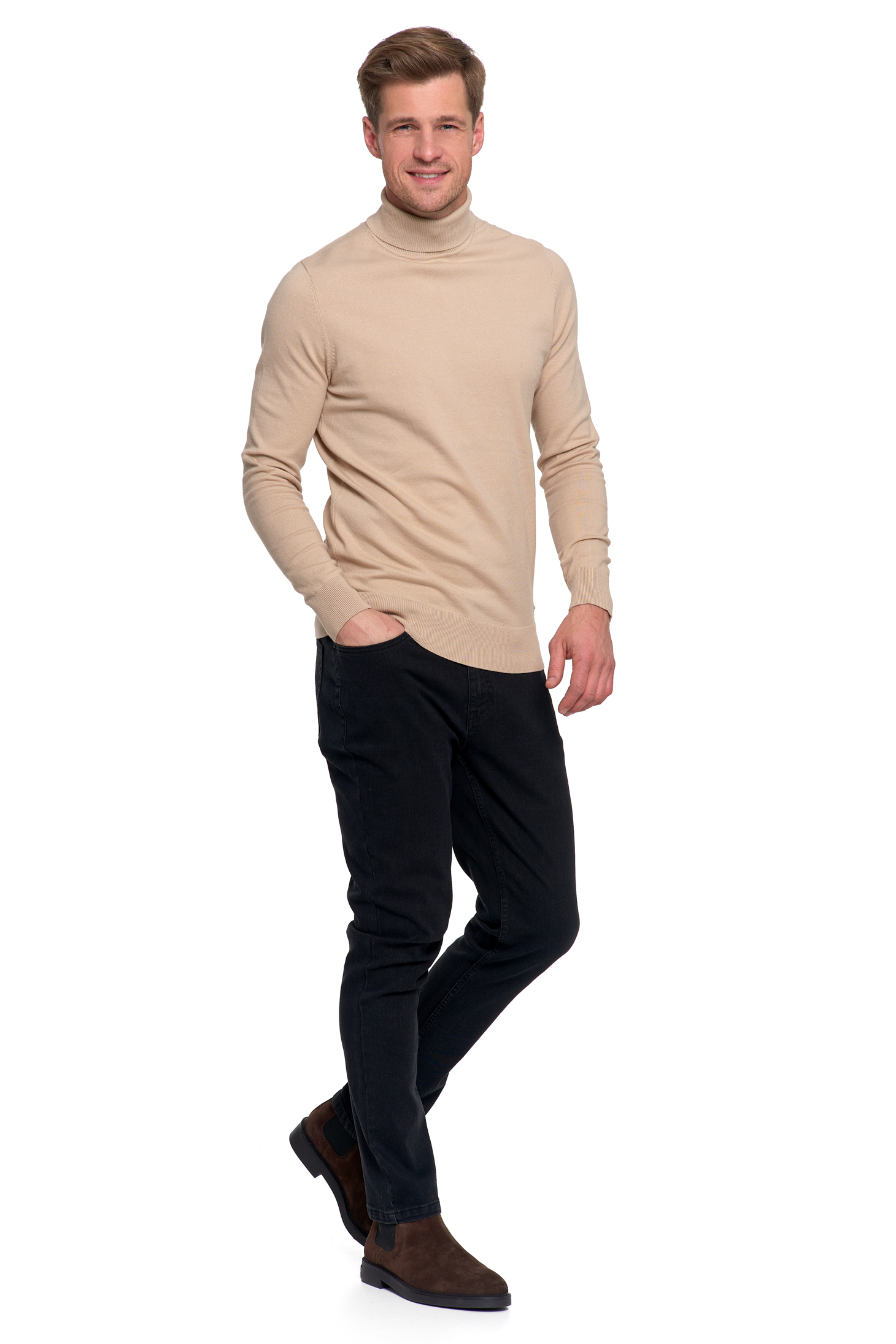 Ten stylowy męski golf to niezbędny element typu basic w szafie każdego mężczyzny. Łącząc klasyczny design z wysokim komfortem noszenia, gwarantuje elegancki wygląd w każdej sytuacji.