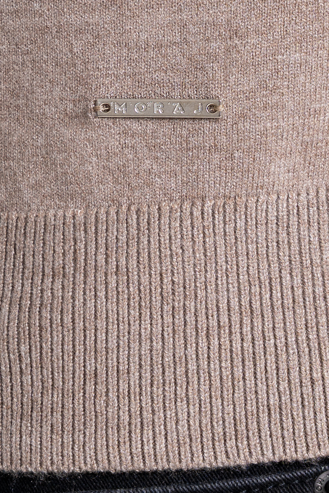 Detale: Rękawy i dół swetra zakończone są elastycznym ściągaczem, co gwarantuje lepsze dopasowanie. Subtelne metalowe logo przy ściągaczu dodaje eleganckiego akcentu.